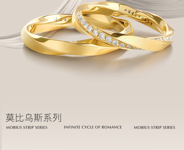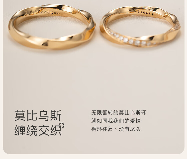 Yuansi Wedding Ring 18k Gold Couple Ring Möbius Cycle Design Unisex Ring Engraving 18K 18k Gold Yellow Gold (No Diamonds) Size 7/8/Single