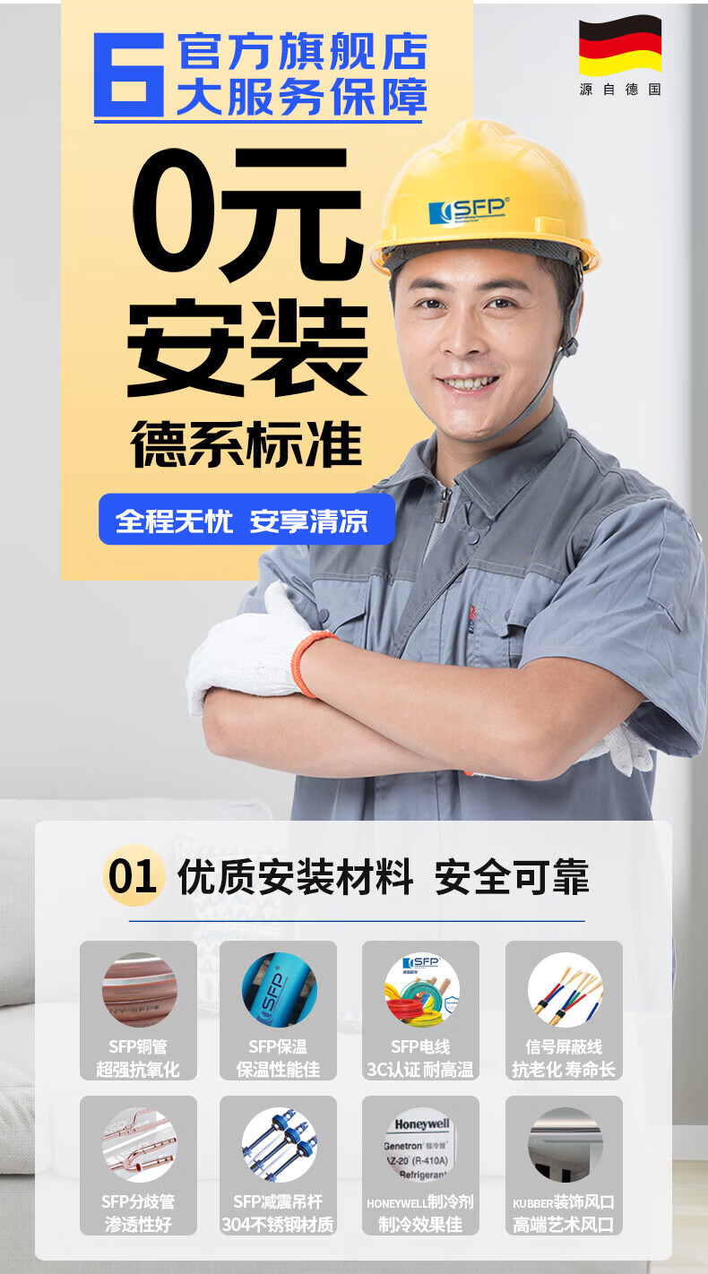 SFP German quality central air conditioner one to three four five household multi-connected commercial embedded first-level energy efficiency 5 HP first-level energy efficiency one to four single fan