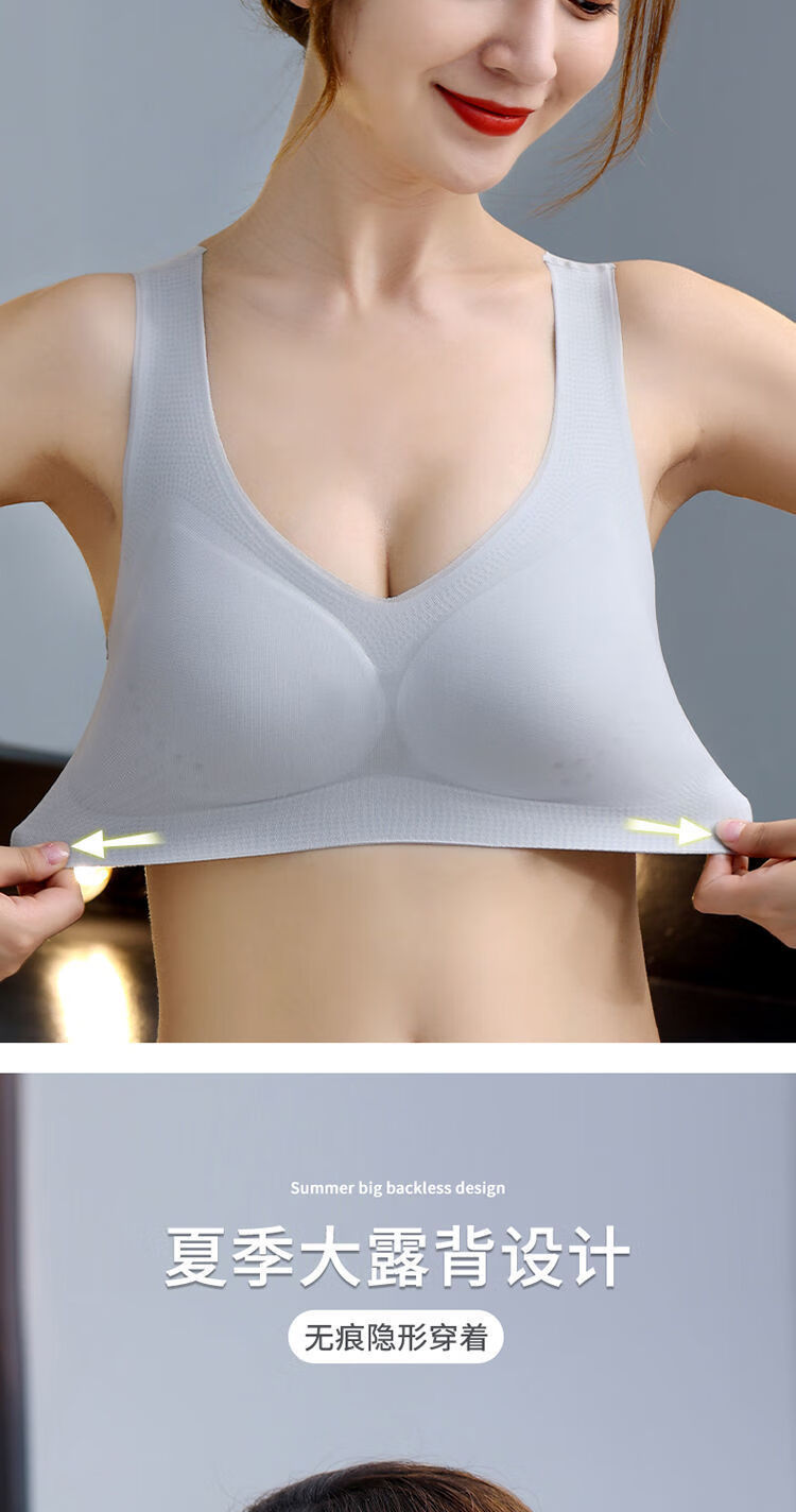 Thin ice silk seamless underwear for women in summer without rims, big breasts, anti-sagging, beautiful back, large size bra and vest style, skin color + gray - worth saving, 2 pieces 5XL recommended 200-220Jin Jin equals 0.5kg