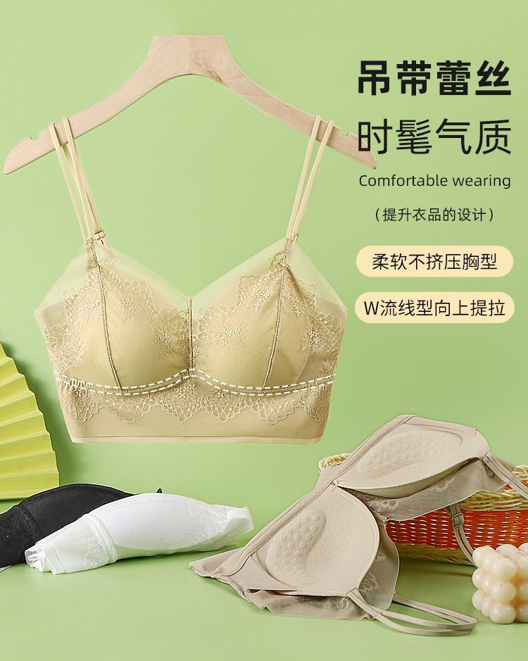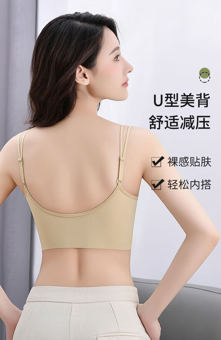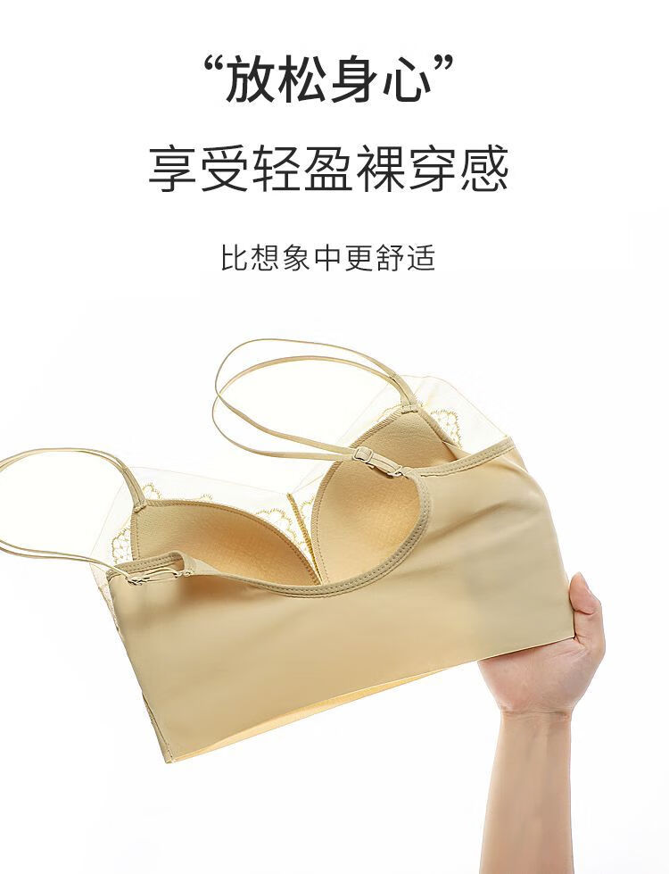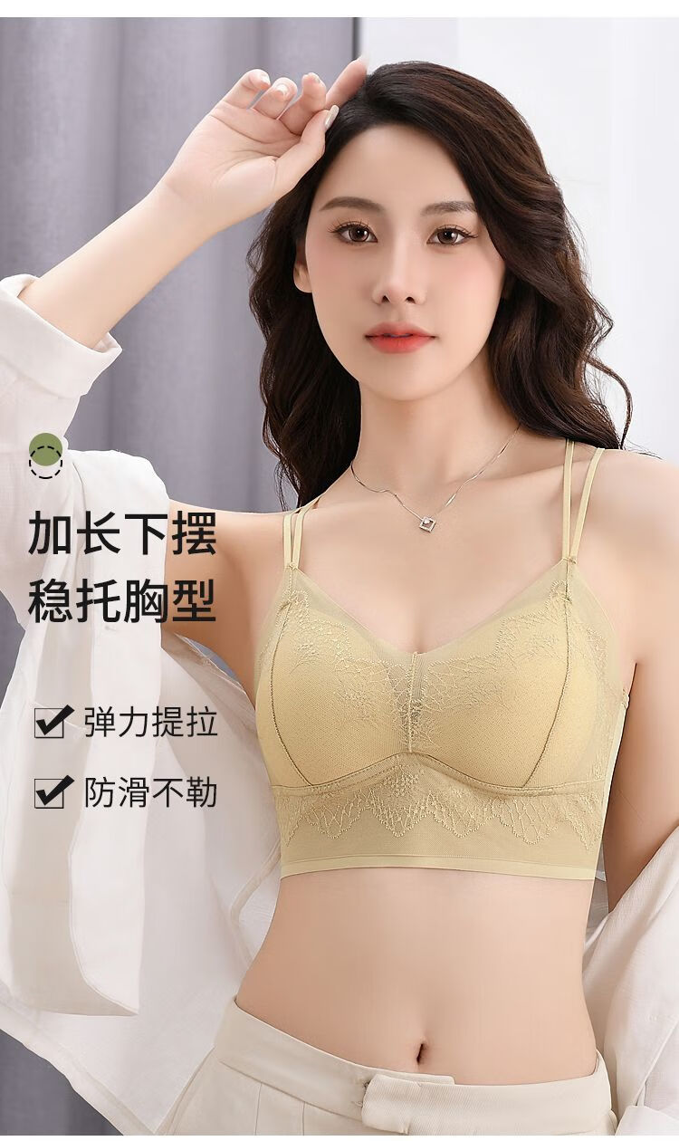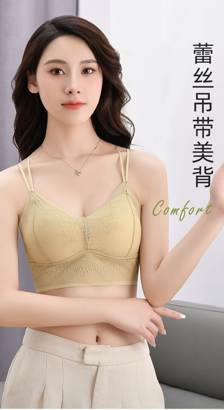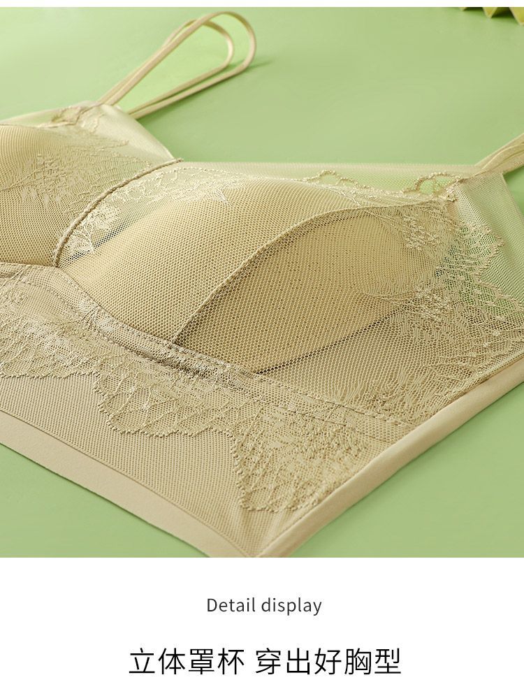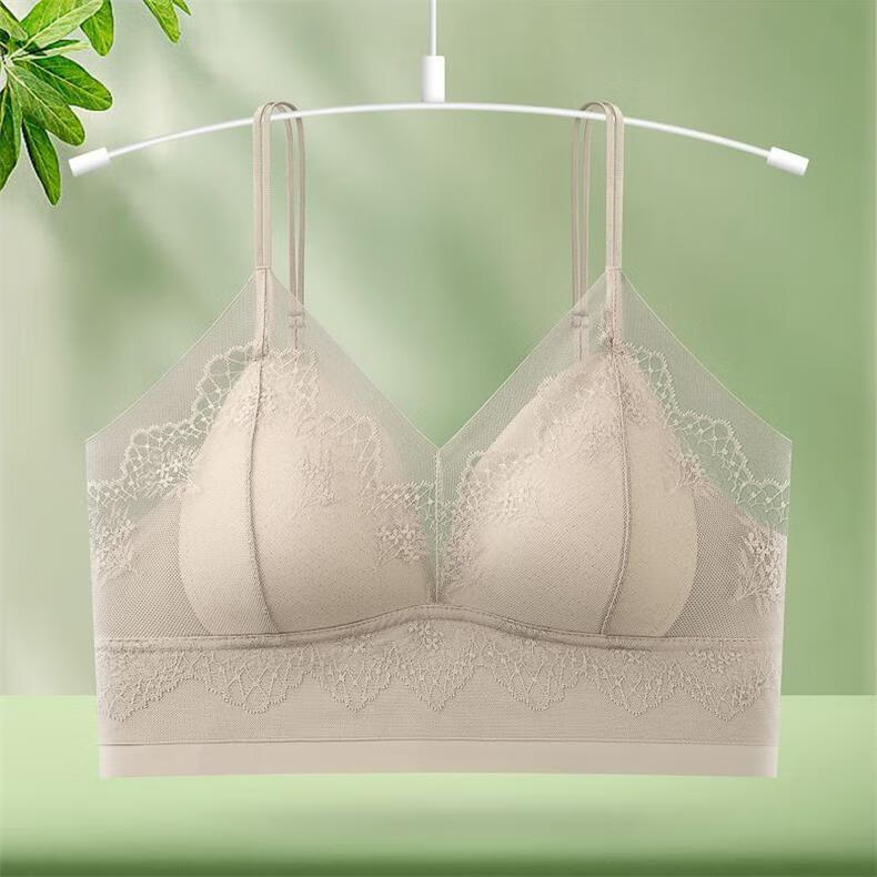 Double shoulder strap lace seamless back bra for women without wires, push-up anti-sagging summer thin breathable large size bra, apricot color - 1 piece L (recommended 105-130Jin Jin equals 0.5kg)