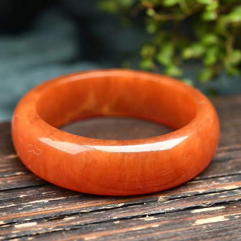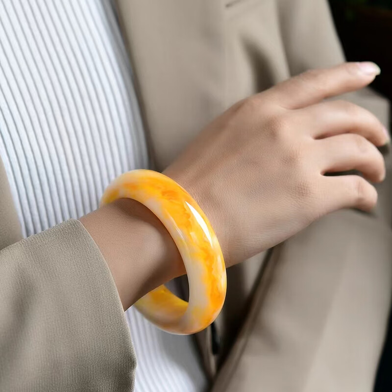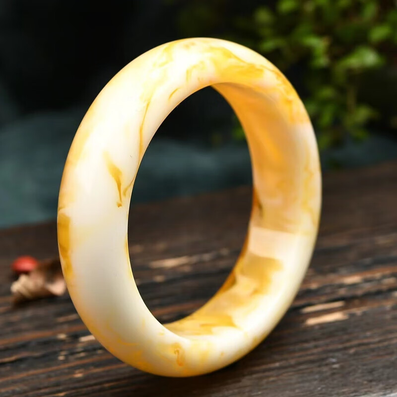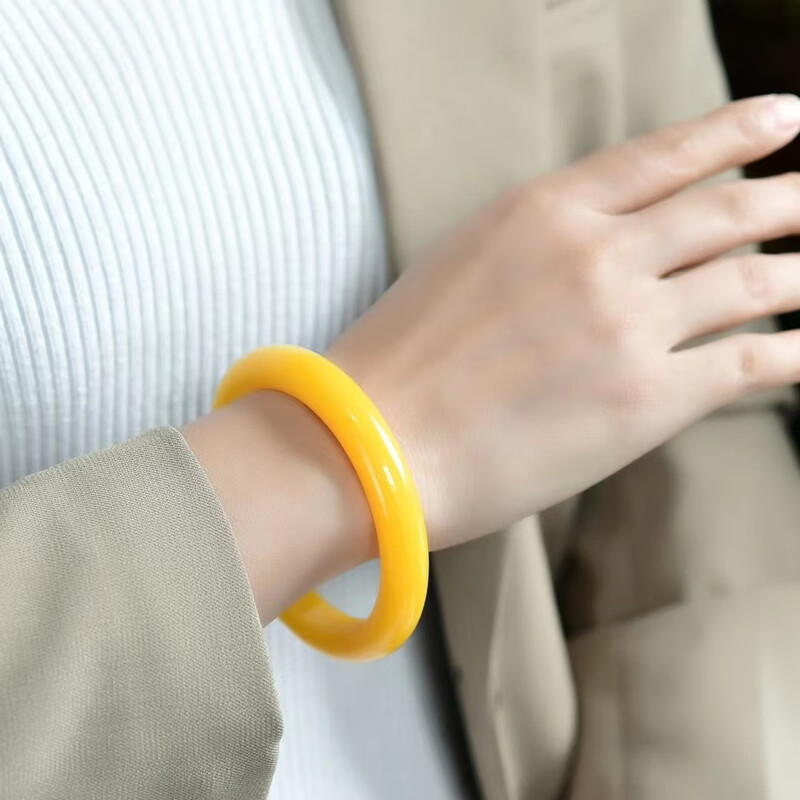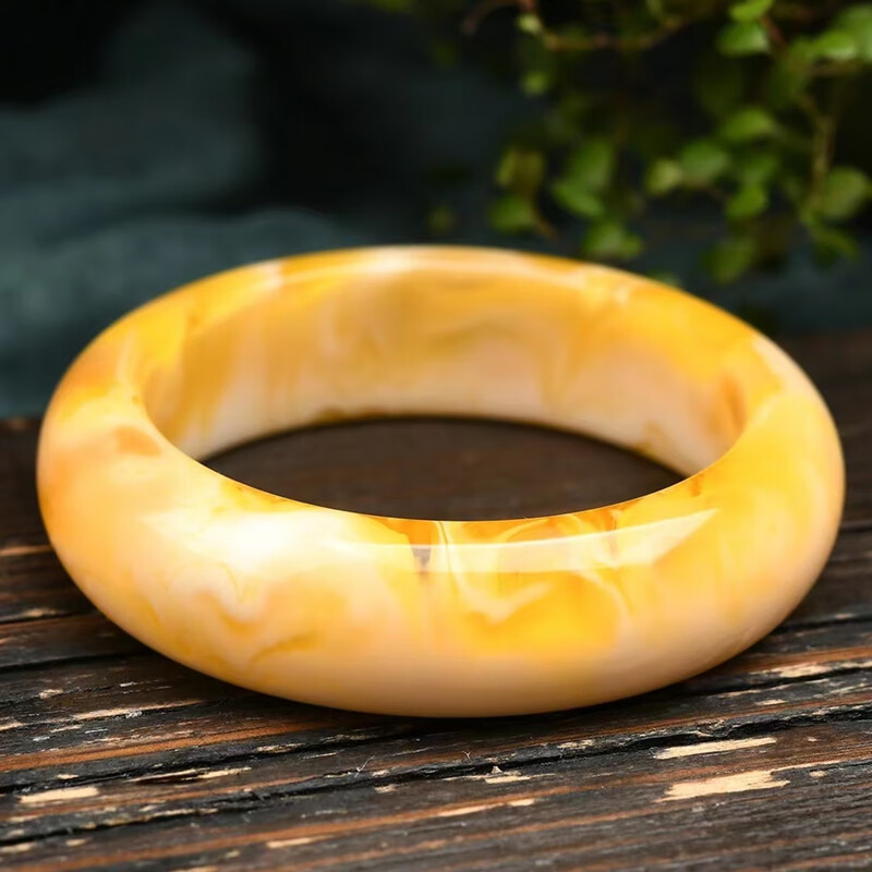 Fat Donglai's same blood amber bracelet, natural chicken oil, yellow old beeswax, white nectar amber, a couple's gift for mother and best friend. The fourth model, chicken oil, yellow, full honey, beeswax bracelet, inner diameter 58