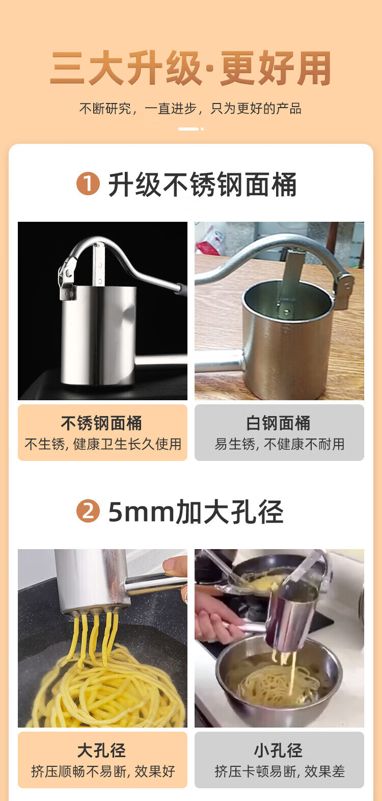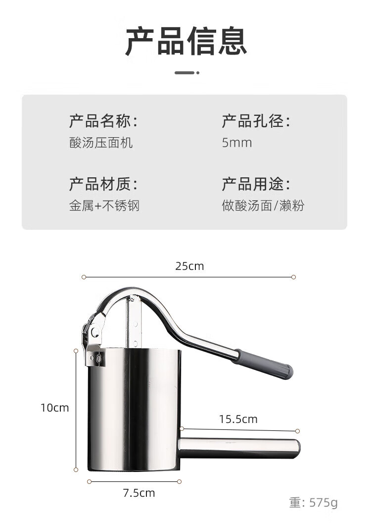 Grain harvesting Northeast sour soup noodle press extruder large-aperture stainless steel slag press rice noodle tool handmade rice noodle artifact 5mm extruder