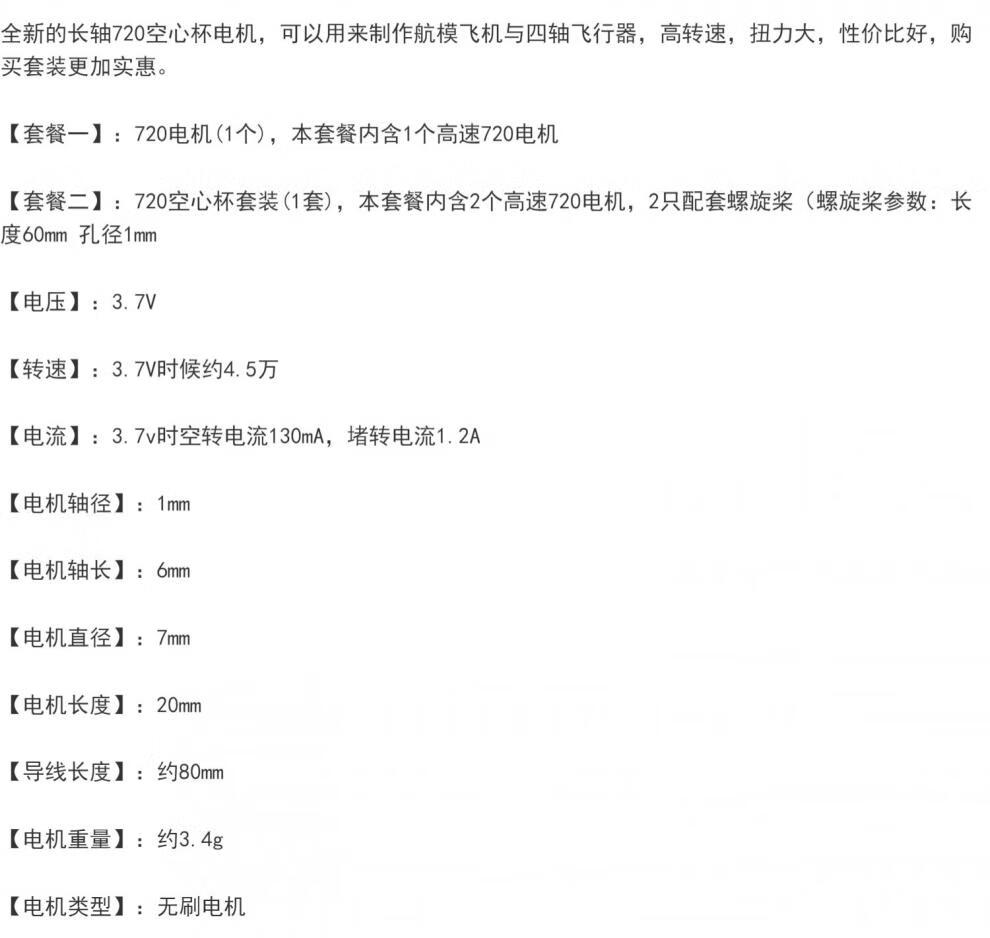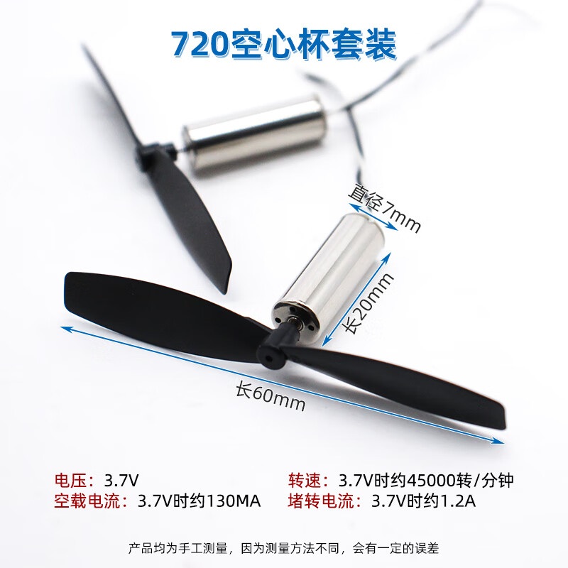 720 coreless motor 3.7V model aircraft toy high speed strong magnetic DC brushless motor high torque motor 720 motor (1 piece)
