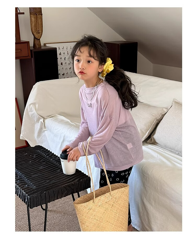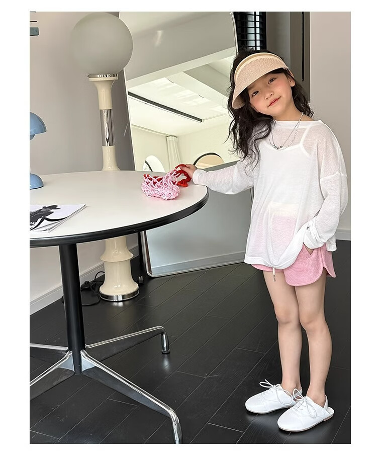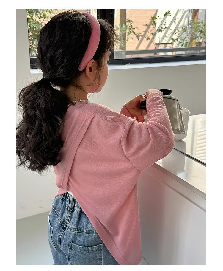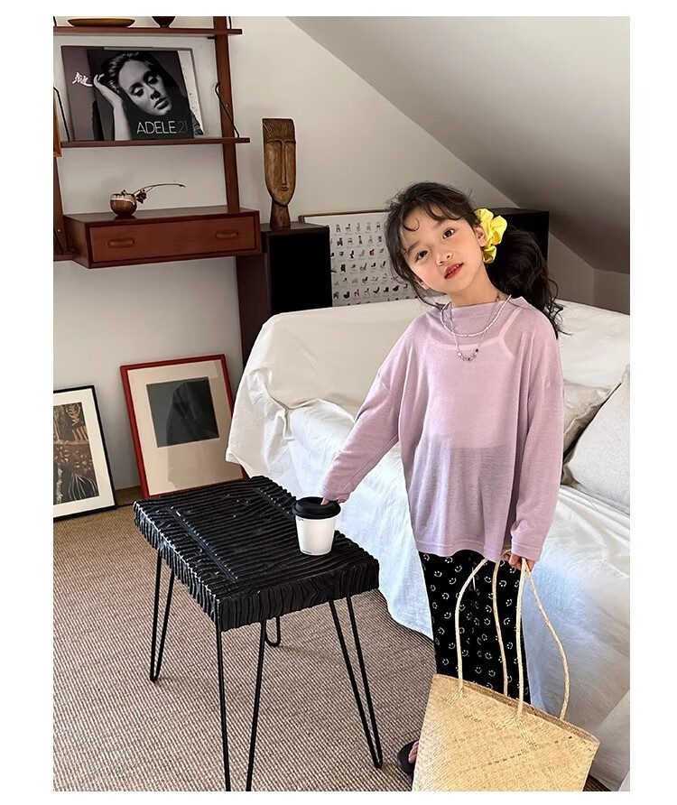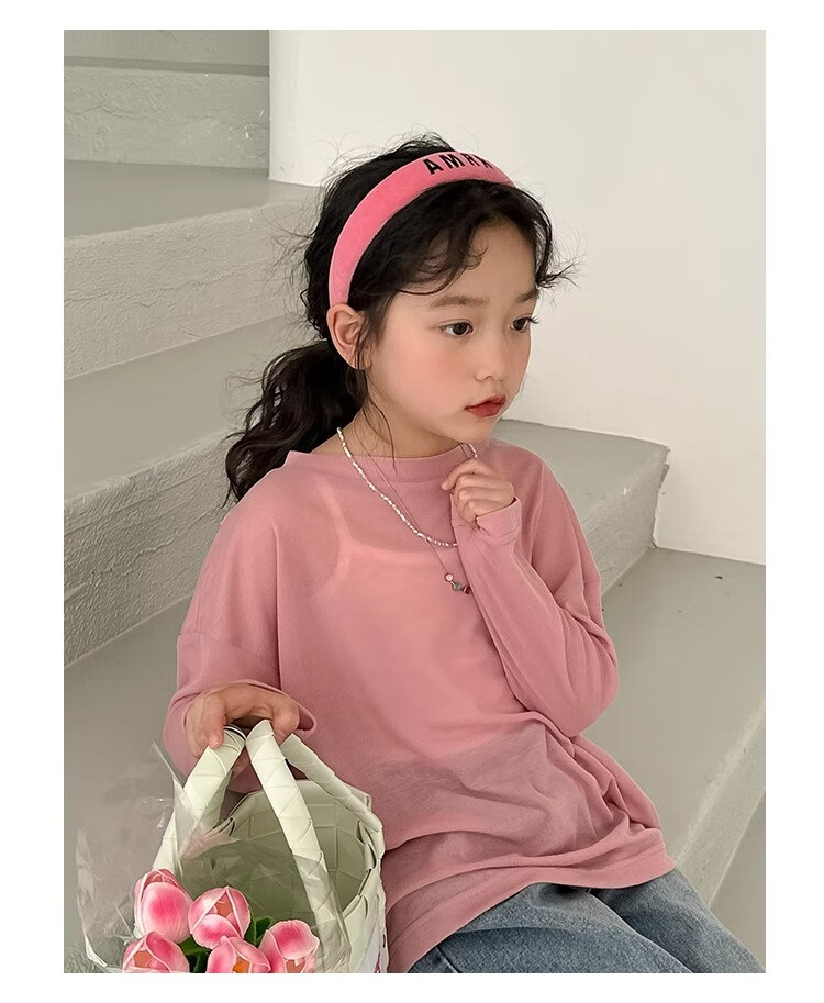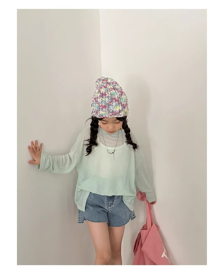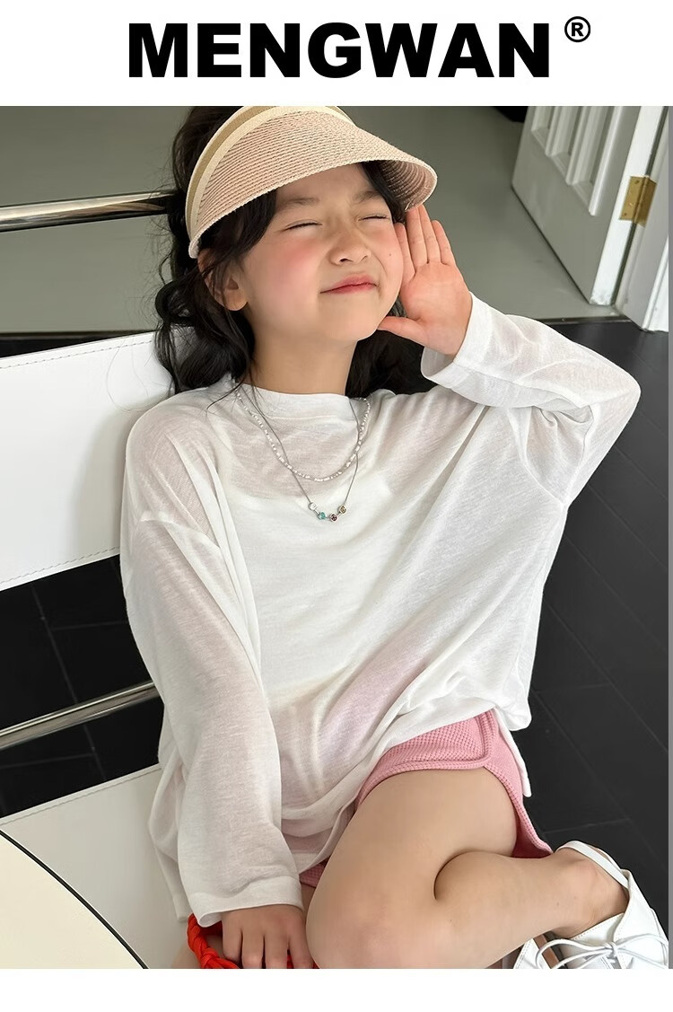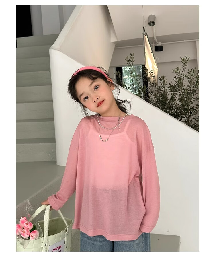 Bon Eve Girls Thin Sun Protection Clothing 2025 Summer New Style Back Slit Design Round Neck Loose Long Sleeve Beach Sun Protection T Lake Heart Green 130
