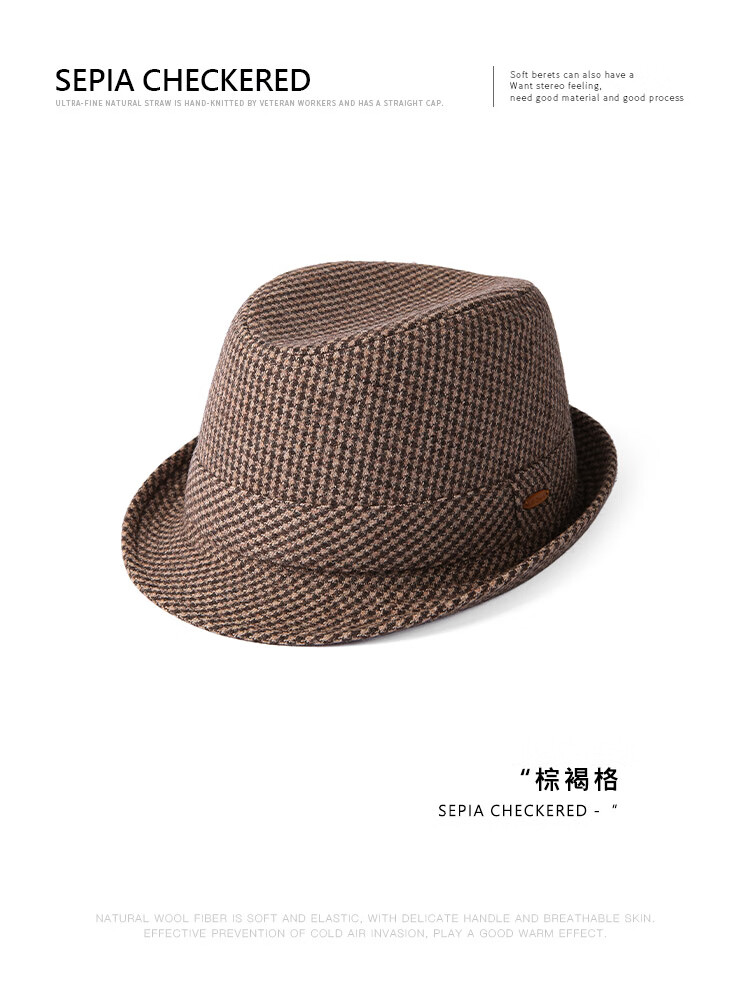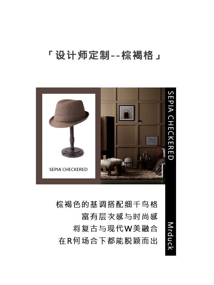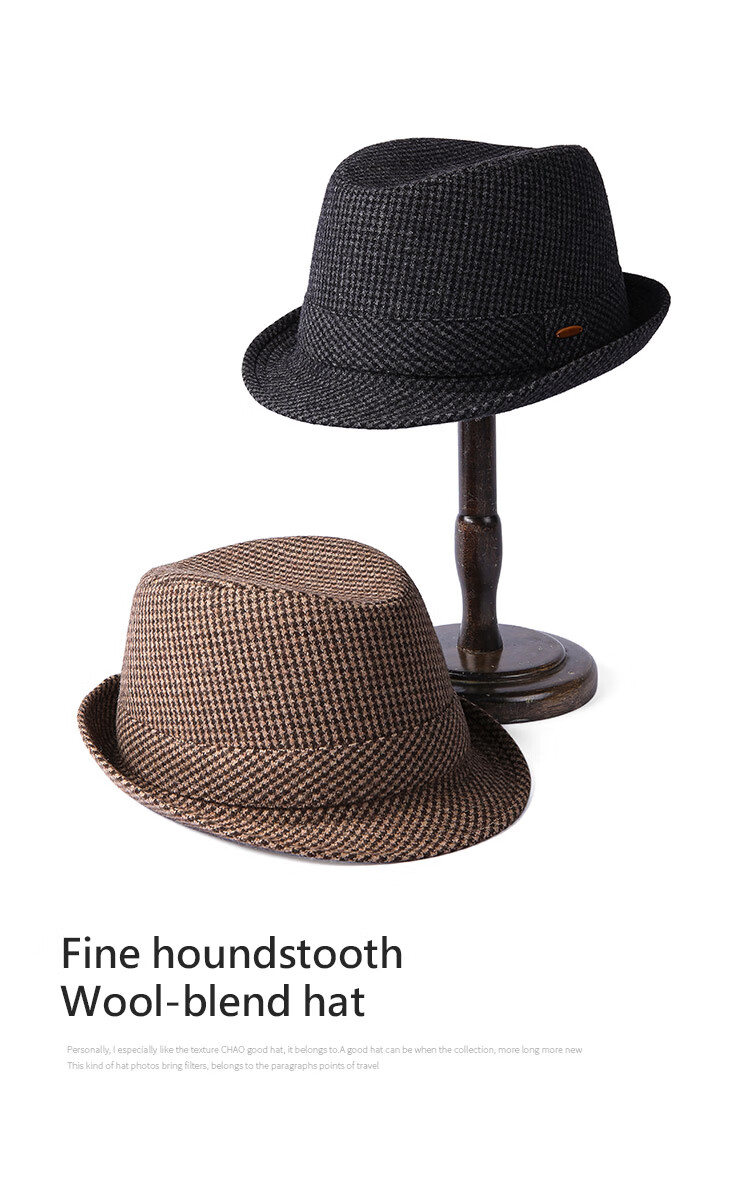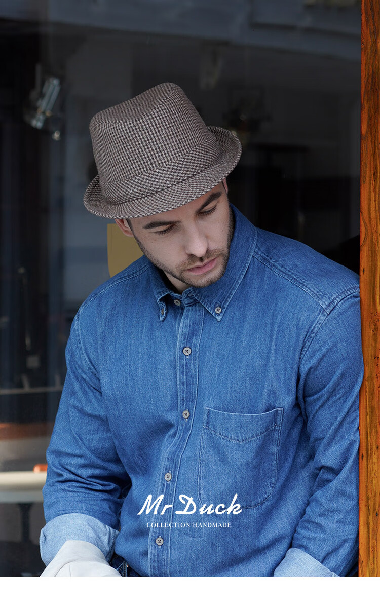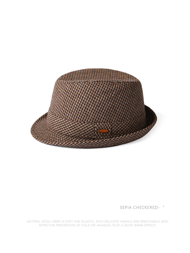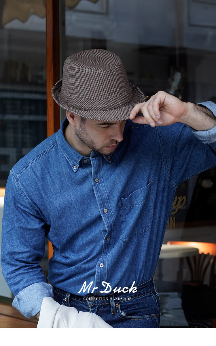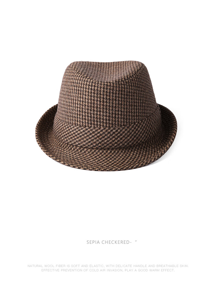 Mr DUCK new product houndstooth British men's hat woolen cowboy jazz hat MW216238-tan check plus size (over 61cm, only for extra large head circumference)
