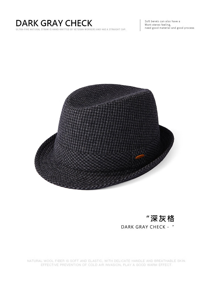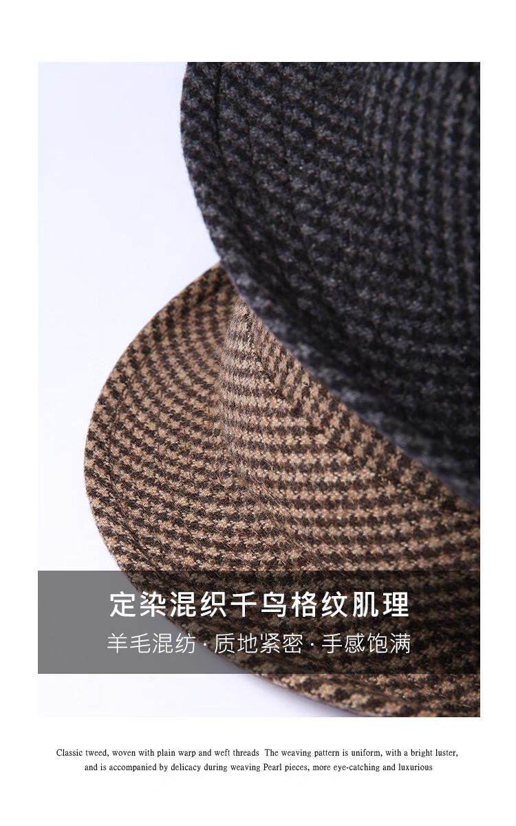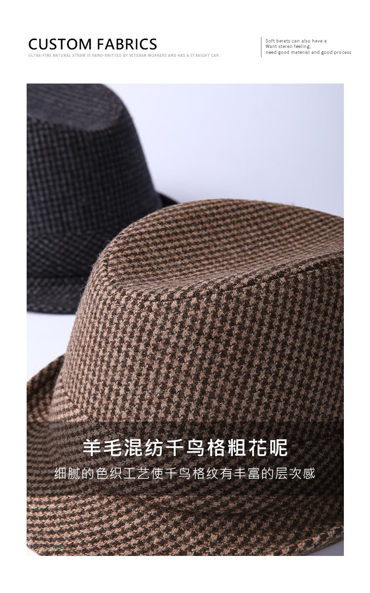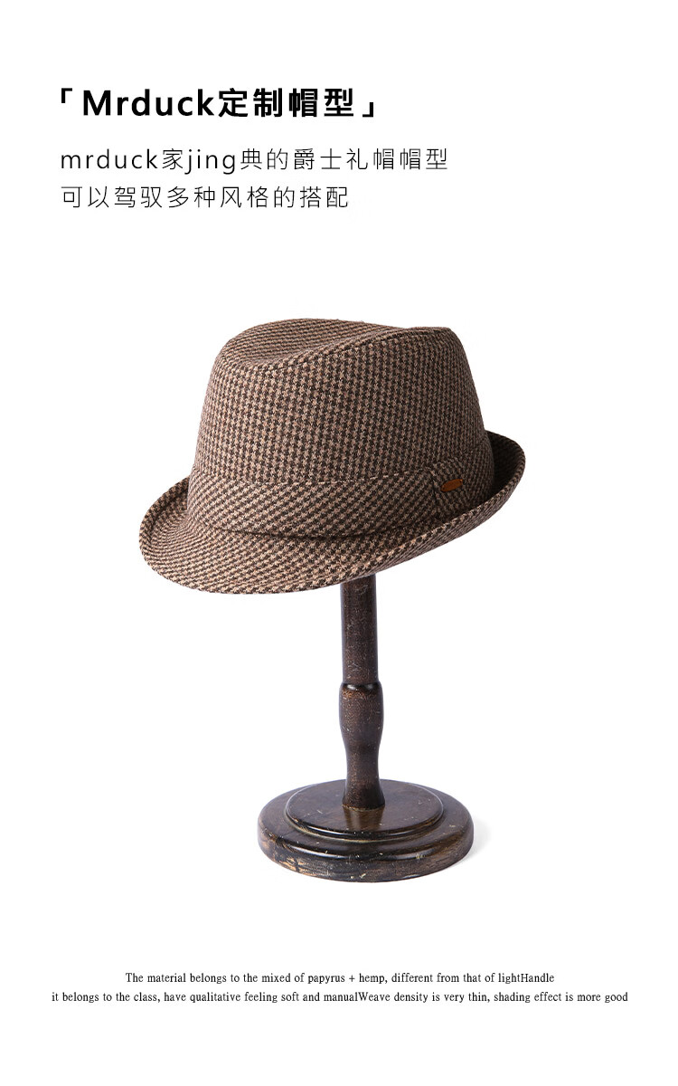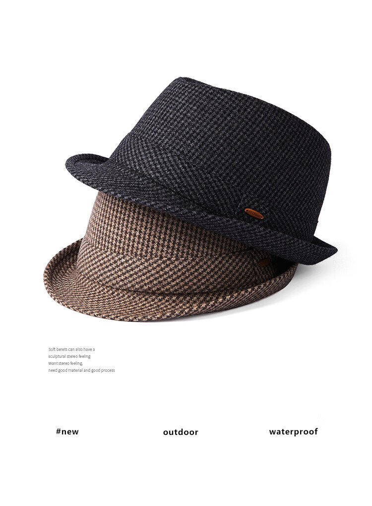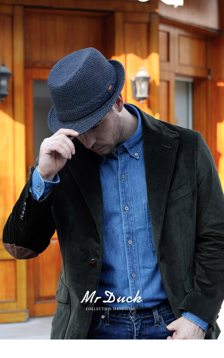 Mr DUCK new product houndstooth British men's hat woolen cowboy jazz hat MW216238-tan check plus size (over 61cm, only for extra large head circumference)