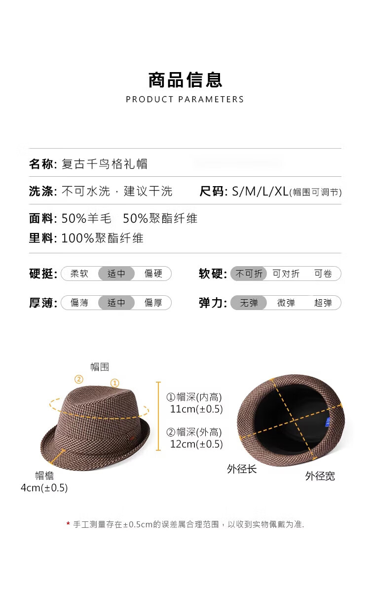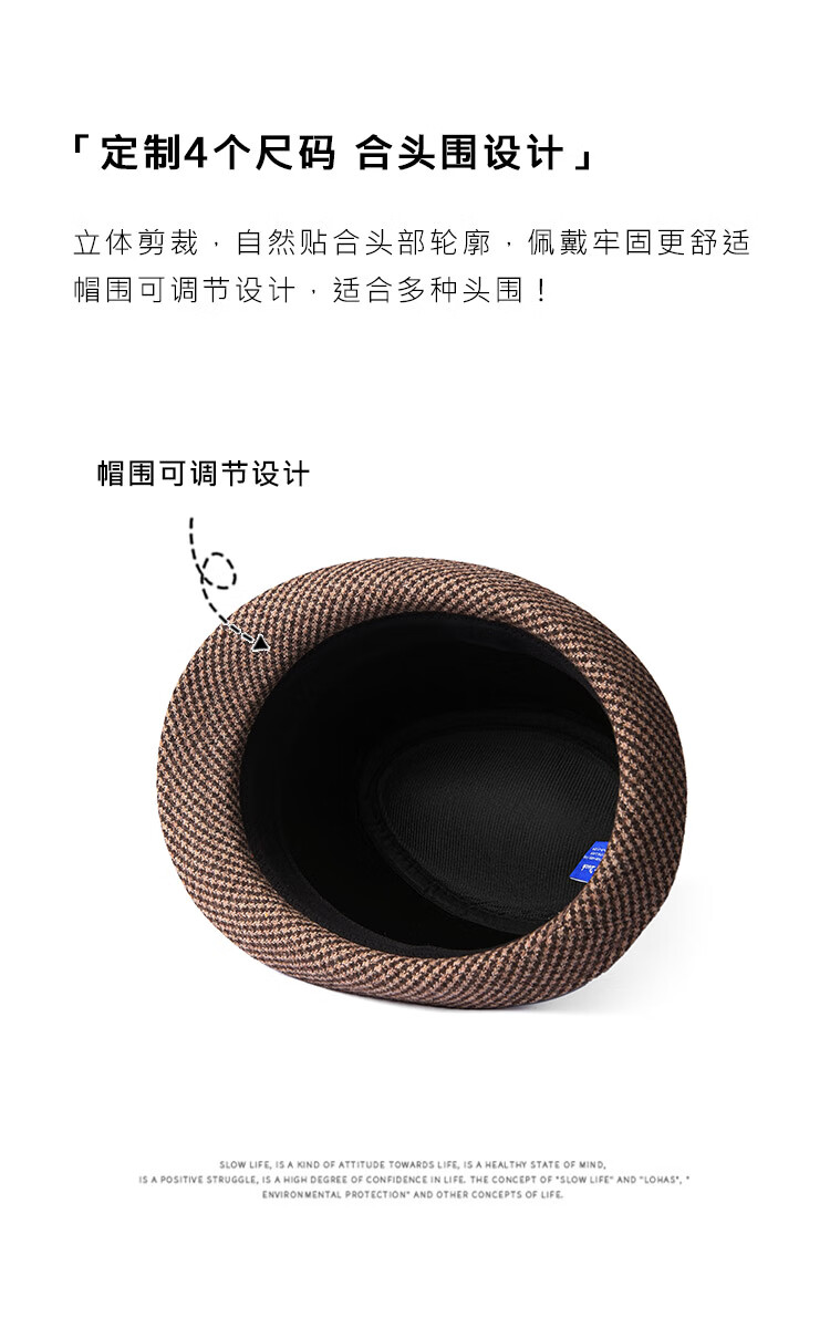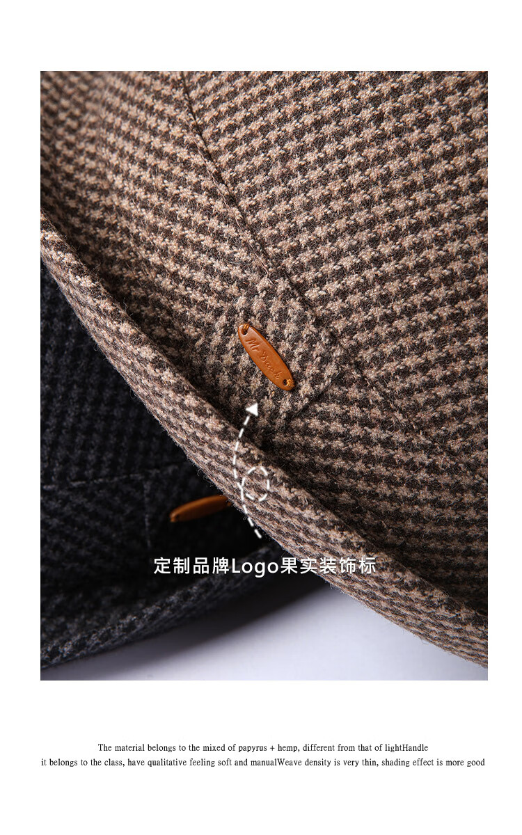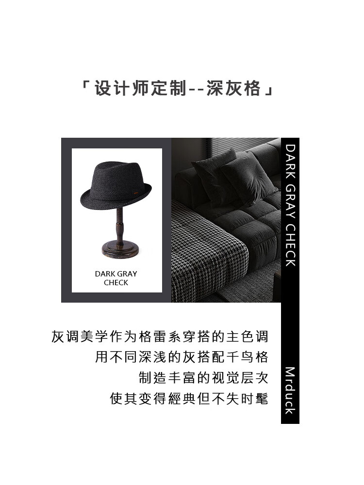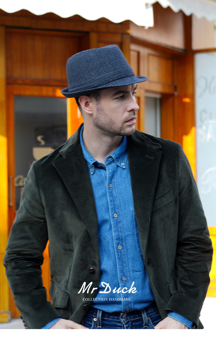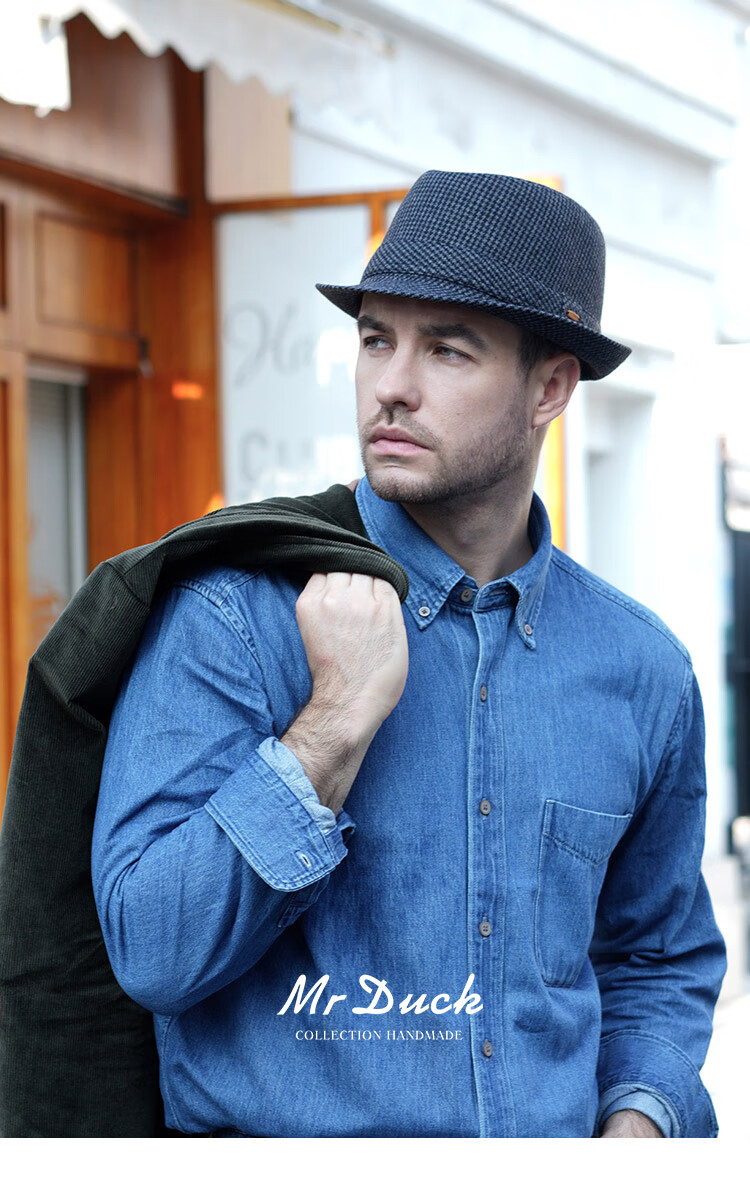 Mr DUCK new product houndstooth British men's hat woolen cowboy jazz hat MW216238-tan check plus size (over 61cm, only for extra large head circumference)