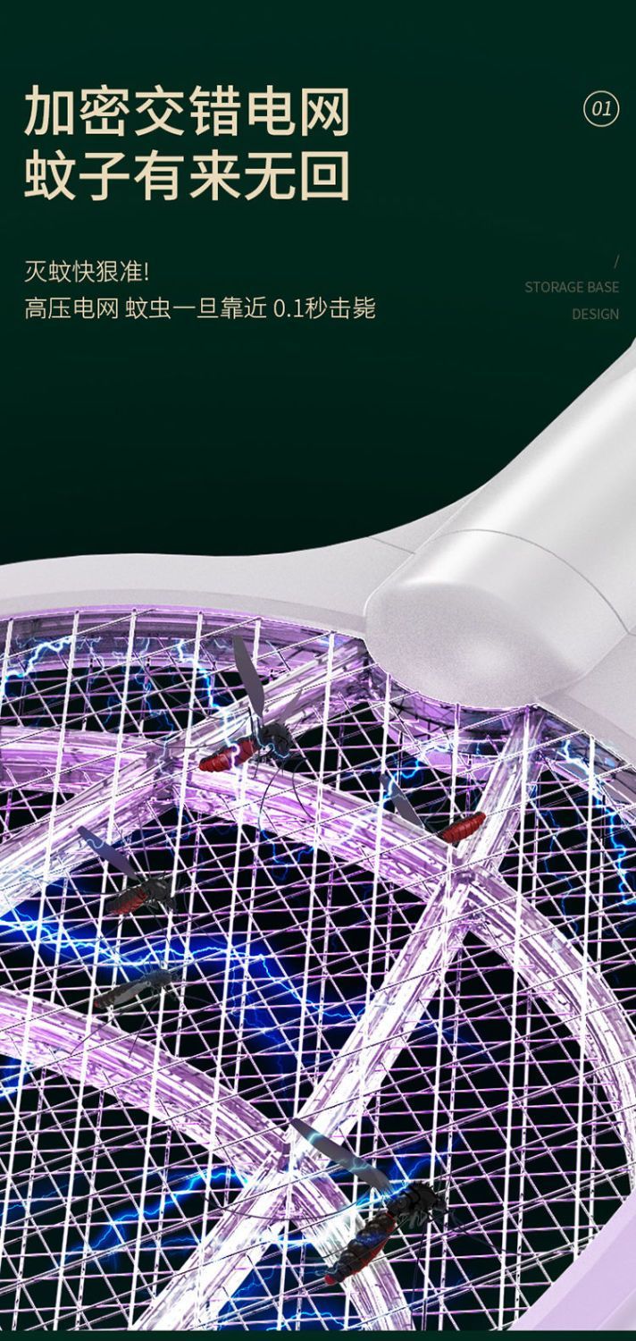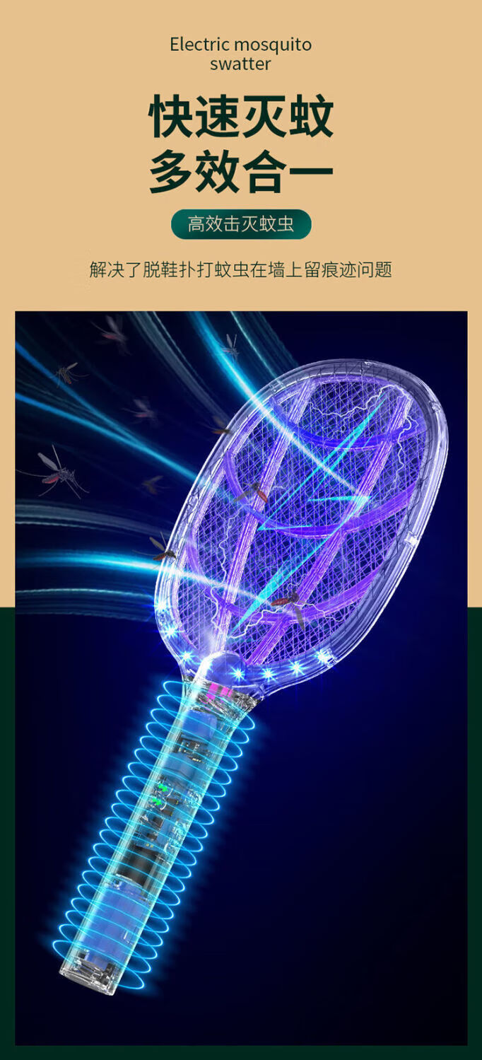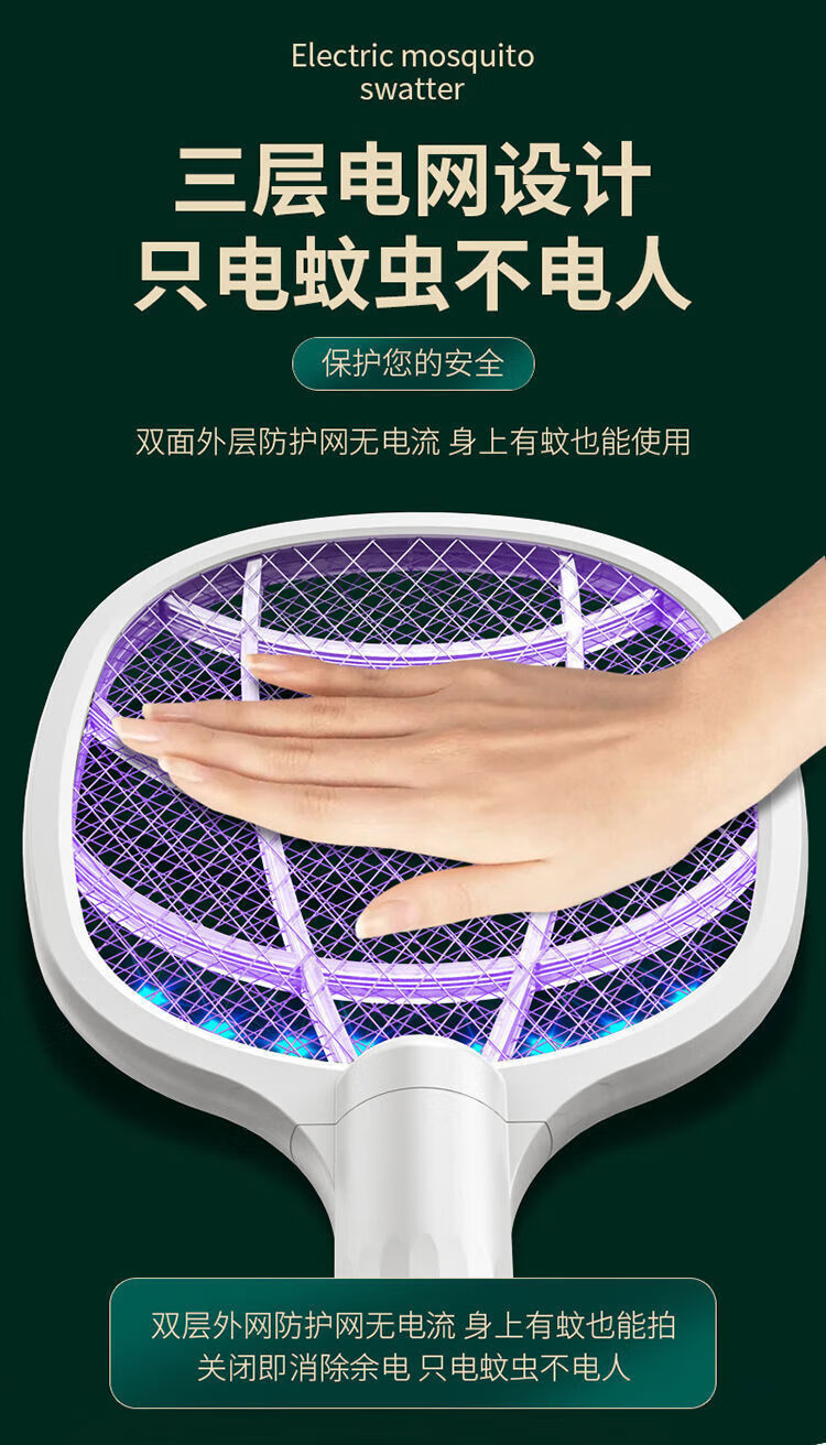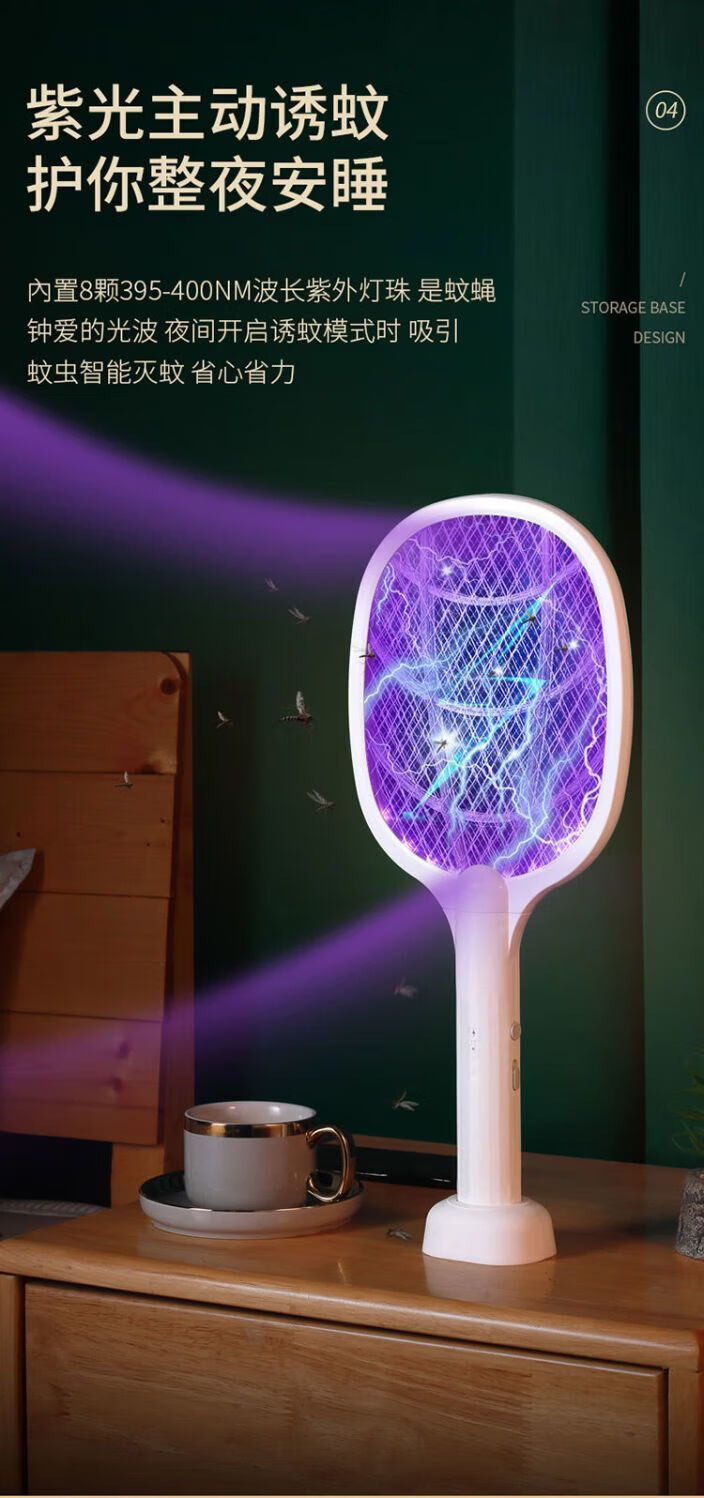 Joyoung Powerful Electric Mosquito Swatter for Bedroom and Household Intelligent Two-in-One Mosquito Killer Artifact Lithium Electric Mosquito Swatter for Household Rechargeable Multi-Function Random Model (No Charging Cord)