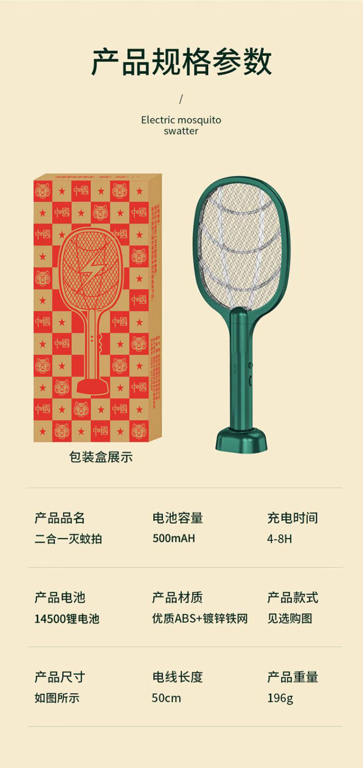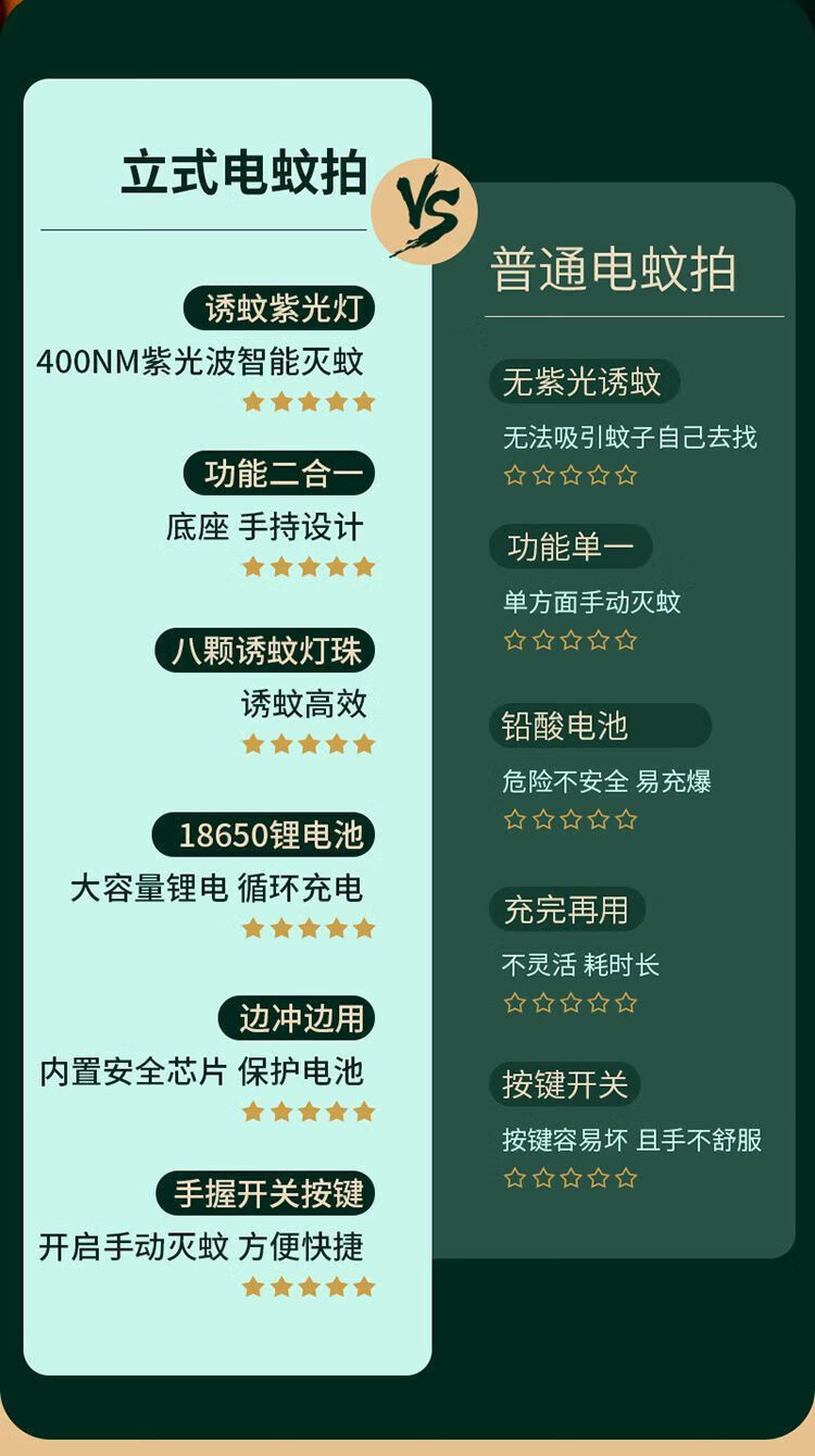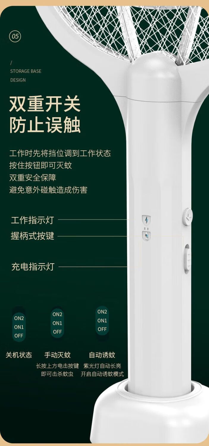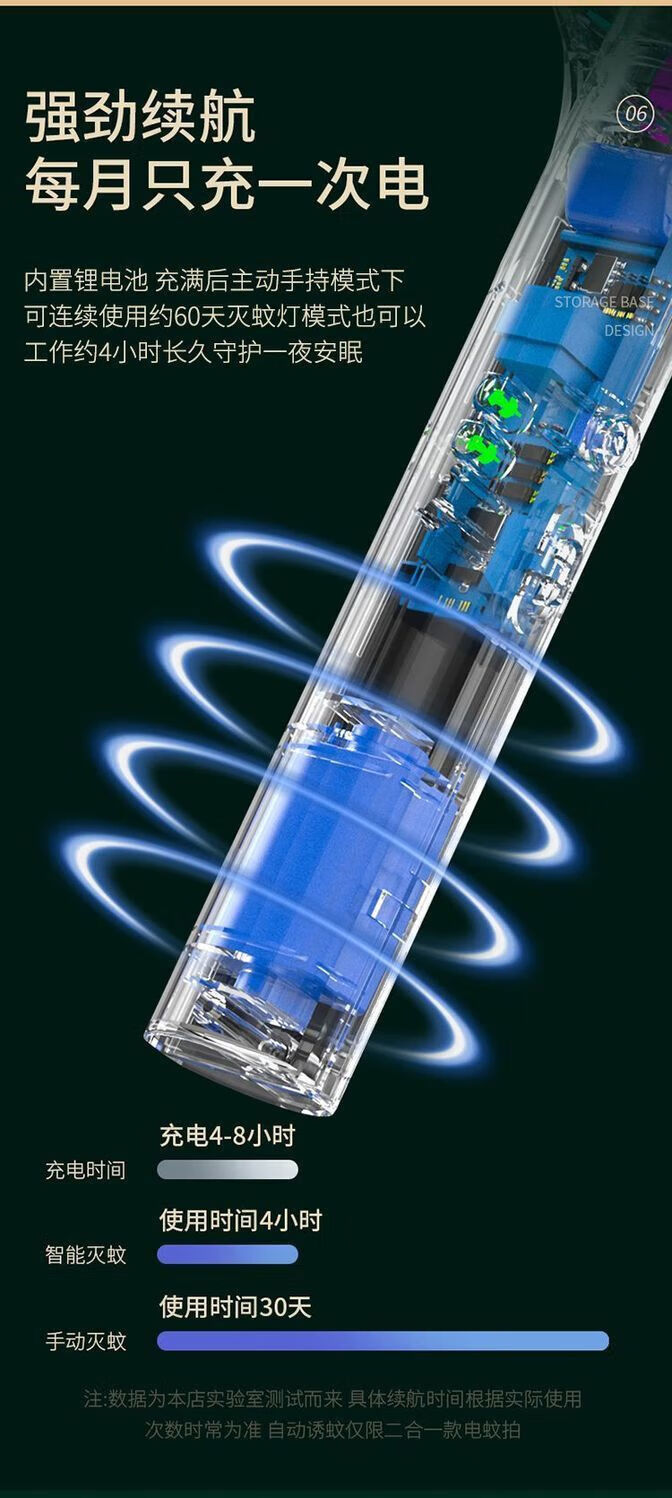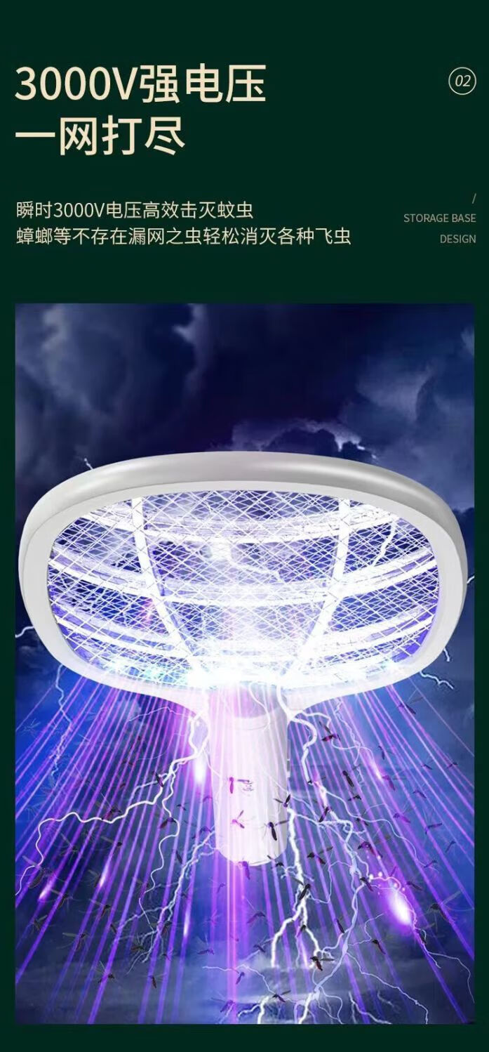 Joyoung Powerful Electric Mosquito Swatter for Bedroom and Household Intelligent Two-in-One Mosquito Killer Artifact Lithium Electric Mosquito Swatter for Household Rechargeable Multi-Function Random Model (No Charging Cord)