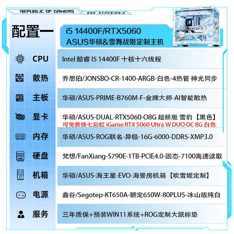 ASUS Family Bucket 14600KF host RTX5060Ti host Fuxue customized ASUS Family Bucket ROG Helios graphics card design game assembly computer host DIY assembly machine 14600KF+RTX5060丨With two