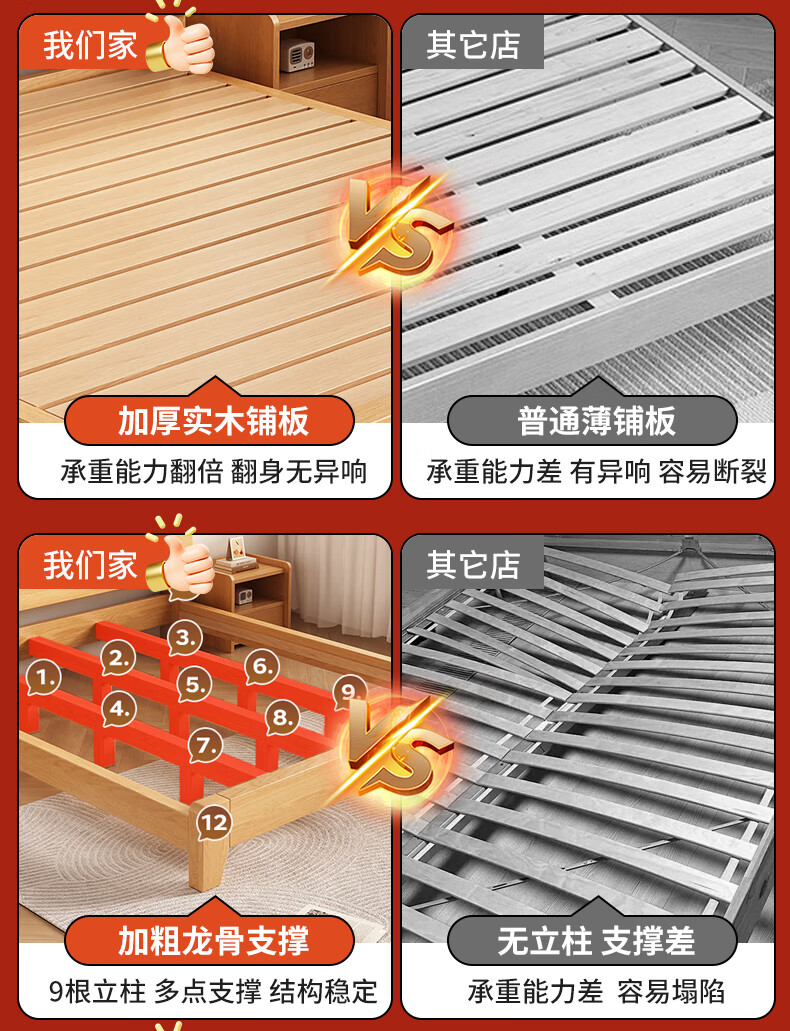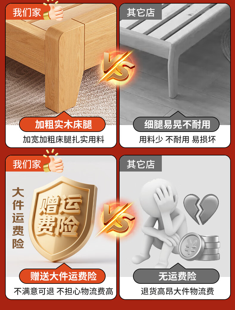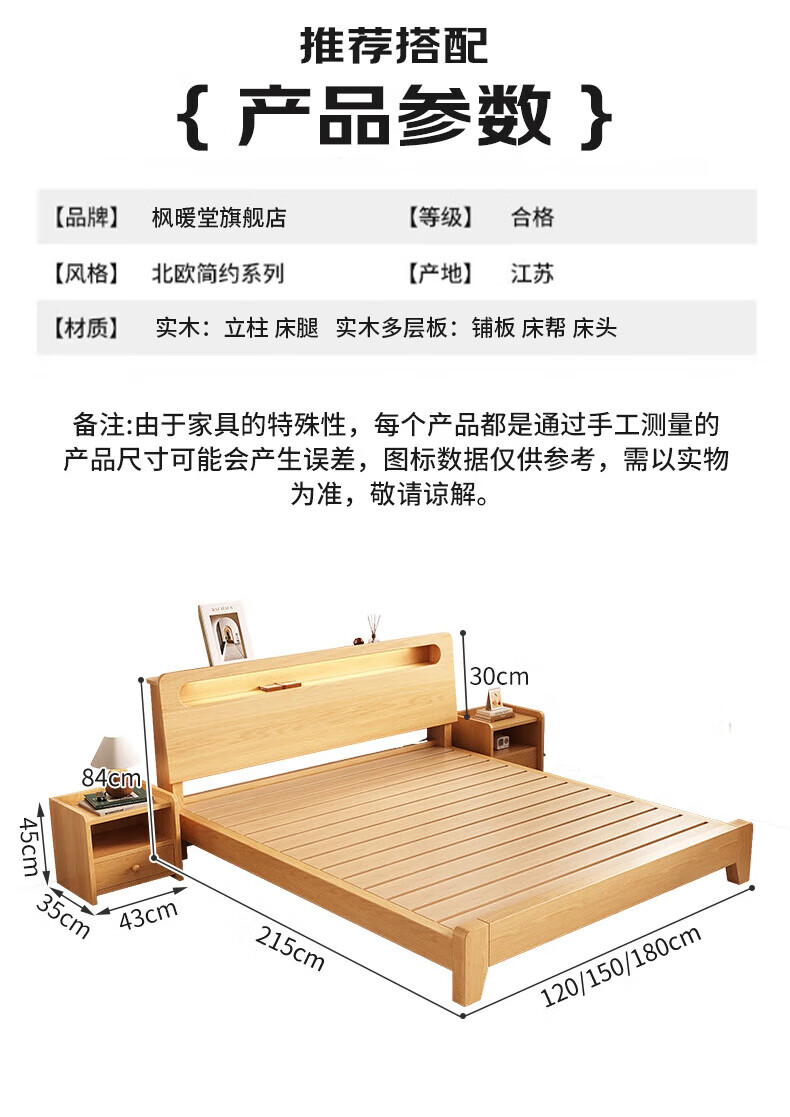 Fengnuantang solid wood bed double 1.8m modern simple 1.5m home master bedroom double bed rental house bed 1.2m solid wood bed 1500mm*2000mm special price impulse