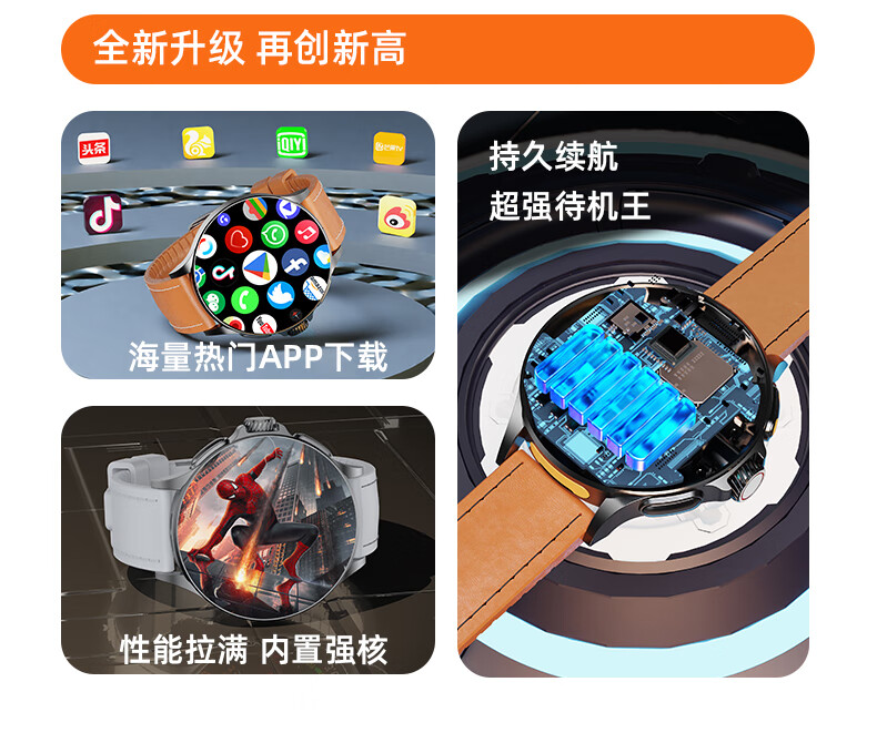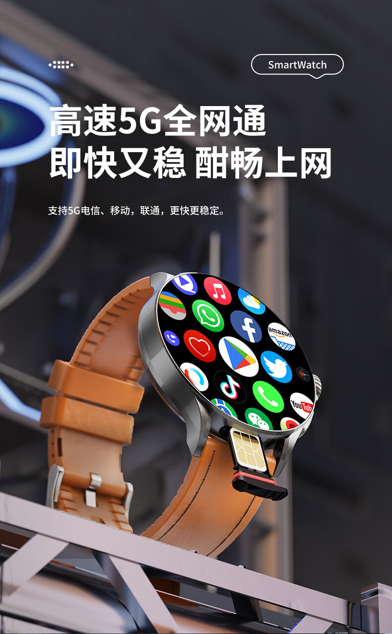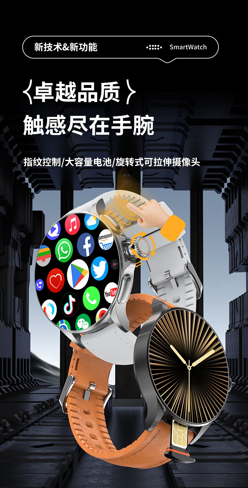 Huaqiangbei Smart Watch National Subsidy WATCH GT 5G Full Netcom Plug-in Card Independent Call Cellular Top Edition Sports Watch Bluetooth Dual System Adult 2025 New Black Exclusive Edition - Rotating Camera - Dual System NFC Payment + AMOLED Large Screen
