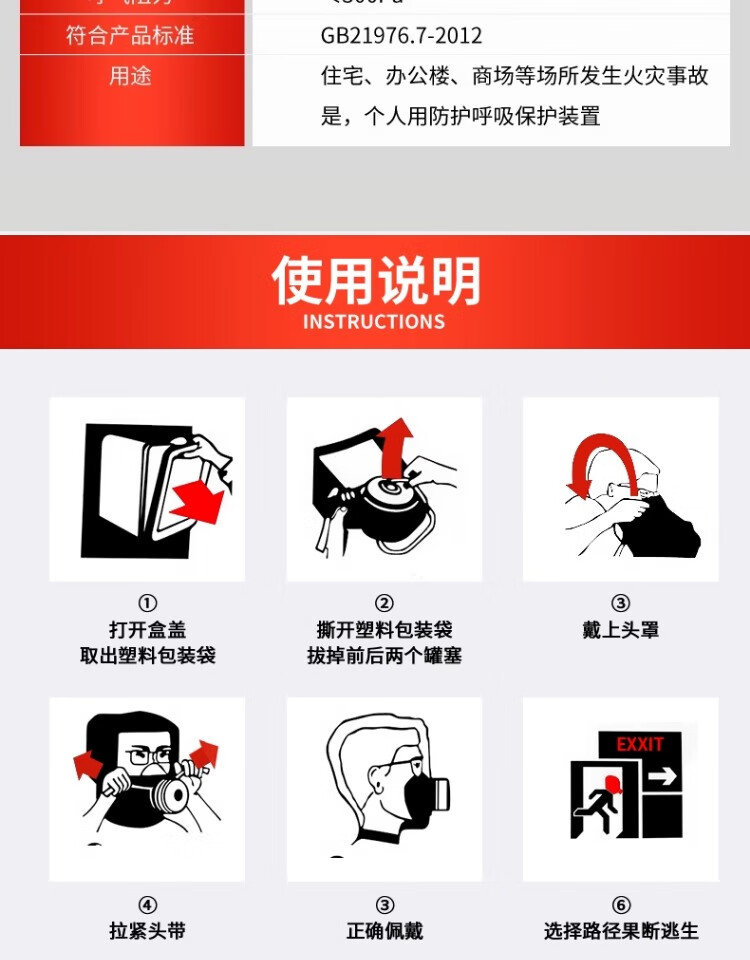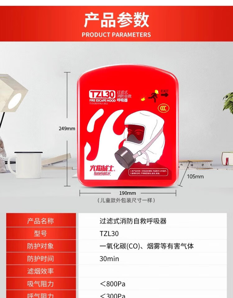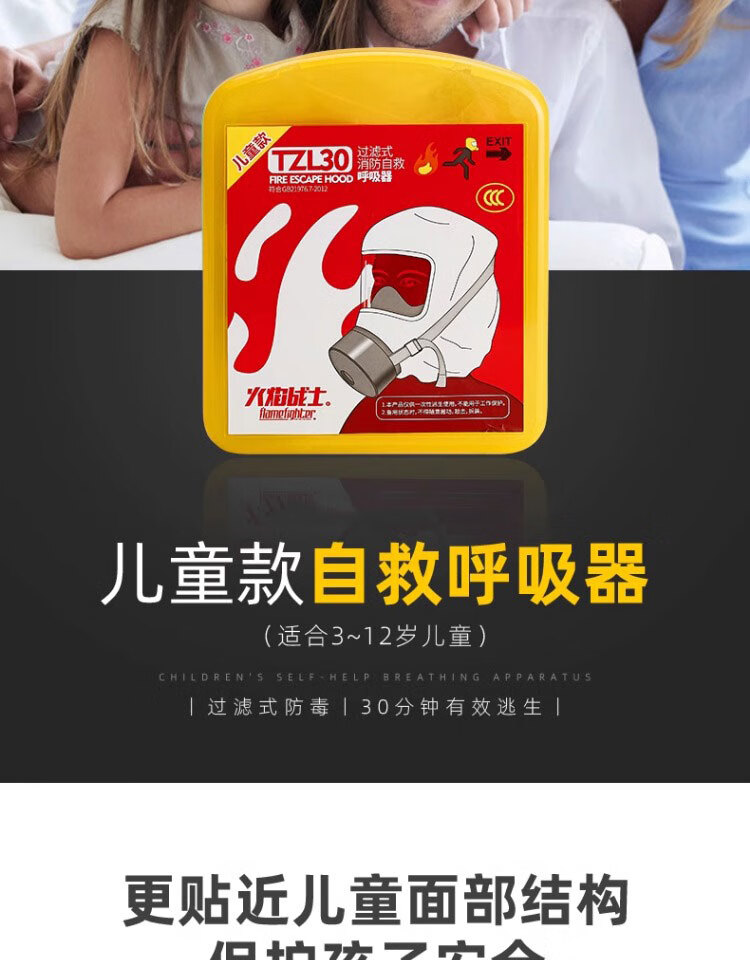 Fire mask anti-fire escape mask 3C certified filter type anti-smoke and anti-virus household fire self-rescue respirator household emergency fire protection set