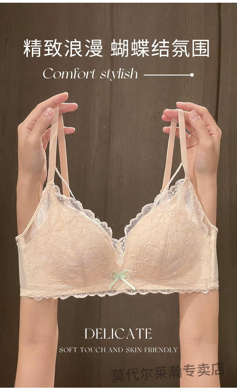 Modal lace underwear for women summer thin small breasts push up to show bigger anti-sagging sexy suit bra 2025 new skin color suit 70A 70B (suitable for 32B)