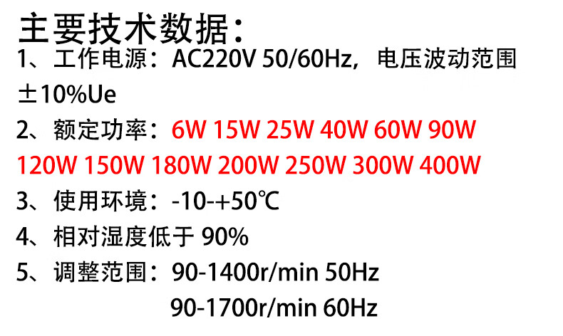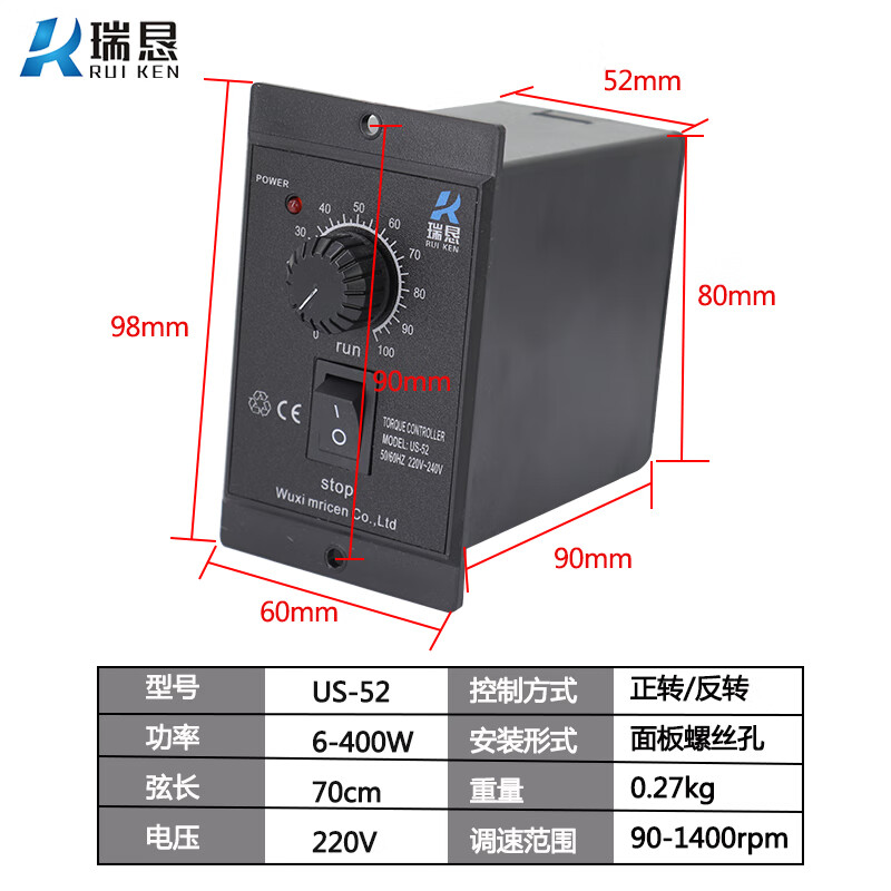 US-52 motor speed regulator 6W15W25W40W60W90W120W250W300W400W motor switch 220 120W (default flat plug)