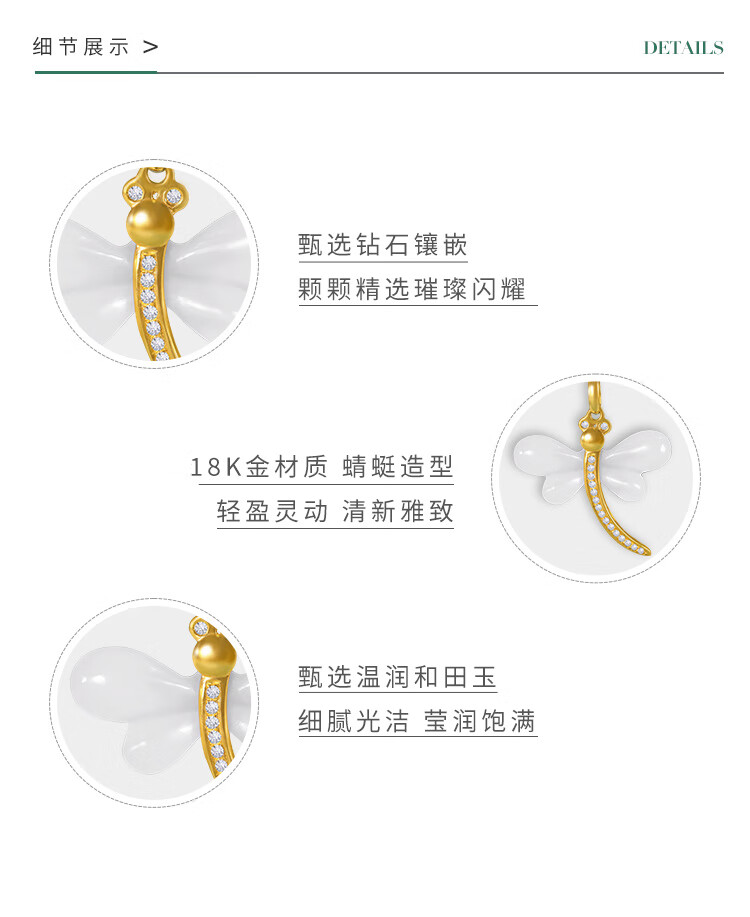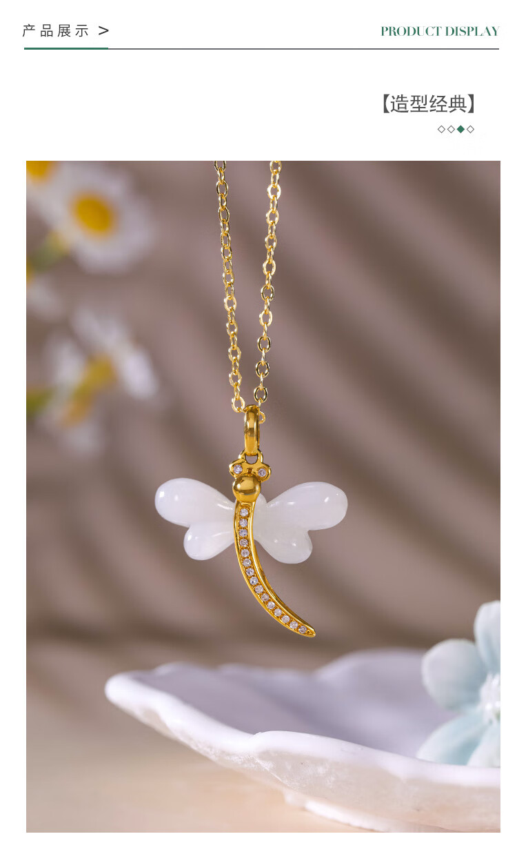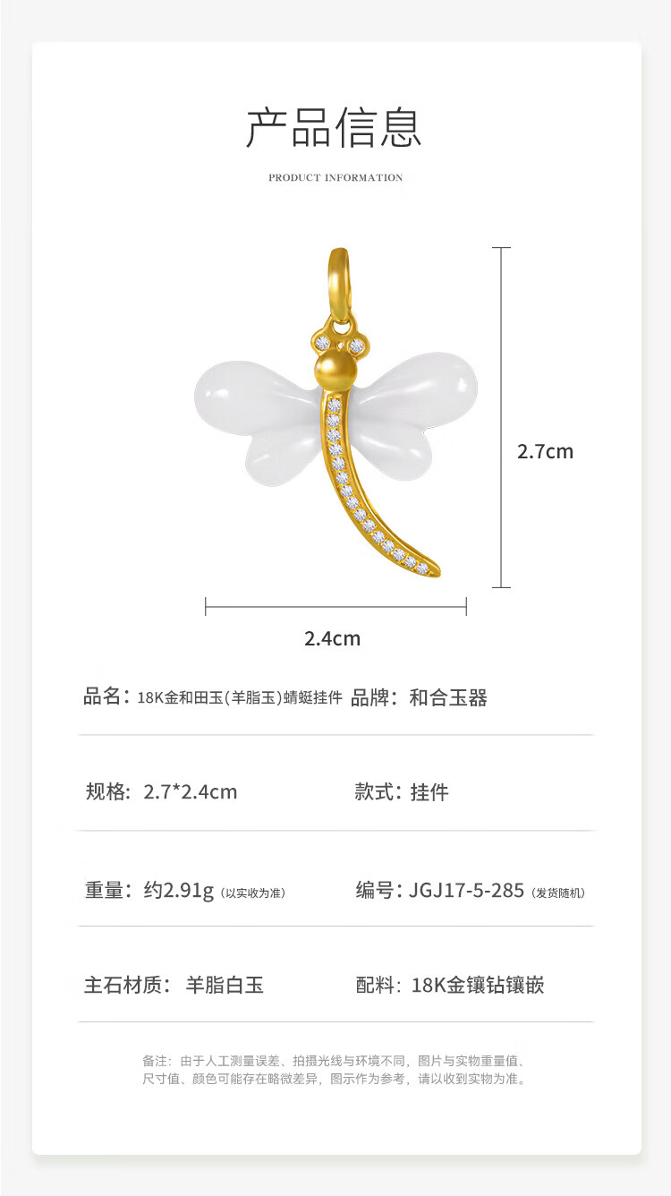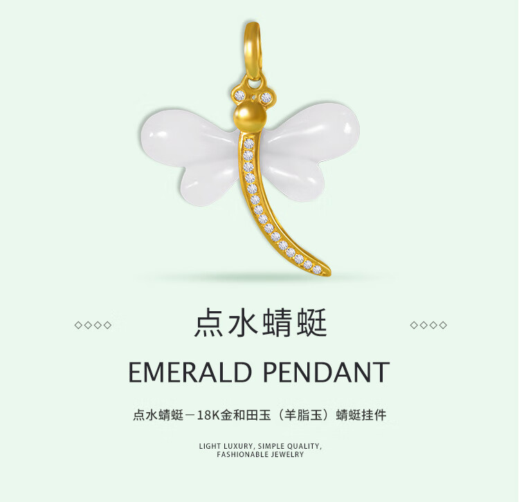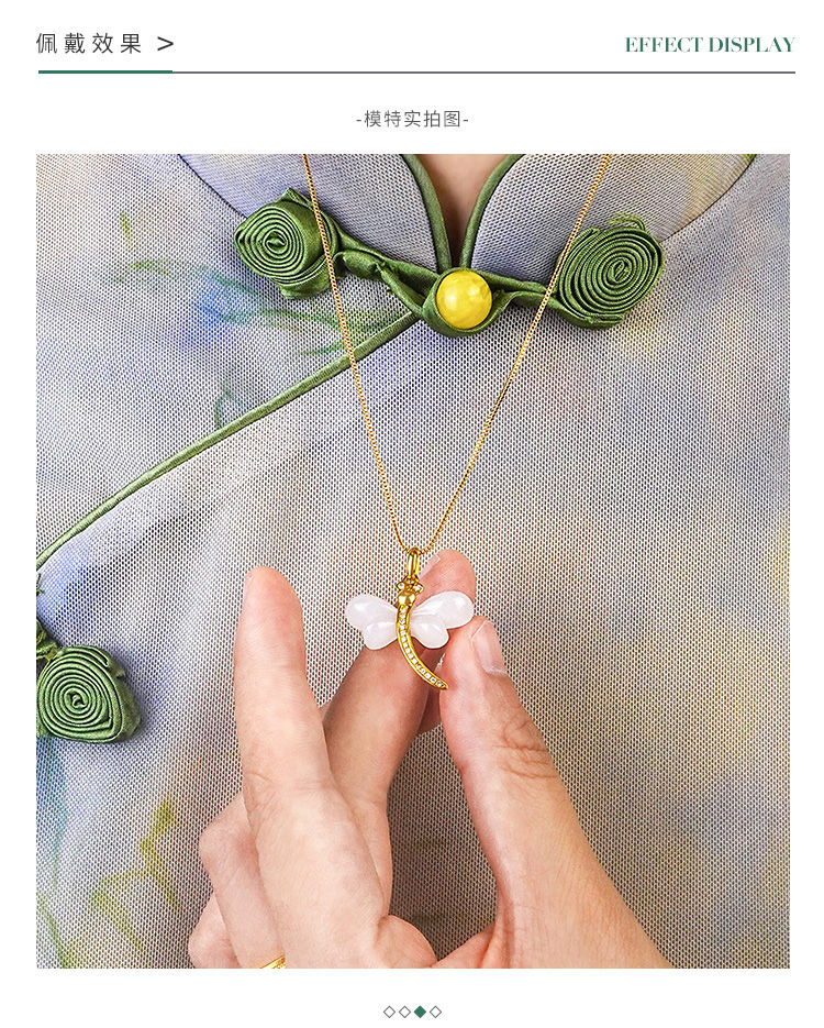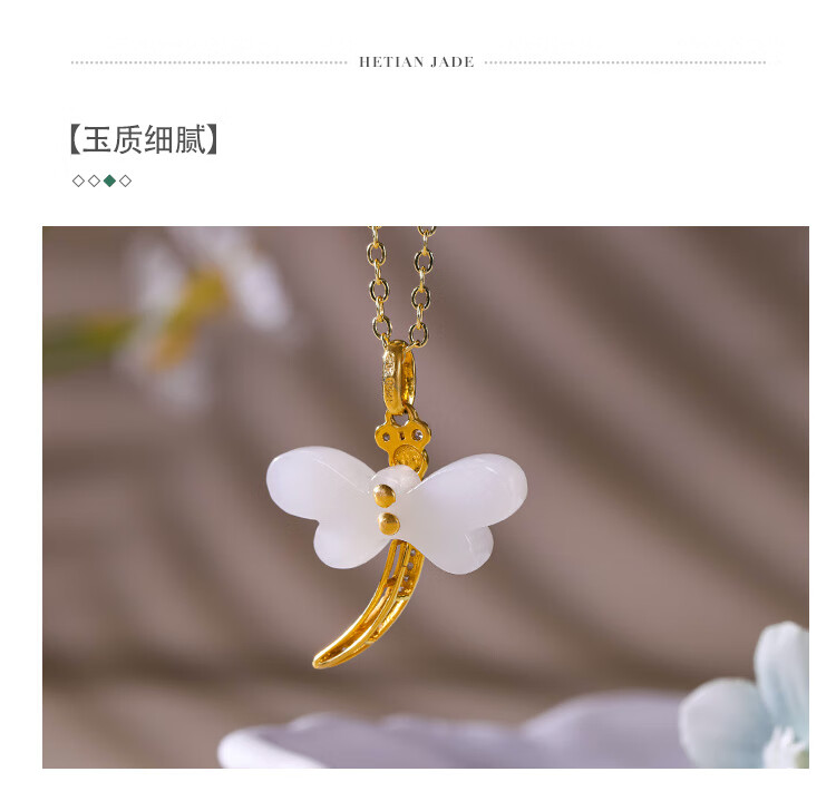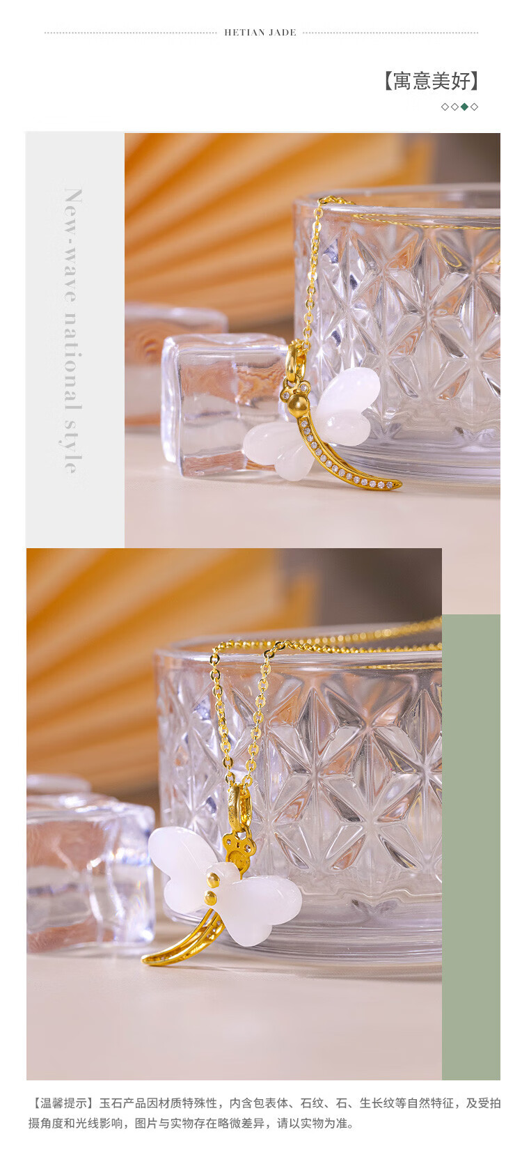 Yuansi 18k gold Hetian jade mutton fat white jade dragonfly pendant gold inlaid jade white jade insect gold pendant