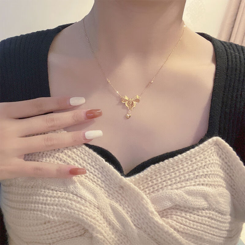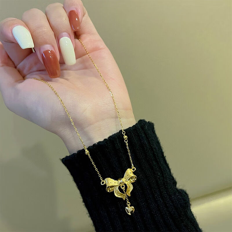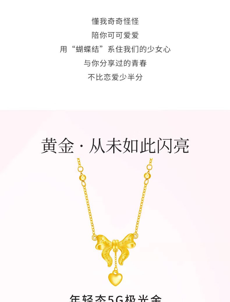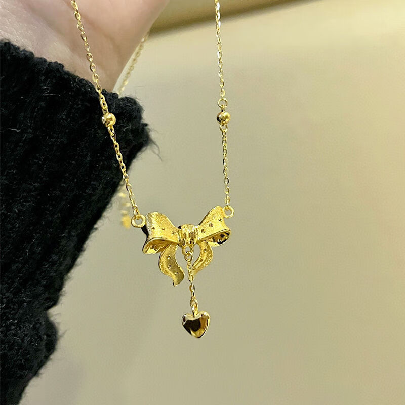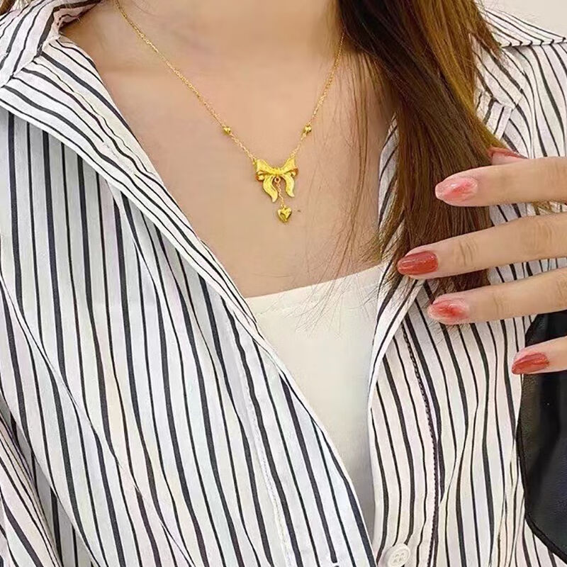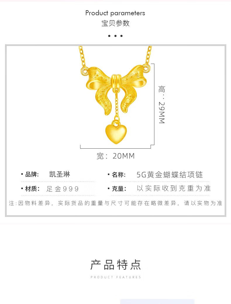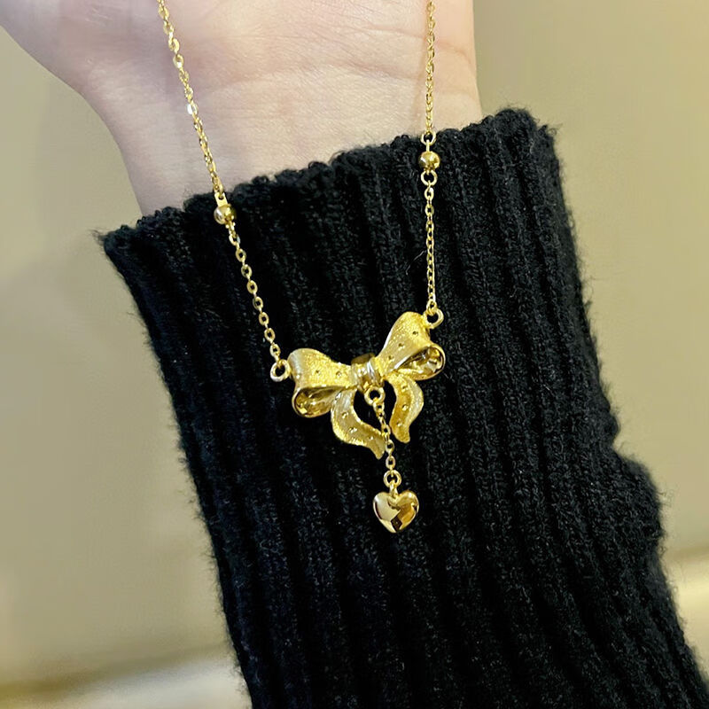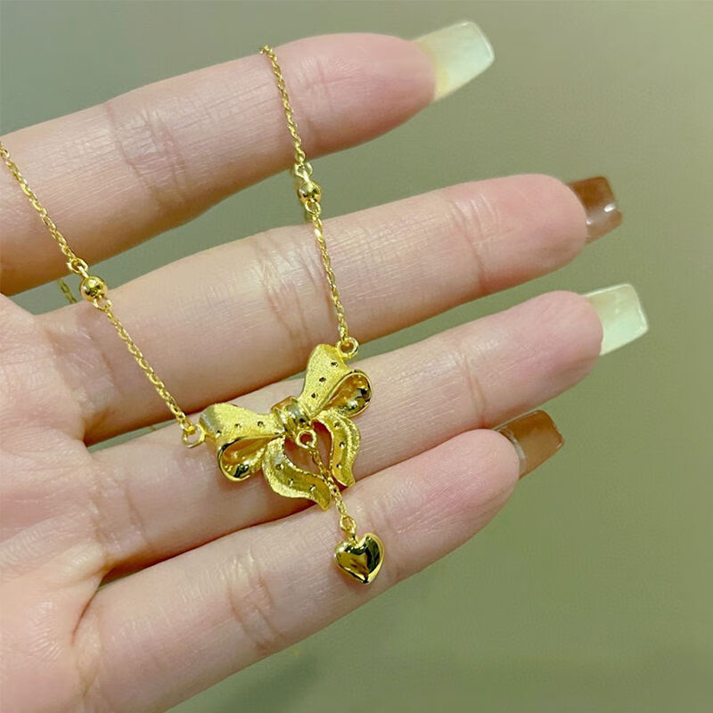Yuansi bow necklace gold pendant for women 999 pure gold fashionable and cute clavicle chain pure gold adjustable chain set bow necklace about 4.50 grams