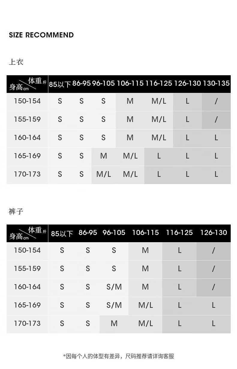 China (cm) 160-165/84-86 165-170 / 88-90 167-172 / 92-96 168-173 / 98-102 170-176 / 106-110
