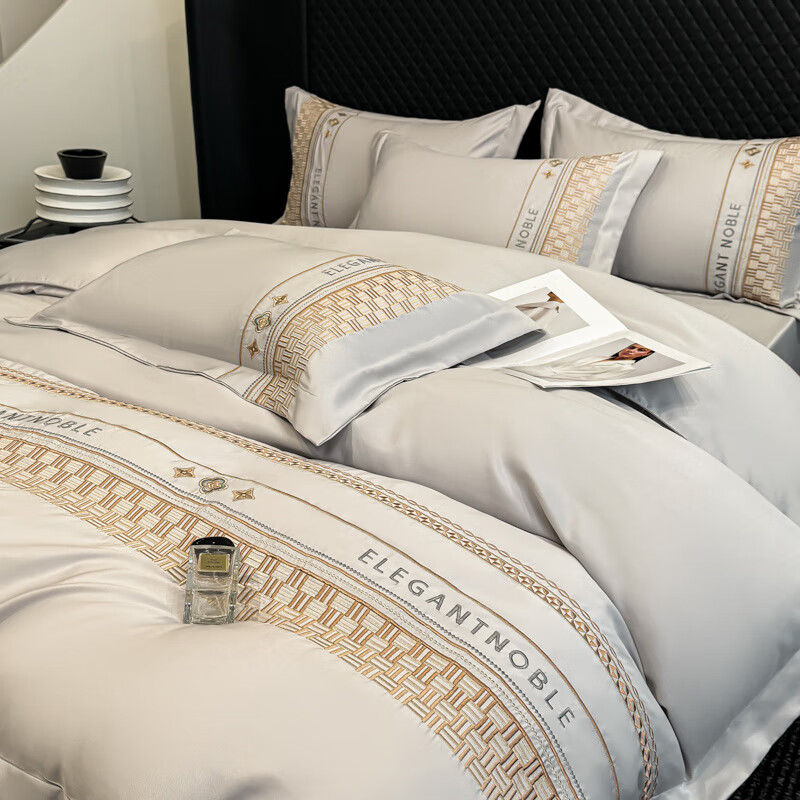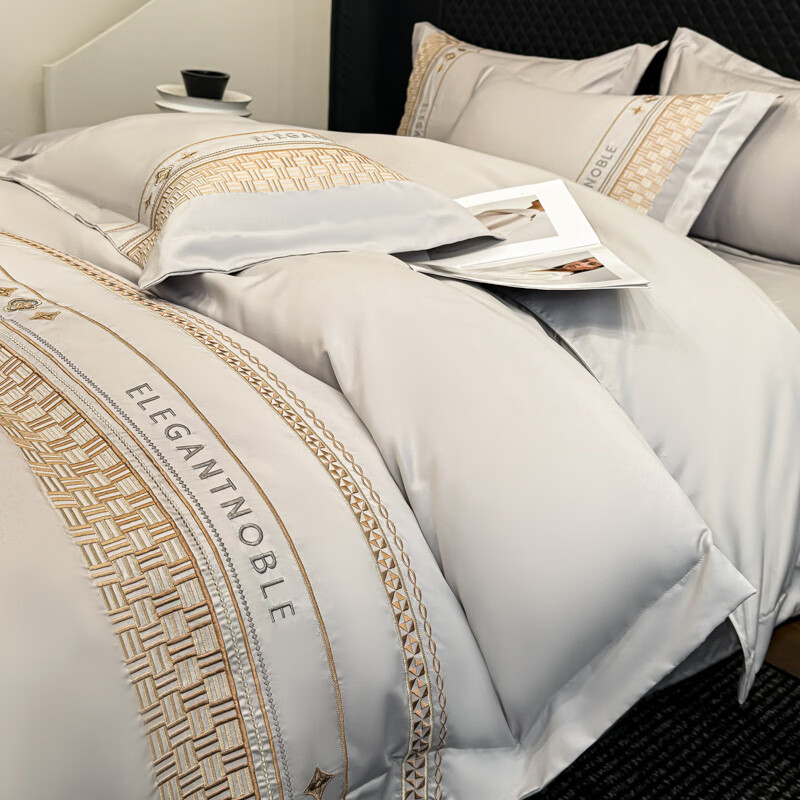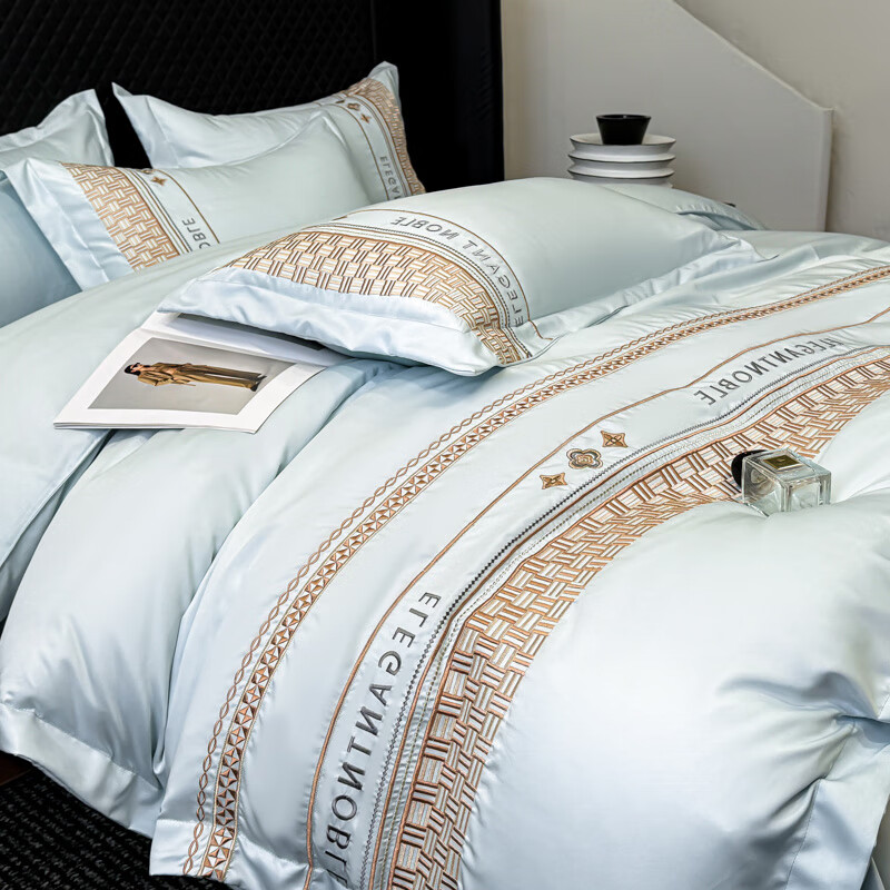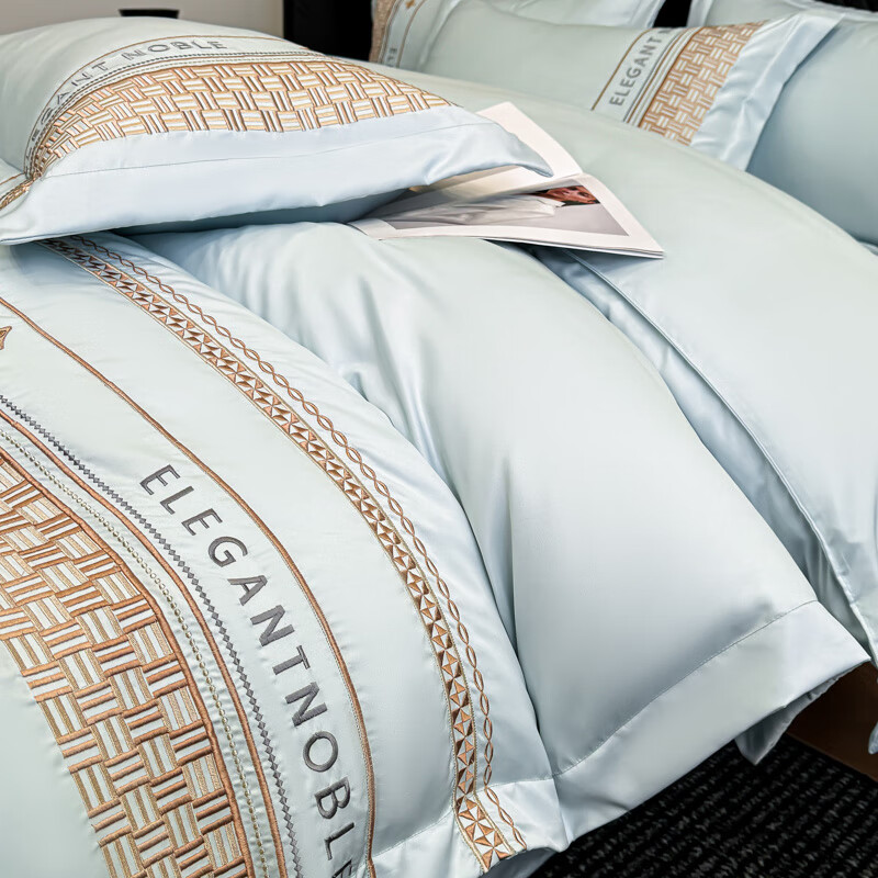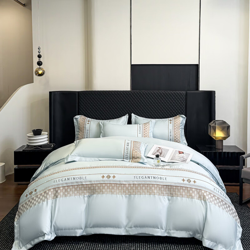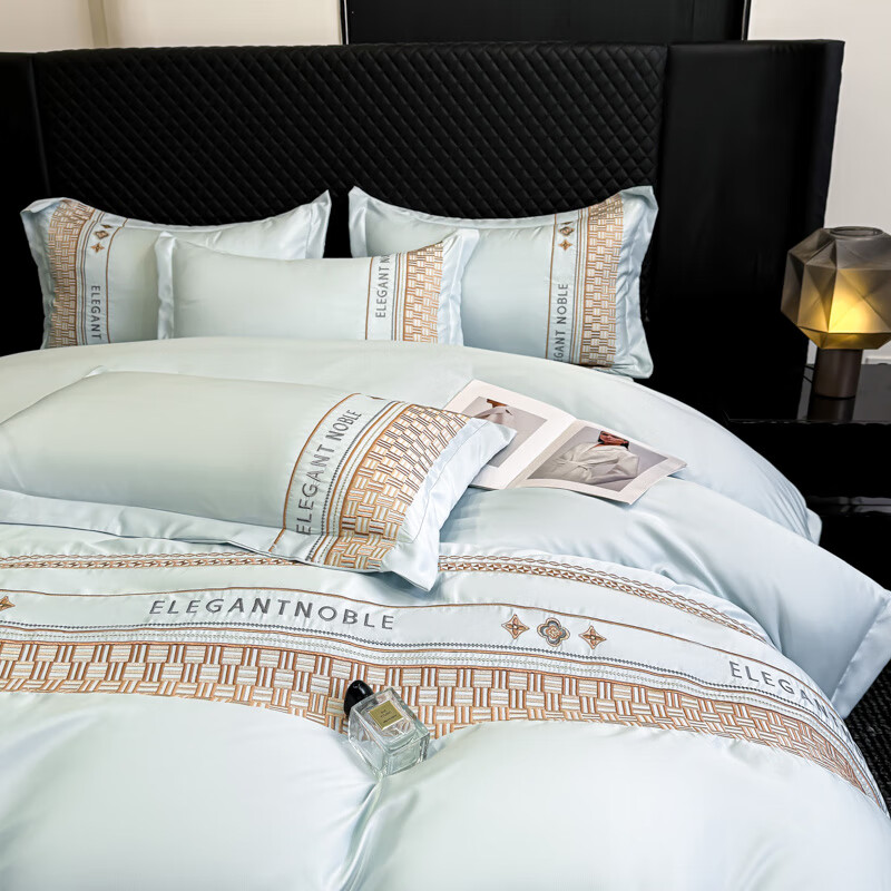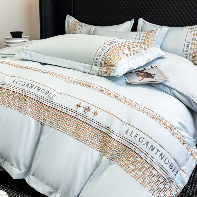 LAVIE HOME Ice Silk Four-piece Summer Silky Nude Sleeping Quilt Cover 2025 New Light Luxury Sheet Summer Bed Alice-Baby Blue Sheet Style 1.8m Four-piece Set