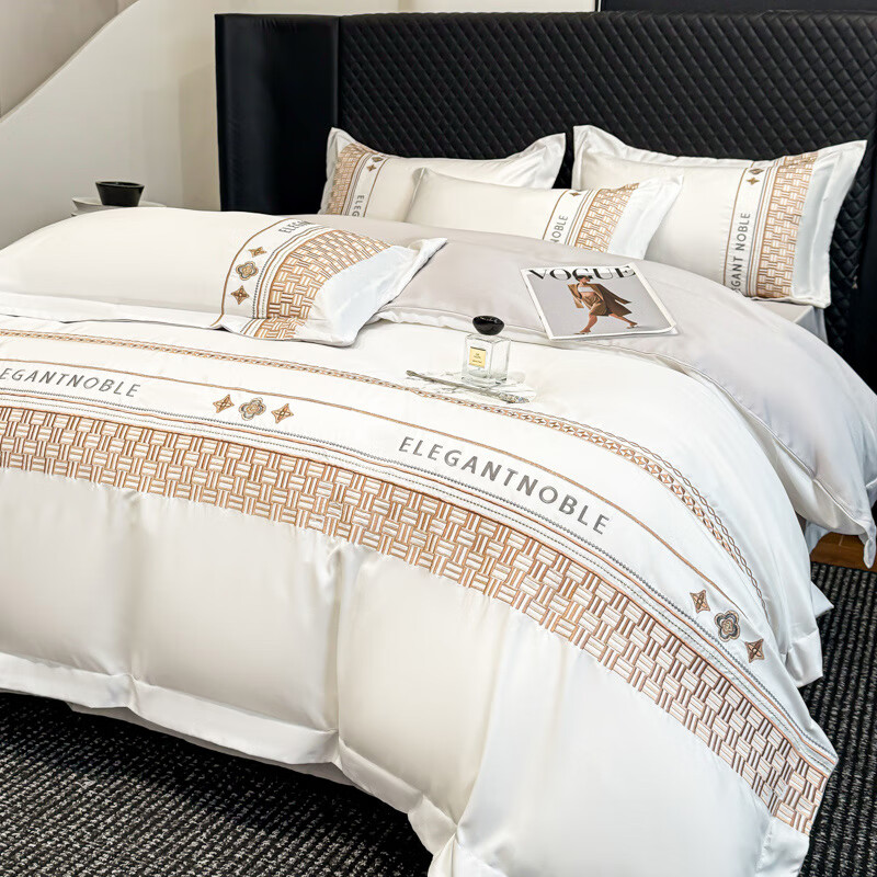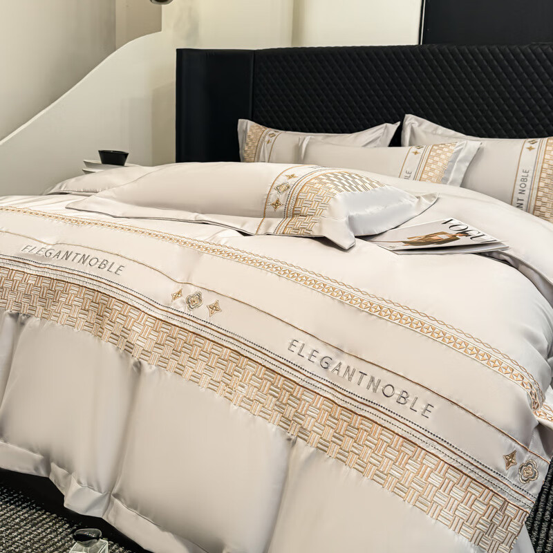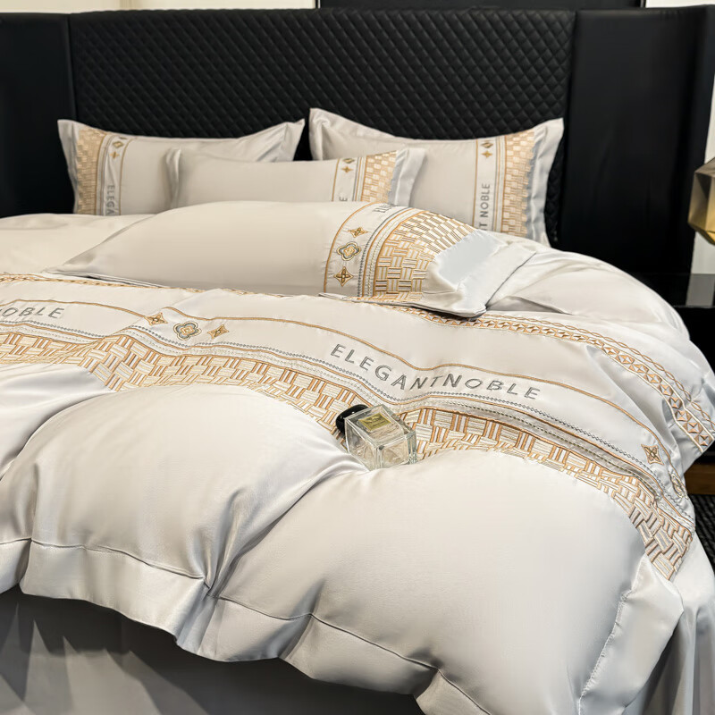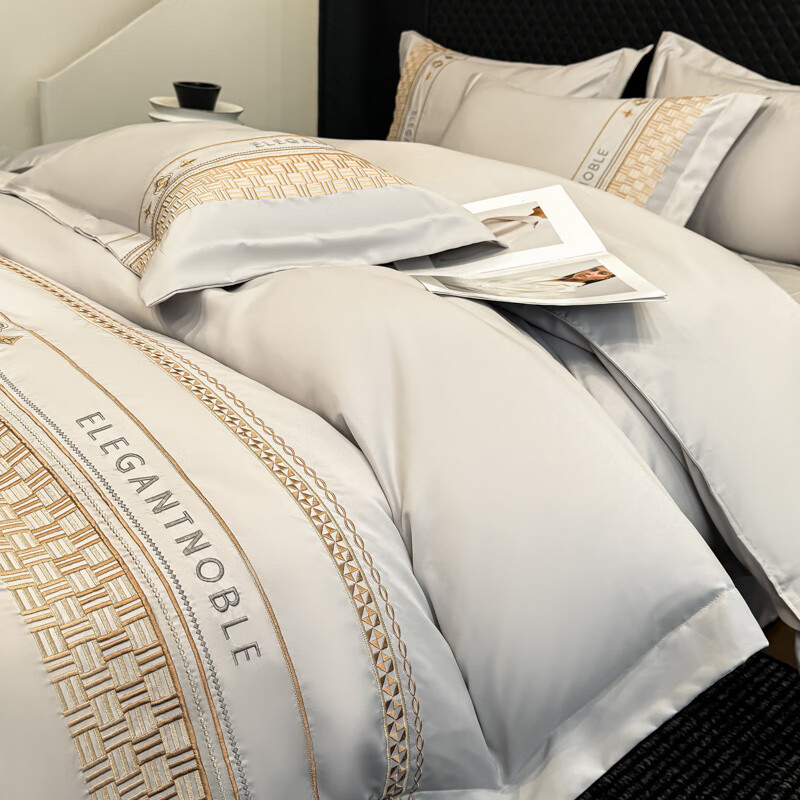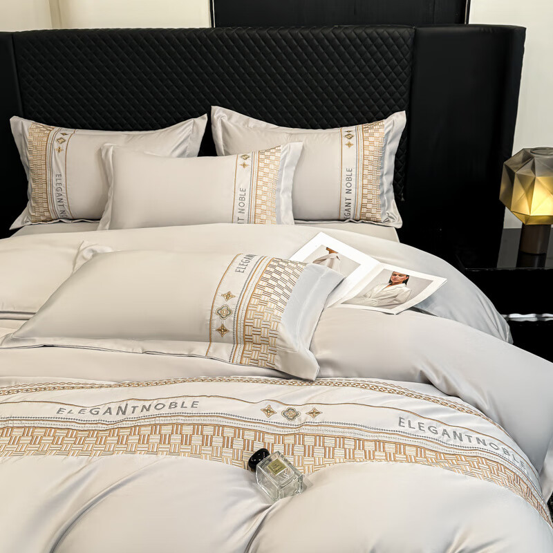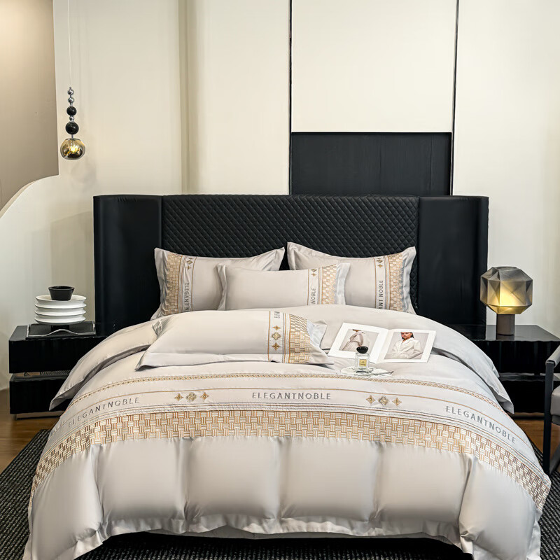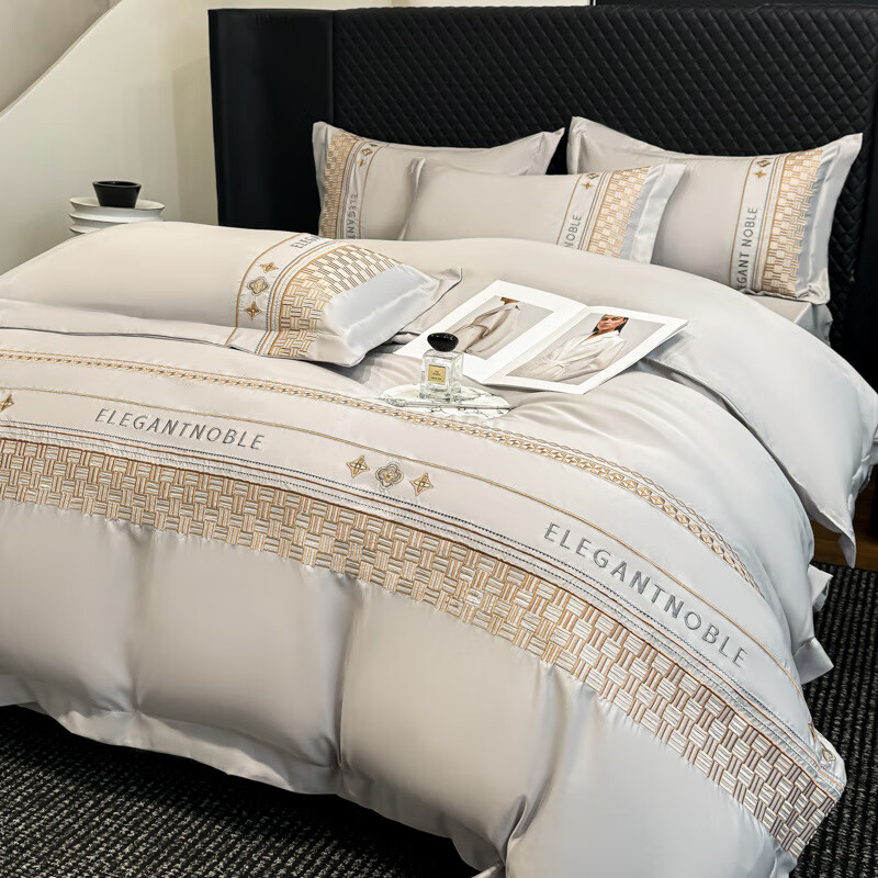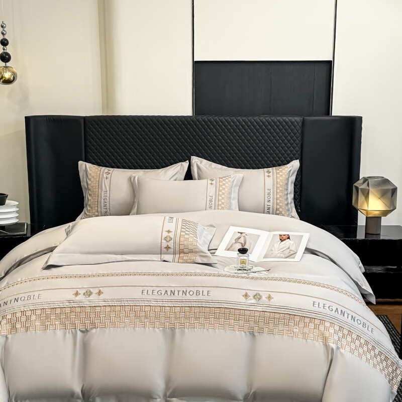LAVIE HOME Ice Silk Four-piece Summer Silky Nude Sleeping Quilt Cover 2025 New Light Luxury Sheet Summer Bed Alice-Baby Blue Sheet Style 1.8m Four-piece Set
