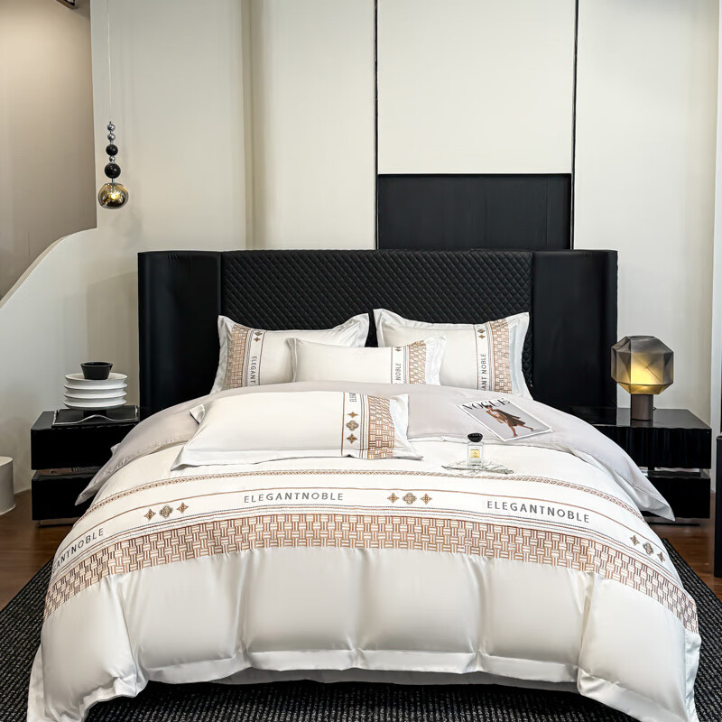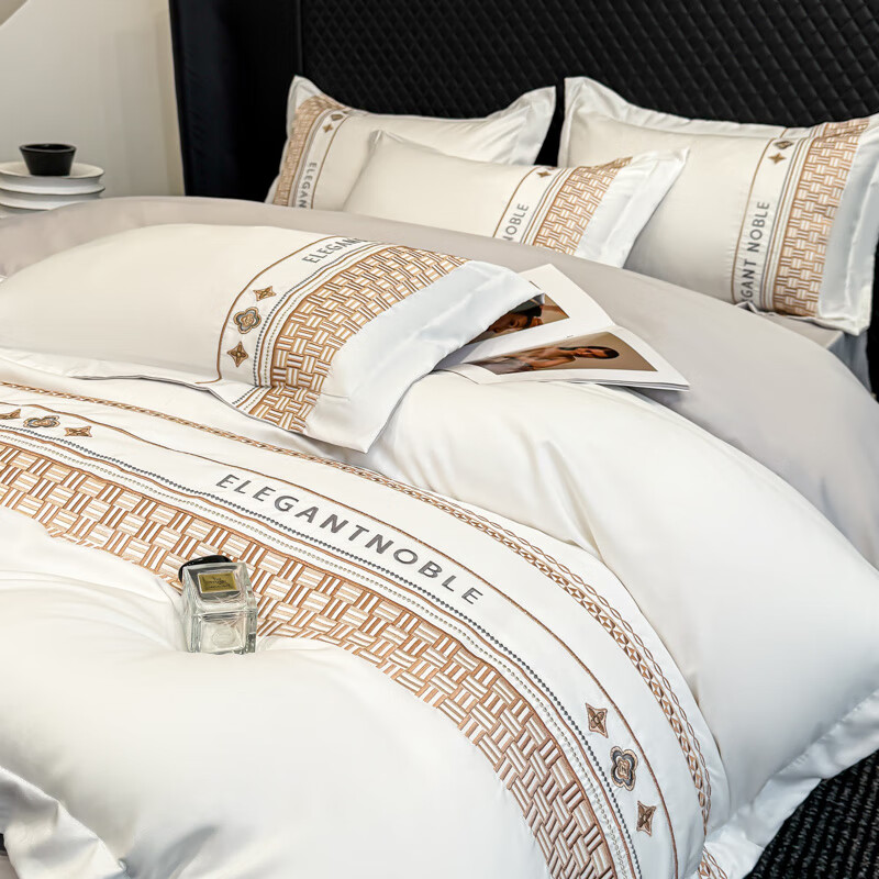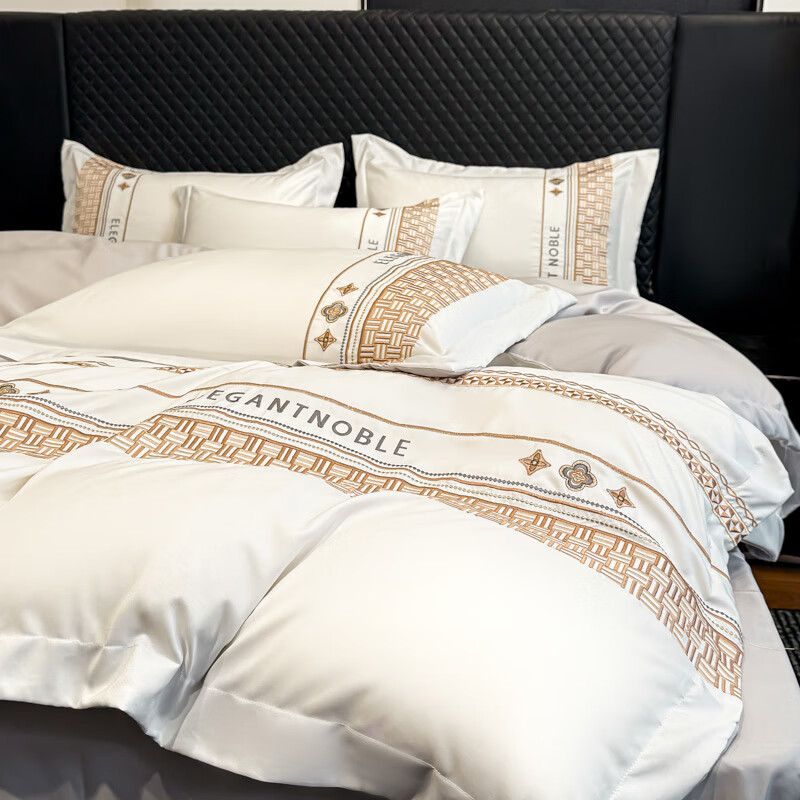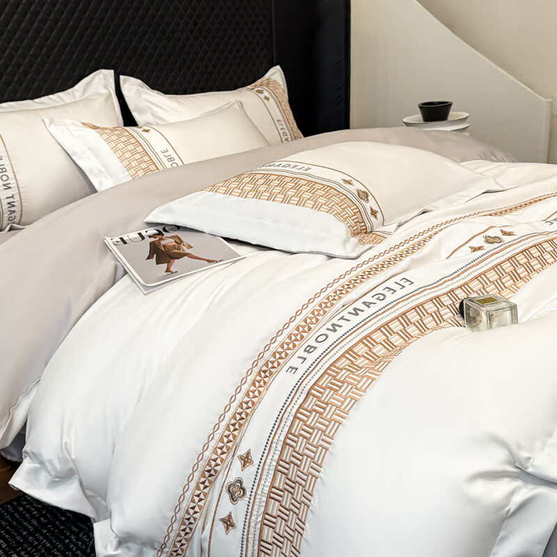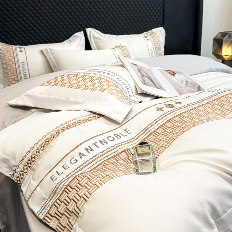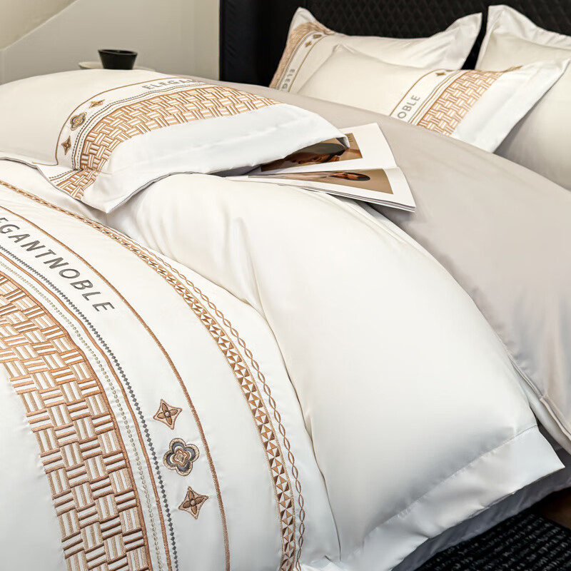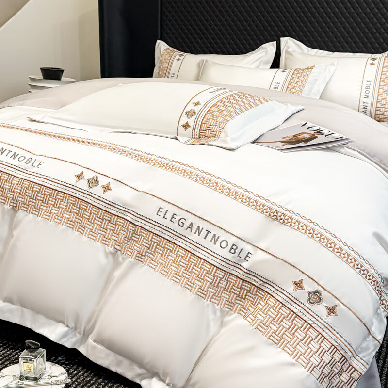 LAVIE HOME Ice Silk Four-piece Summer Silky Nude Sleeping Quilt Cover 2025 New Light Luxury Sheet Summer Bed Alice-Baby Blue Sheet Style 1.8m Four-piece Set
