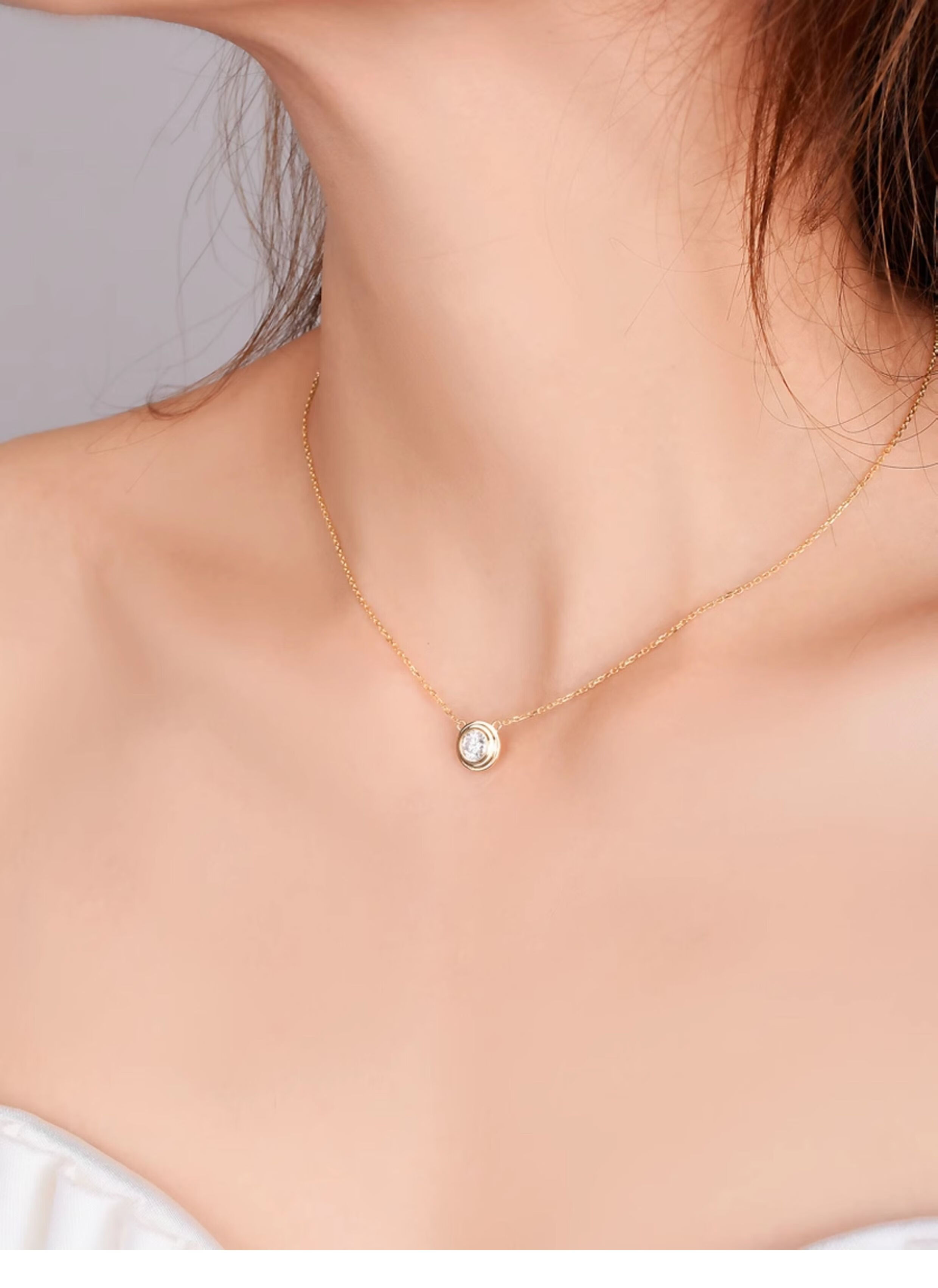 Yuan Si UFO Pendant with Chain 50 Points Classic Bubble Women's 18K Rose Gold CVD Artificially Grown Diamond Solitaire Necklace VVS1/Very Slightly Flawed NGIC Double Certificate/18K Gold Platinum/Lobster Clasp Pendant