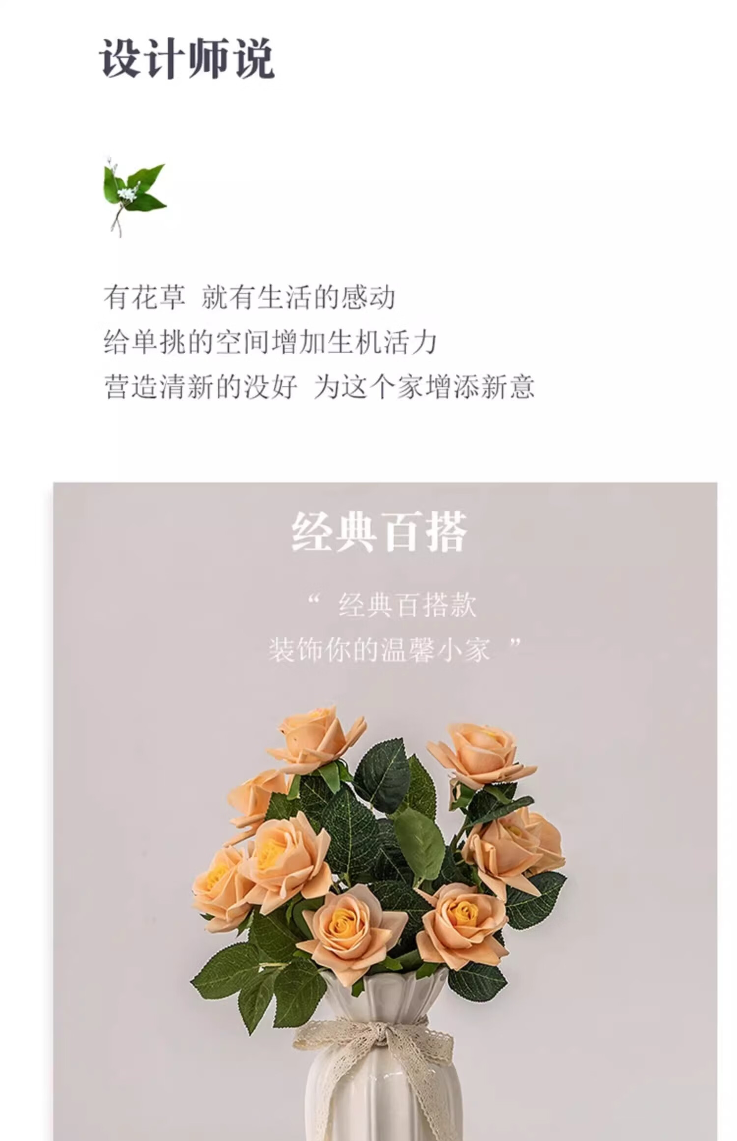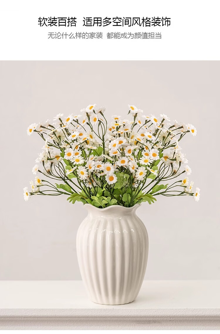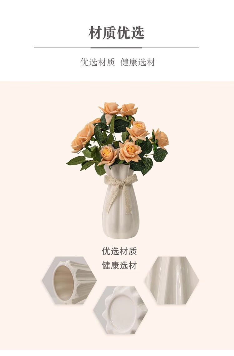 Jinpan European rose flower arrangement vase simple white ceramic flower vessel living room dining table dried flowers fresh flowers hydroponics decorative ornaments Huaze vase 20cm
