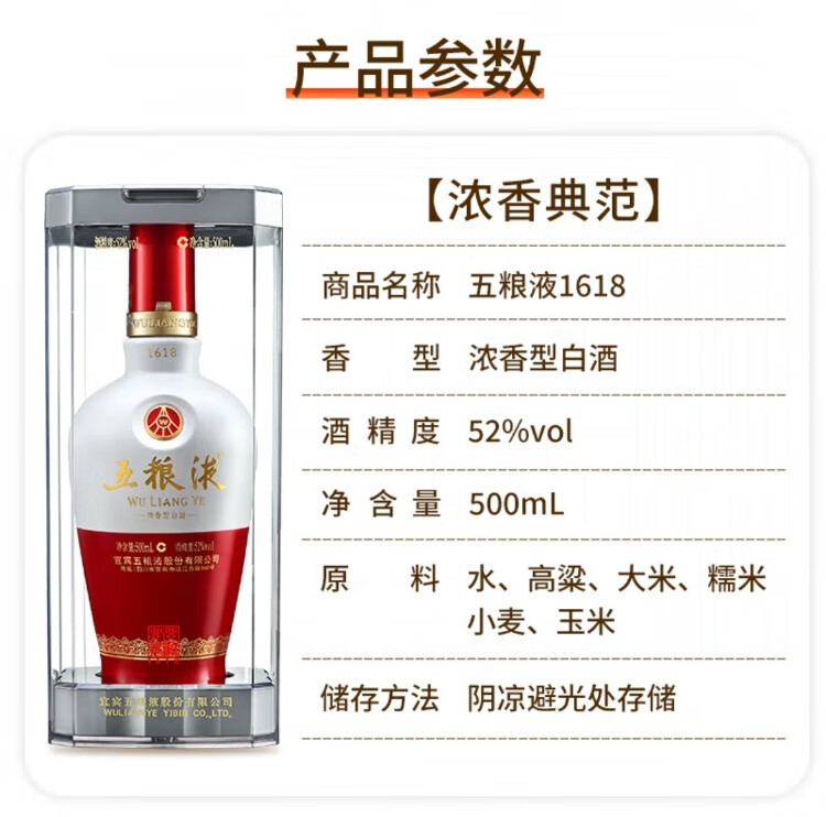 Wuliangye 1618 full box strong aroma liquor business banquet gift choice 52% 500mL 6 bottles full box 52% 500mL 6 bottles