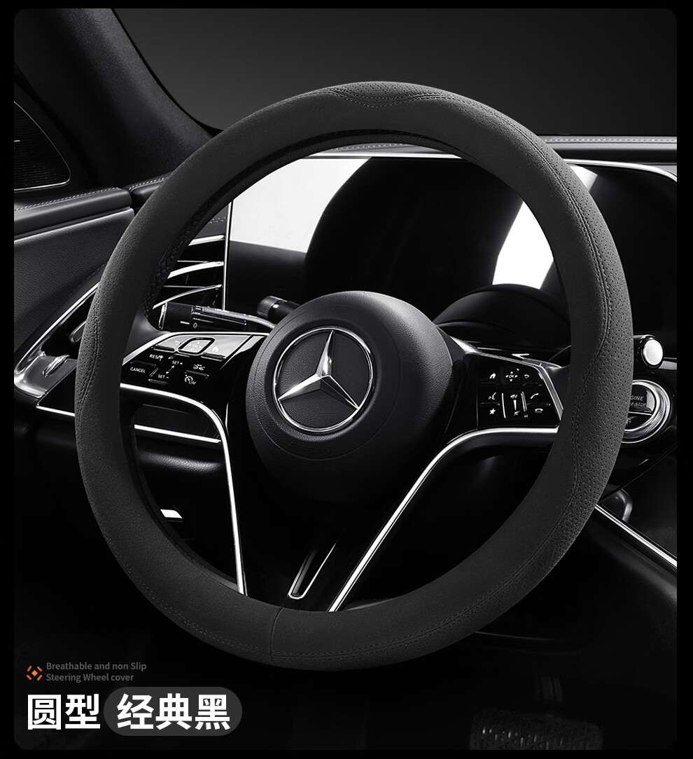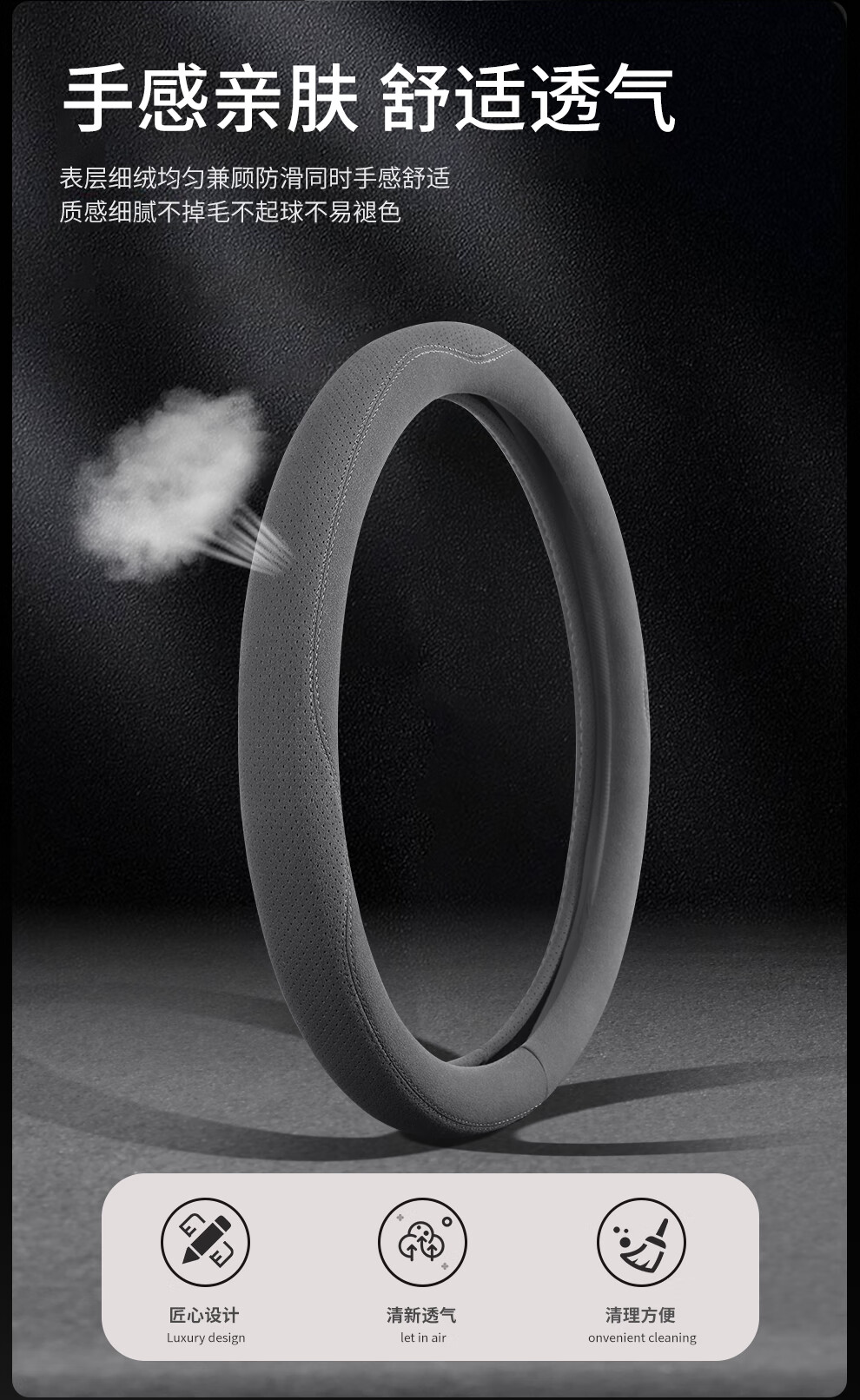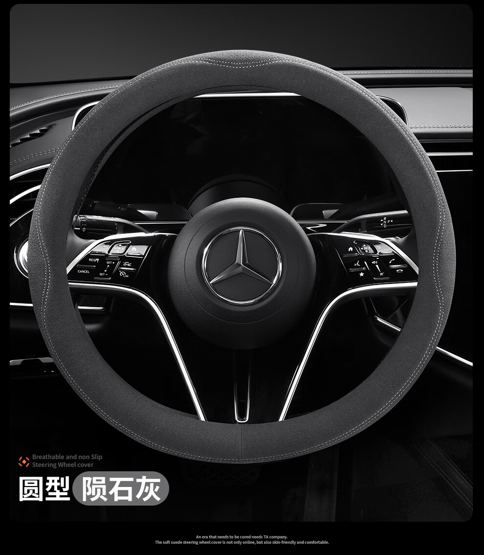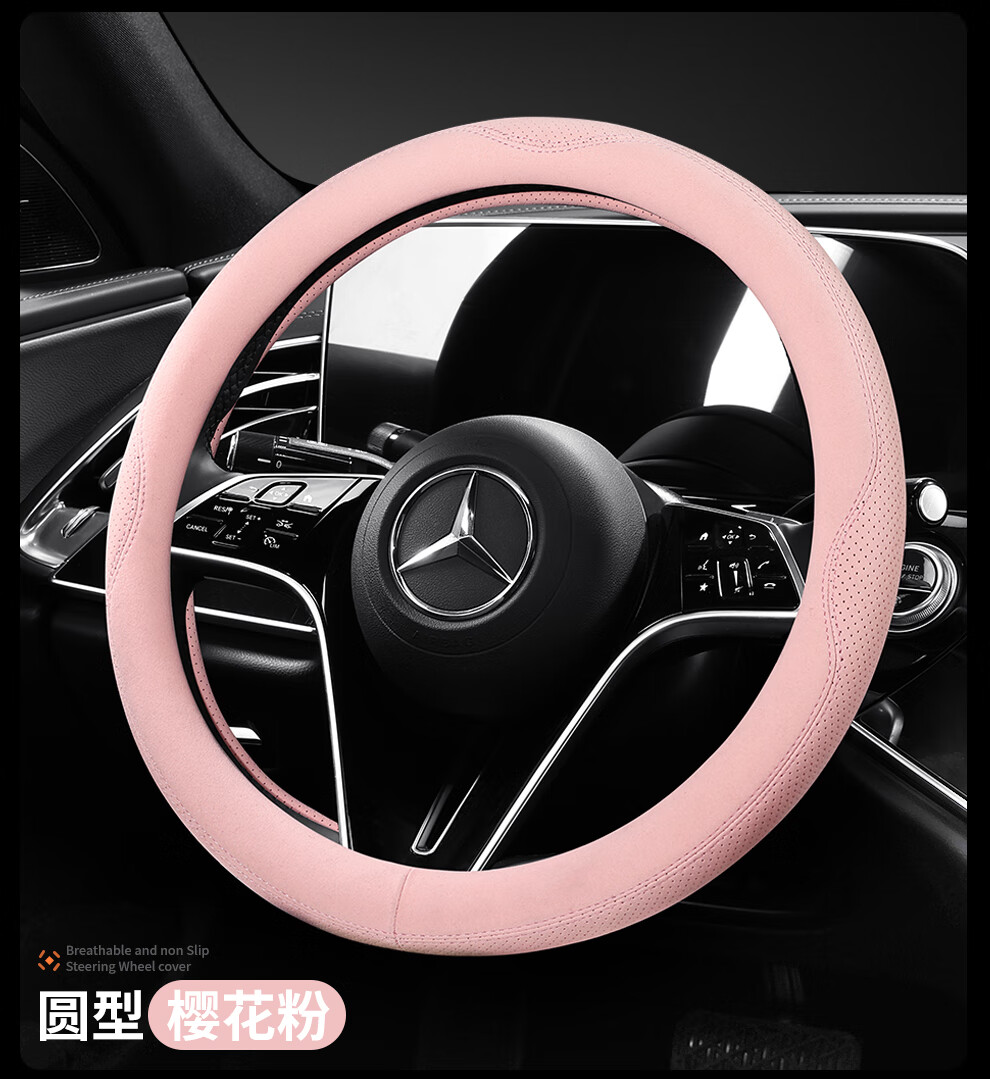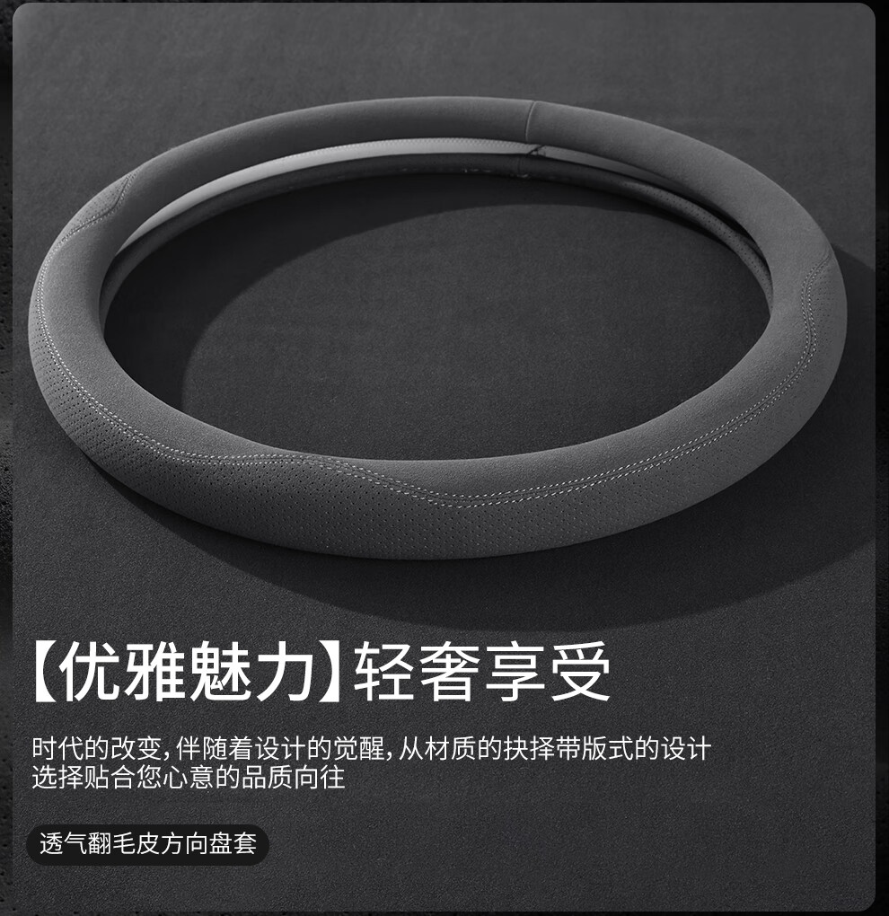 Car steering wheel cover, all-season suede handlebar cover, new ultra-thin anti-slip sweat-absorbent breathable protective cover, meteorite gray round