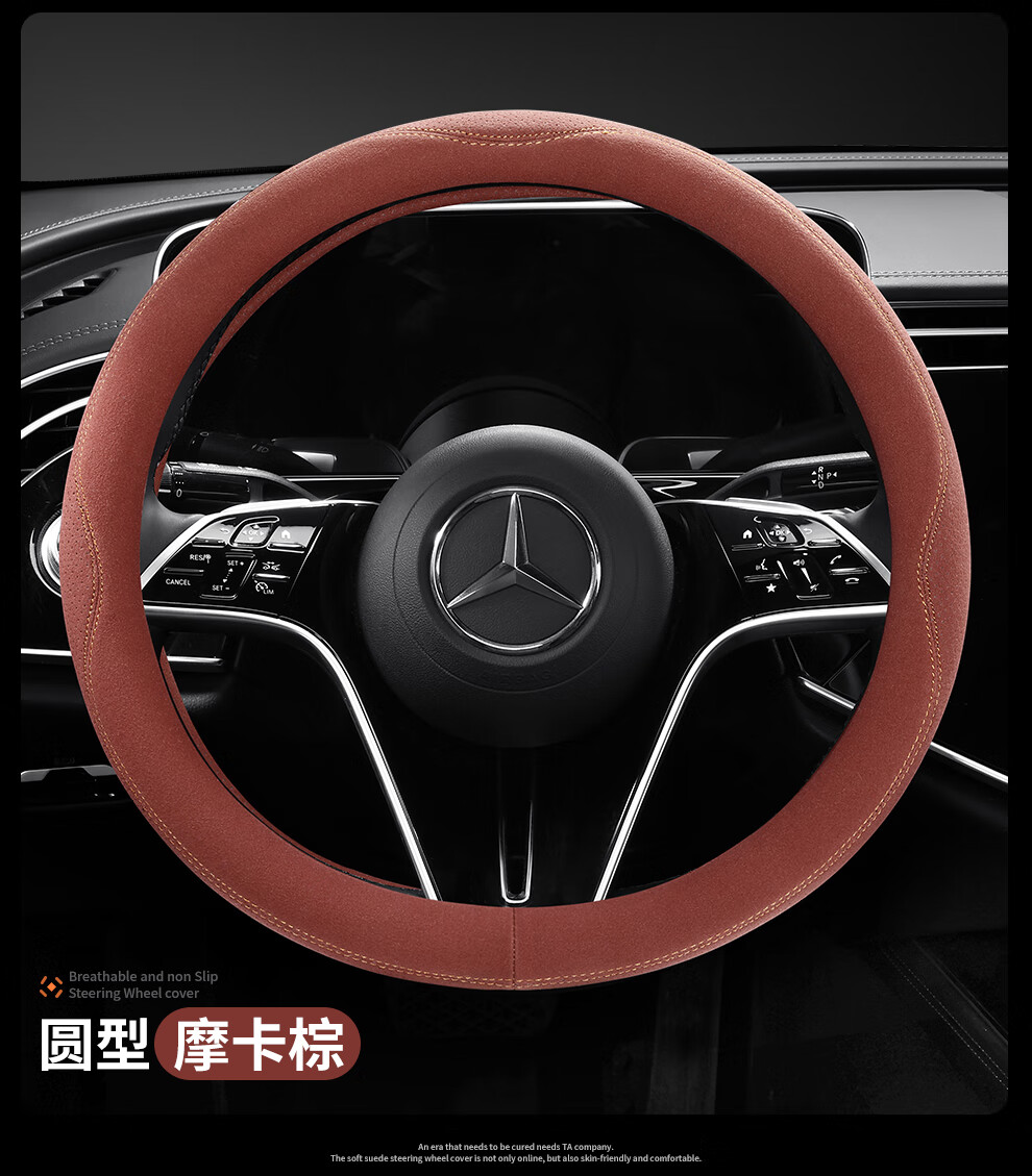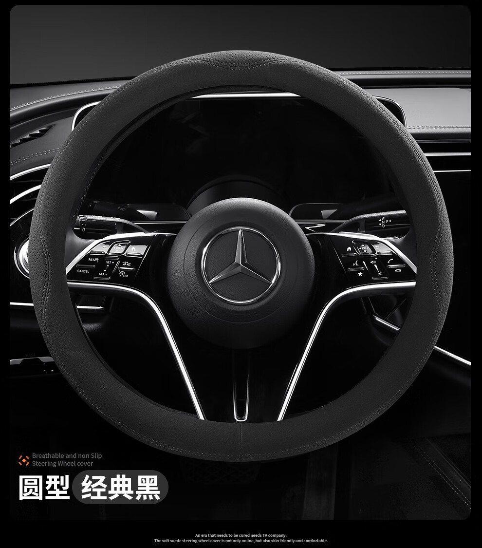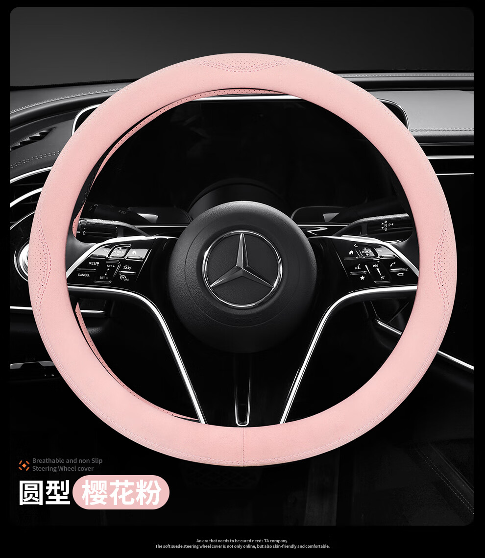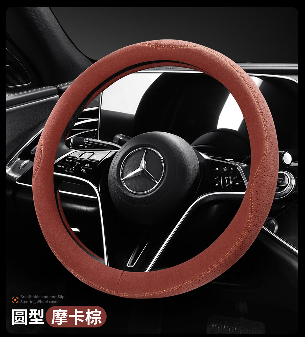 Car steering wheel cover, all-season suede handlebar cover, new ultra-thin anti-slip sweat-absorbent breathable protective cover, meteorite gray round