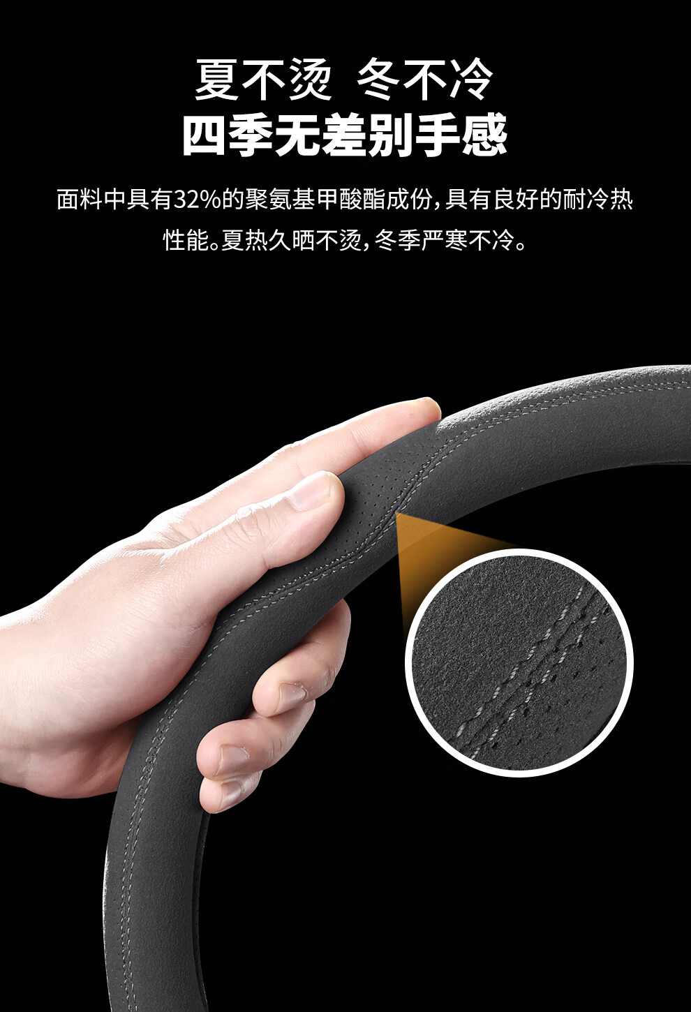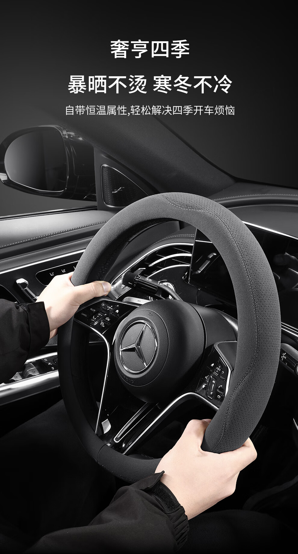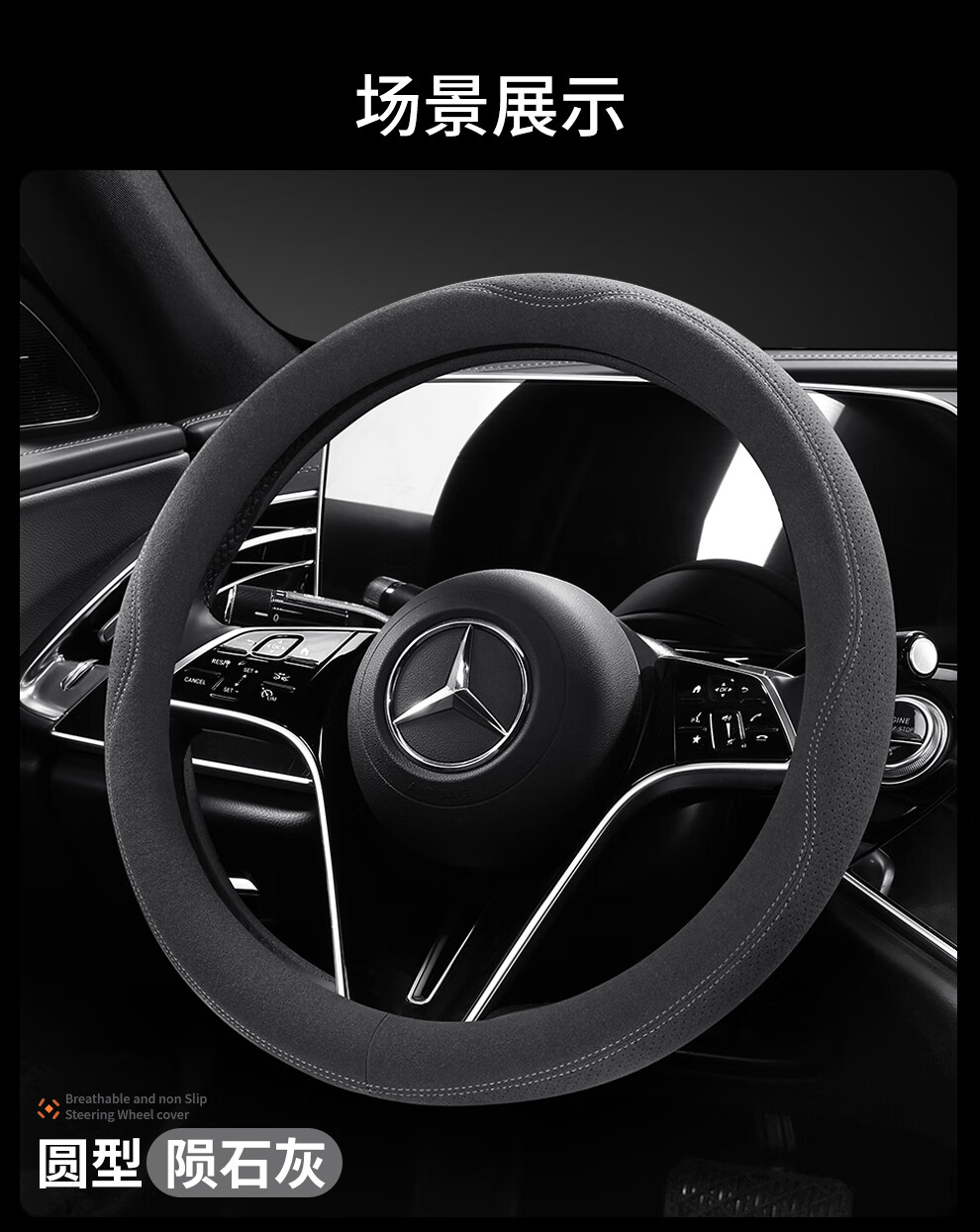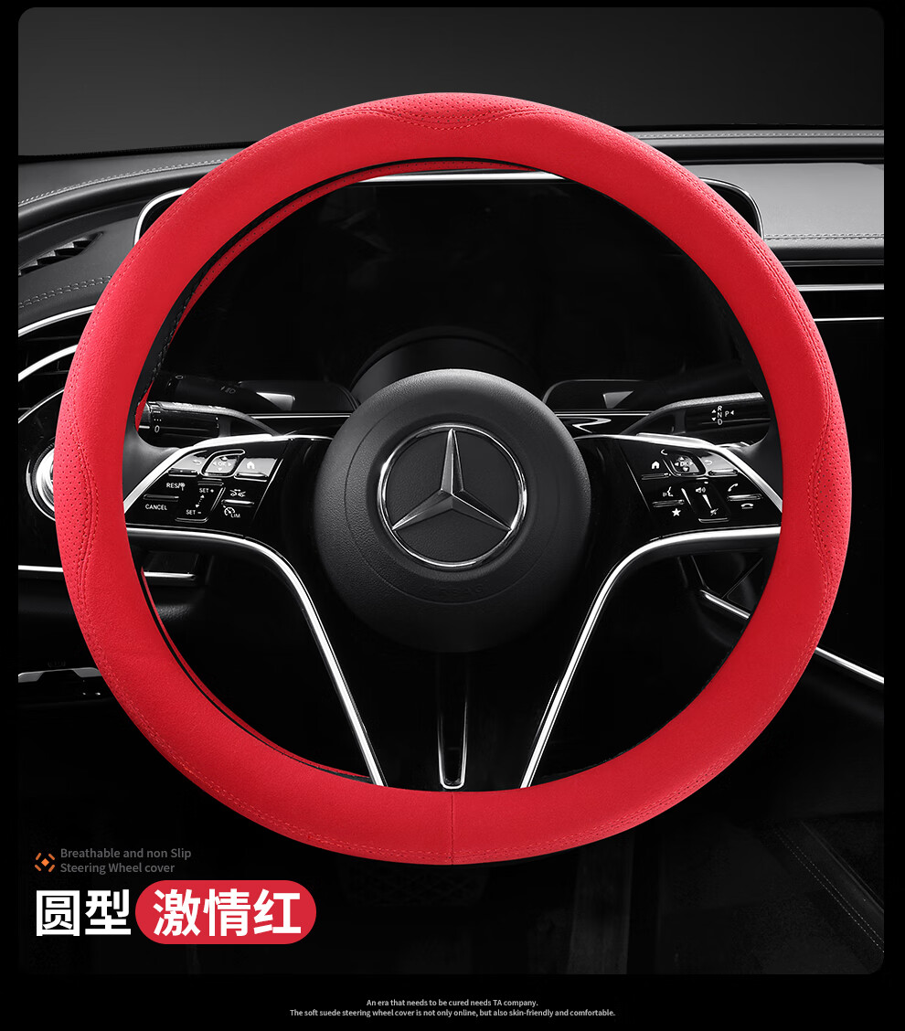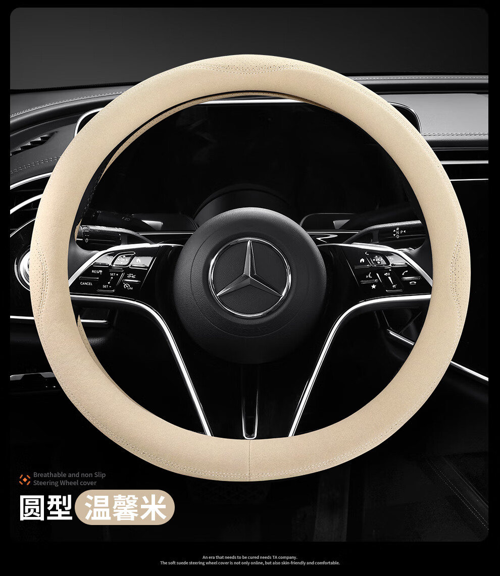 Car steering wheel cover, all-season suede handlebar cover, new ultra-thin anti-slip sweat-absorbent breathable protective cover, meteorite gray round