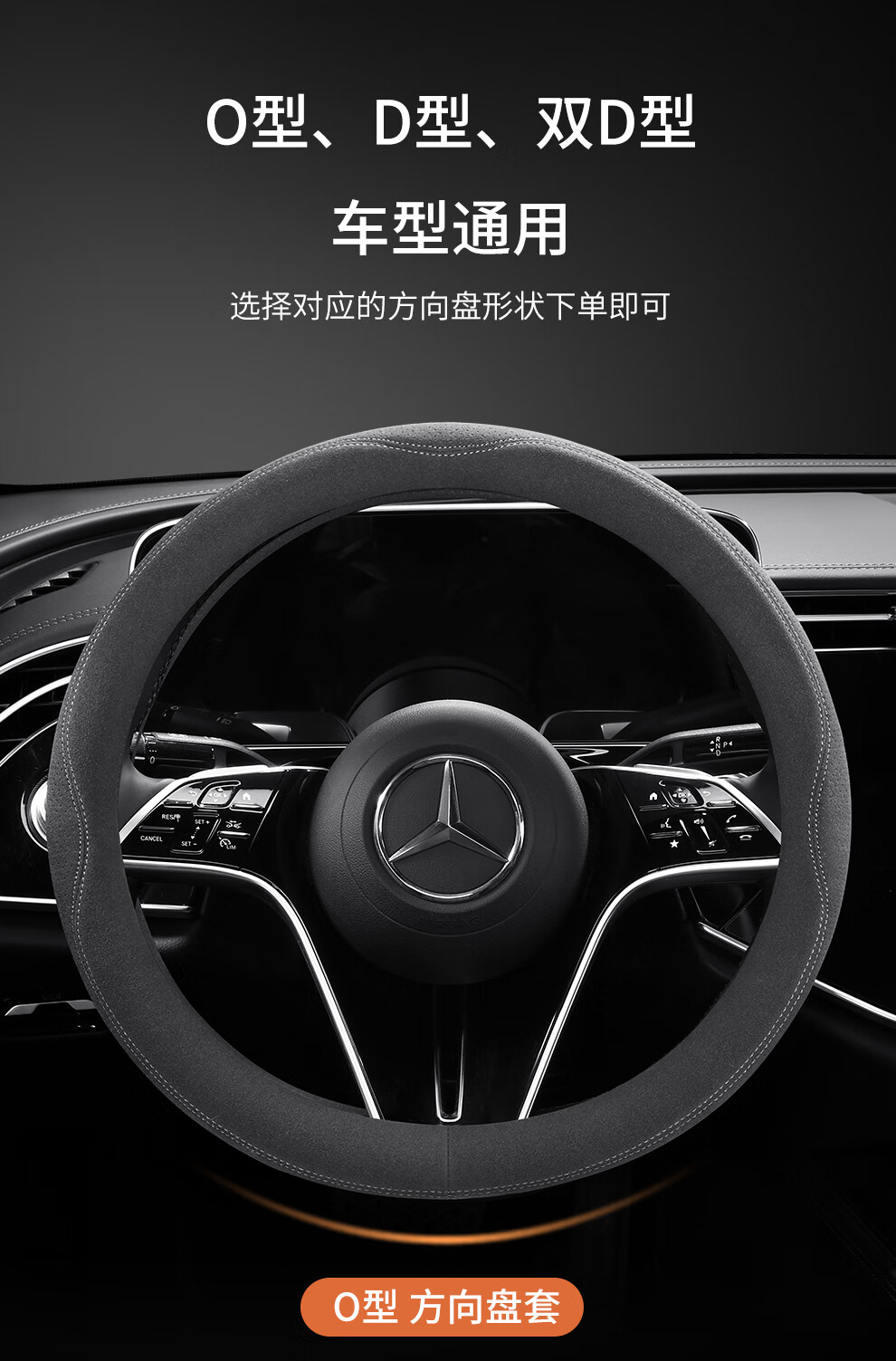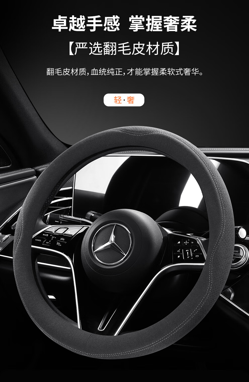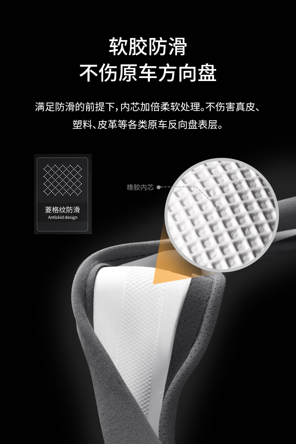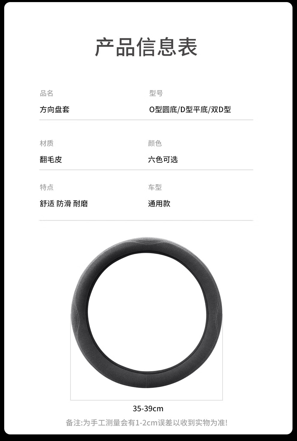 Car steering wheel cover, all-season suede handlebar cover, new ultra-thin anti-slip sweat-absorbent breathable protective cover, meteorite gray round