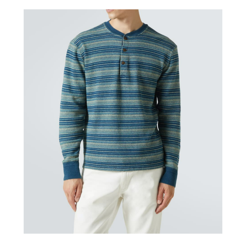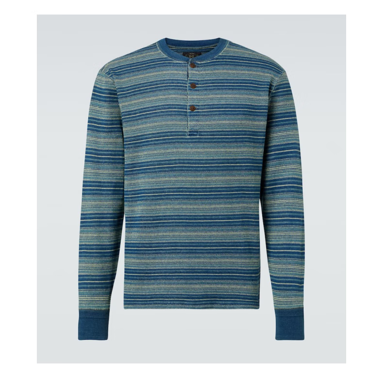 RRL New Arrivals for Autumn and Winter Men's Cotton Jacquard Henley P01044205 Blue M CN 180/96A