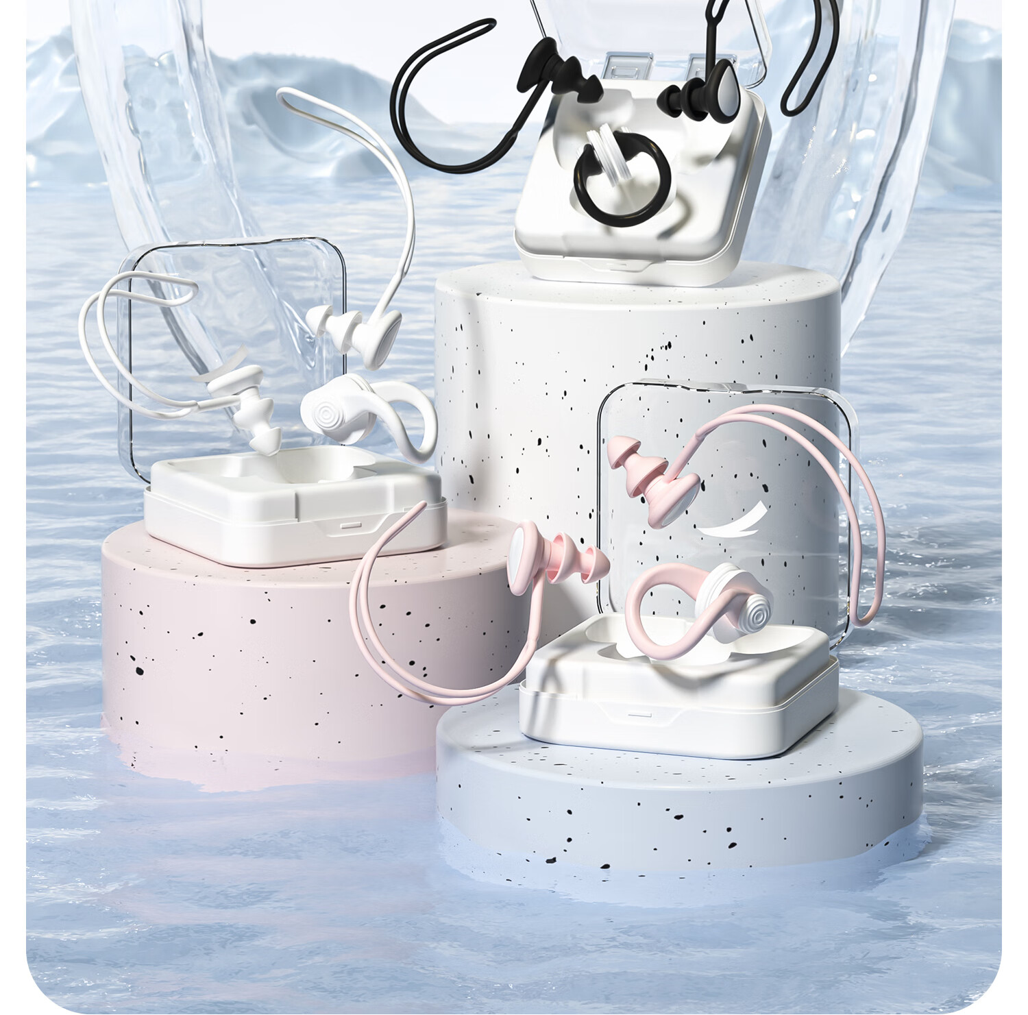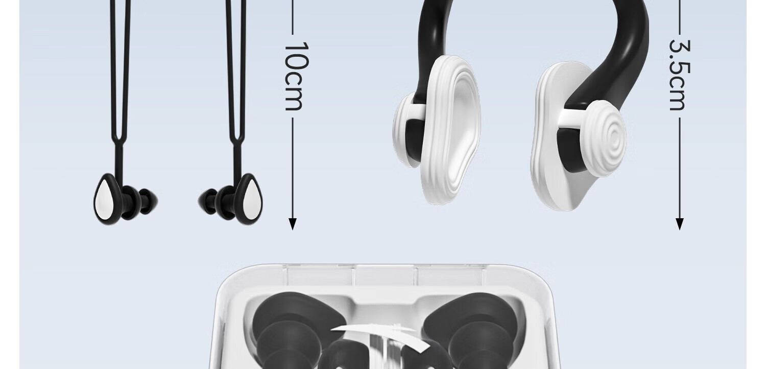 ANTA Swimming Earplugs Waterproof Professional Silicone Swimming Nose Clip Anti-water Ingress No Soundproof Anti-Choking Adult and Children Diving Set Nose Clip + Earplugs White