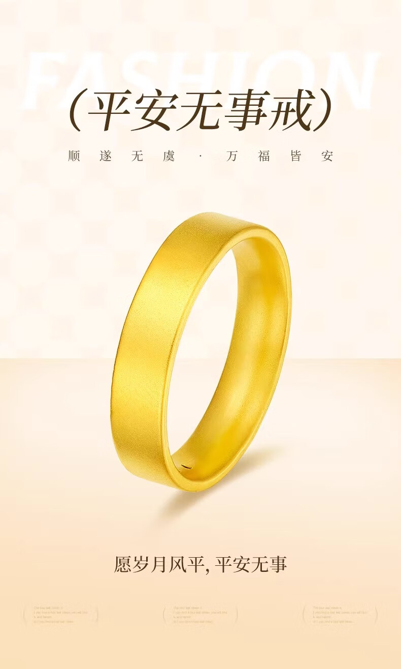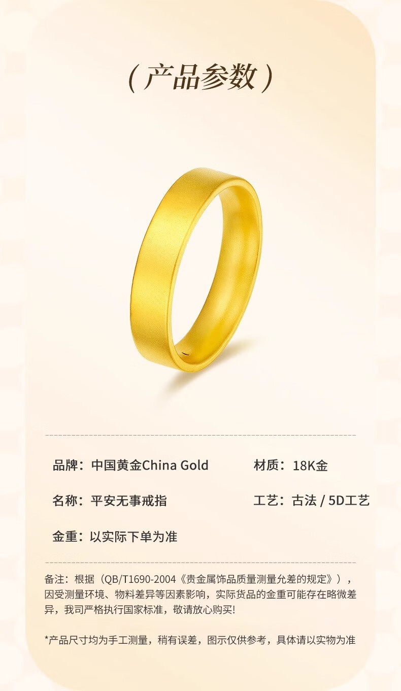CHINA GOLD 18K gold safe and sound ring plain ring ring jewelry Valentine's Day practical birthday gift for girlfriend and wife 18K gold safe and sound ring No. 12 about 0.3g