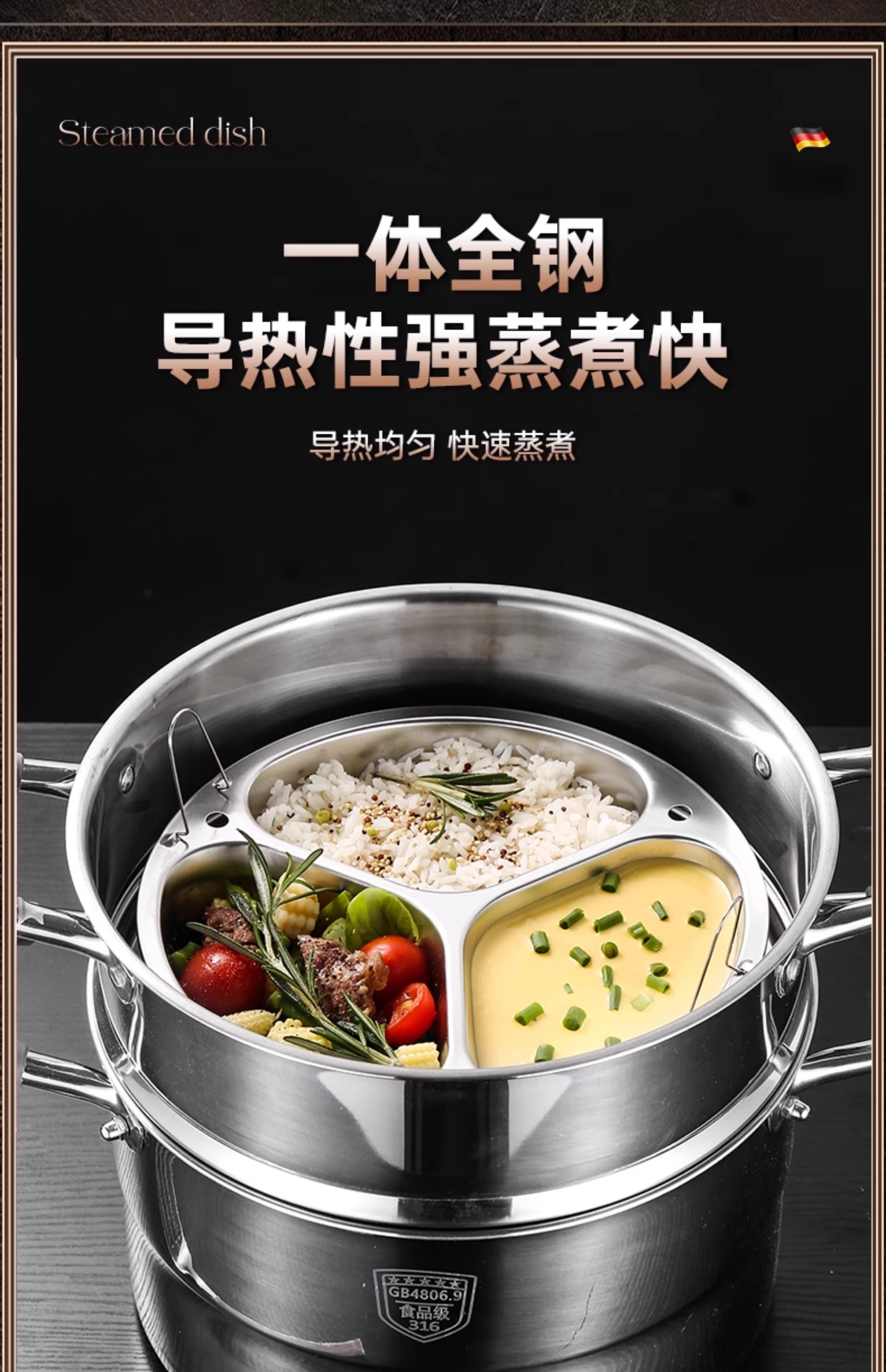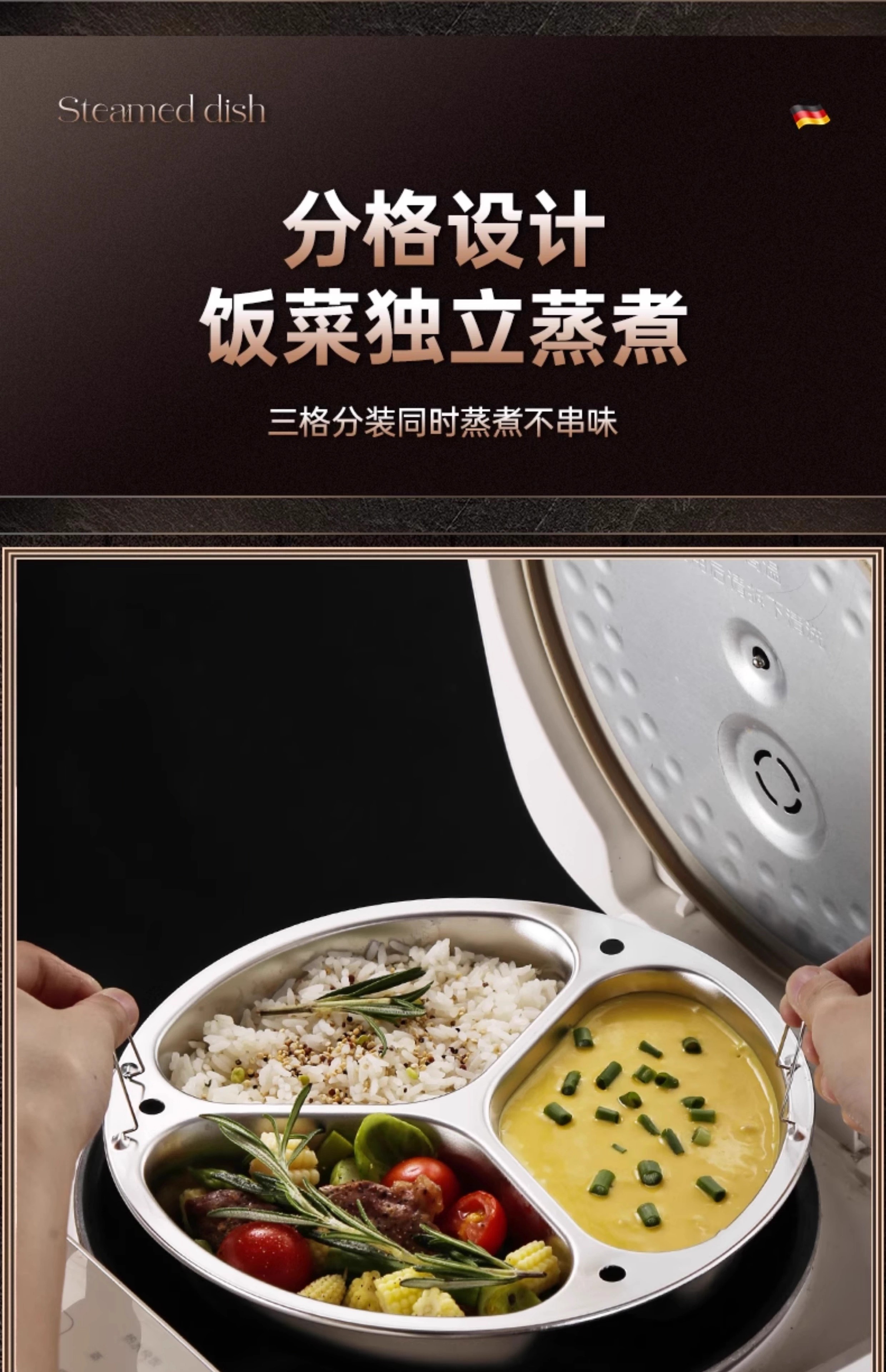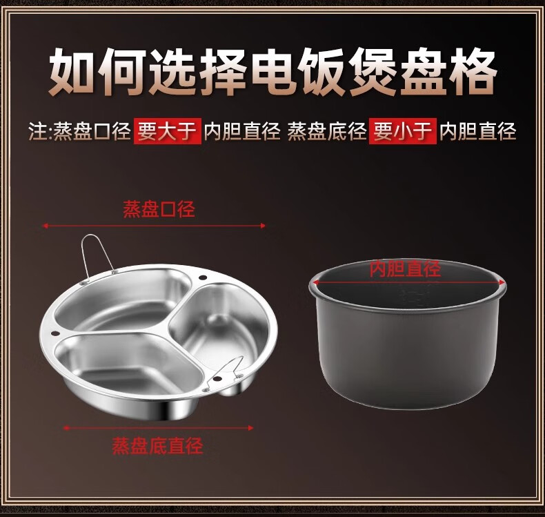 Yiyipai three-compartment steaming plate 304 stainless steel household rice cooker pot multi-compartment steamer separated water baby food steaming rack 304 enlarged and deepened 3 compartments medium 21.5cm