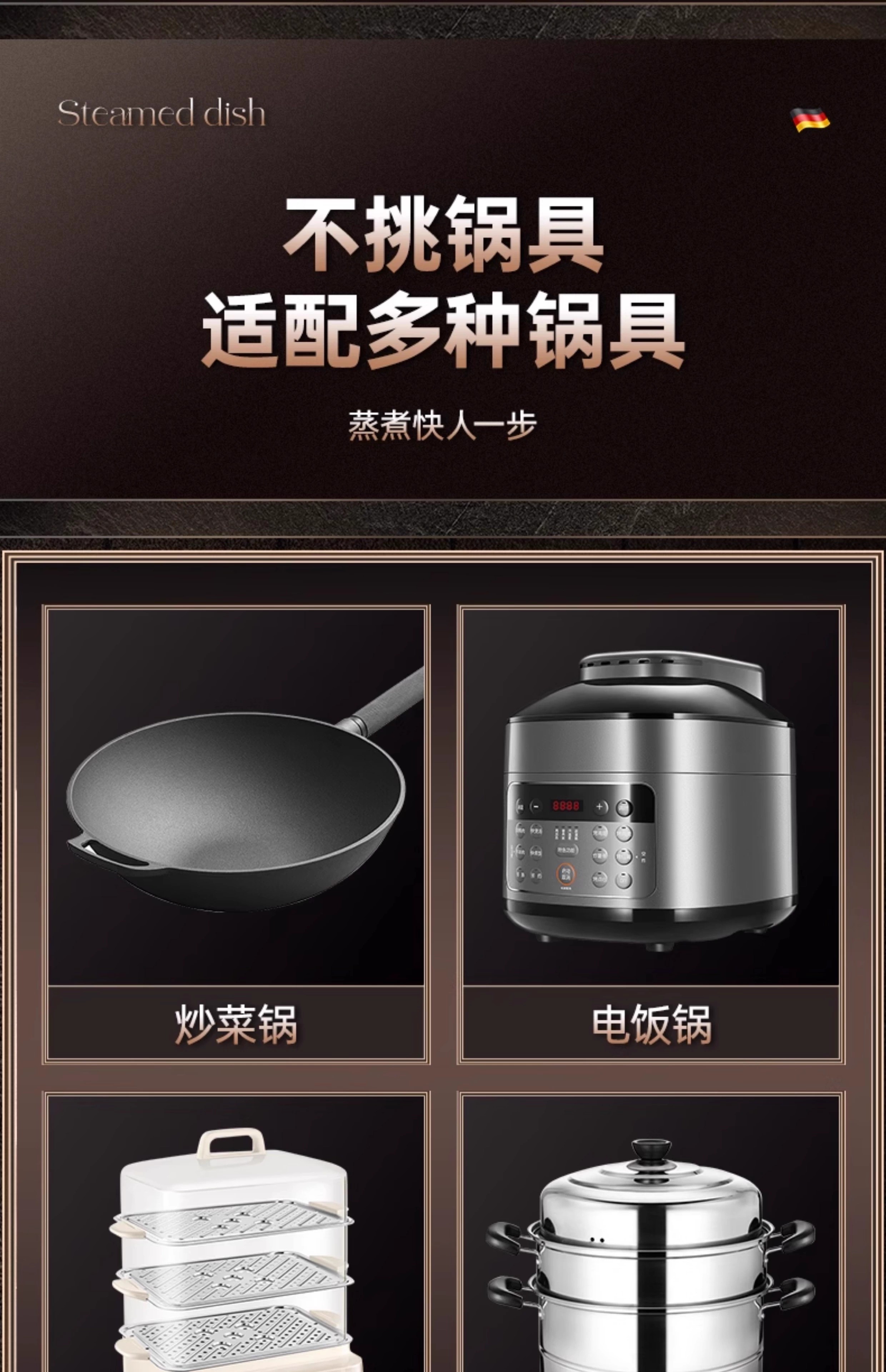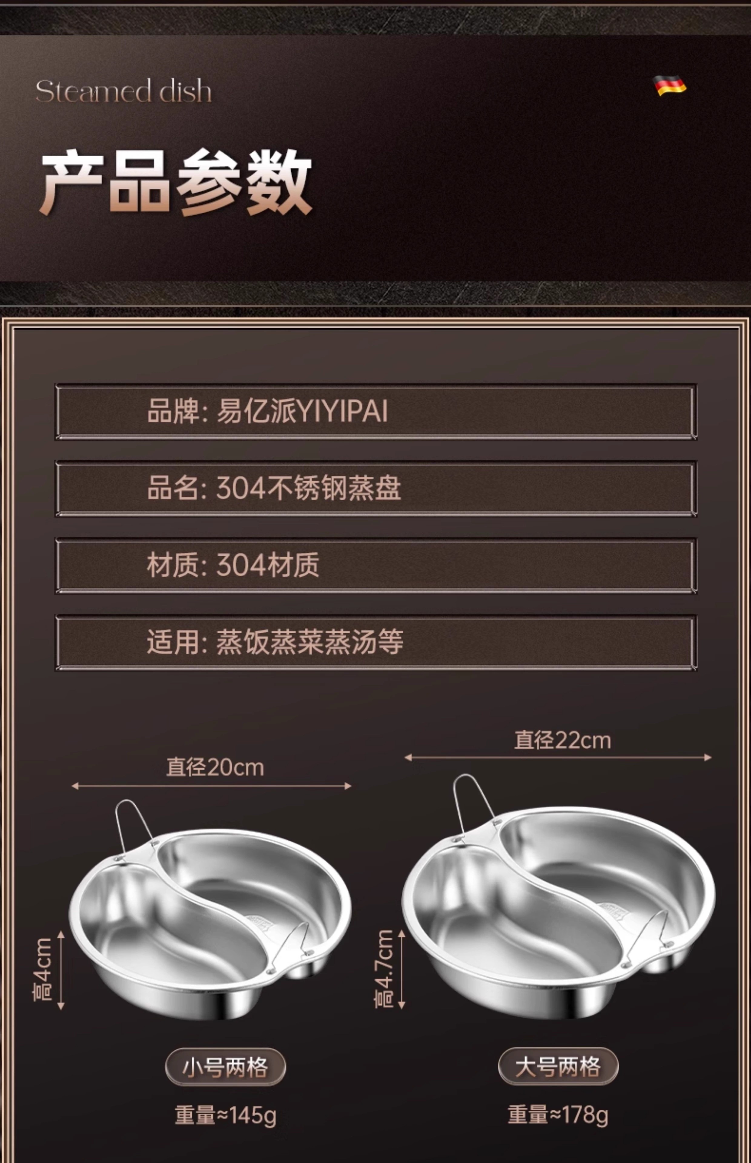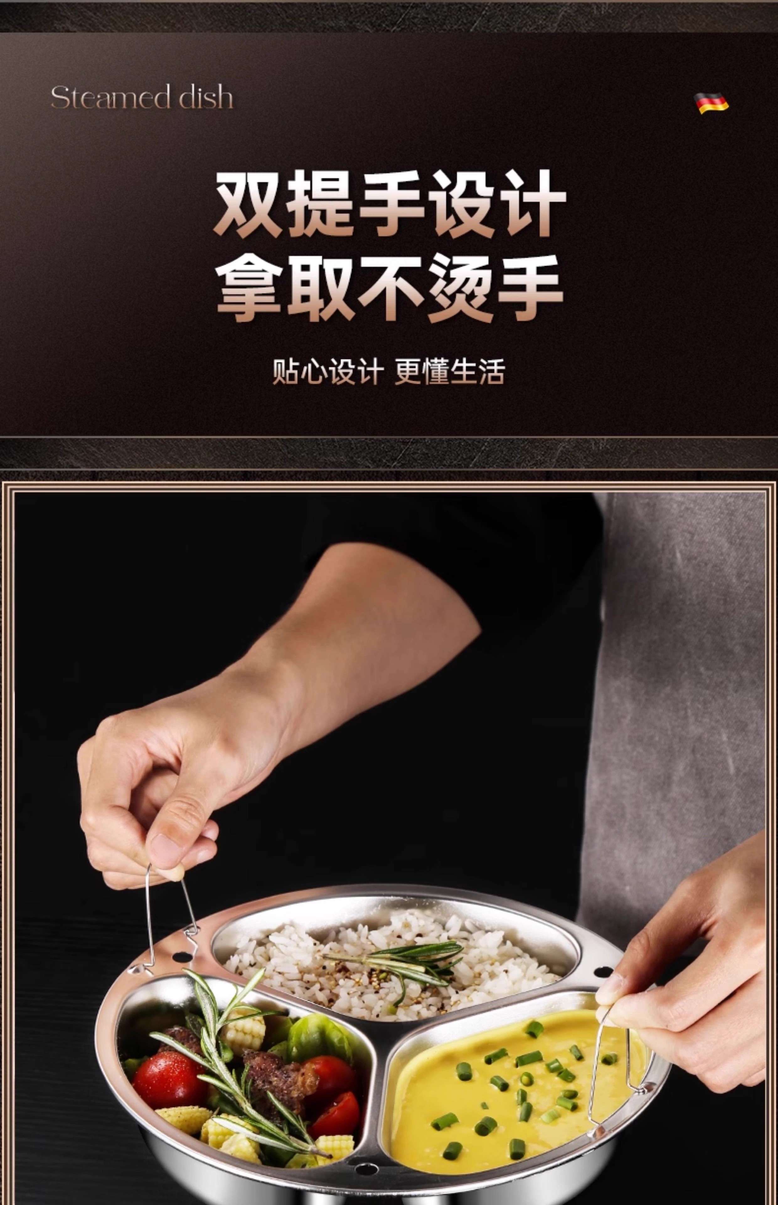 Yiyipai three-compartment steaming plate 304 stainless steel household rice cooker pot multi-compartment steamer separated water baby food steaming rack 304 enlarged and deepened 3 compartments medium 21.5cm