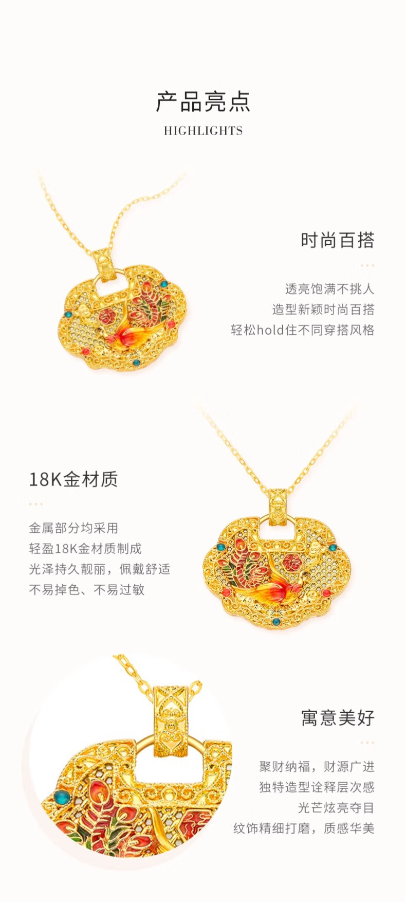 CHINA GOLD 18K Gold Peace Lock Pendant Women's Niche Retro Clavicle Chain Valentine's Day Practical Birthday Gift for Girlfriend and Wife 18K Gold Peace Lock Pendant Free Pure Silver Chain Approximately 2g Gram weight is the total weight of the product K gold weight + topaz/others