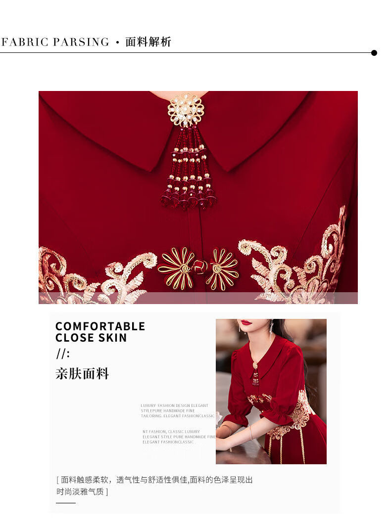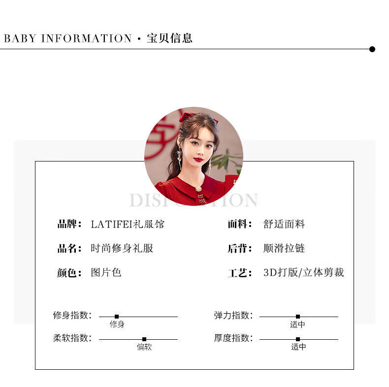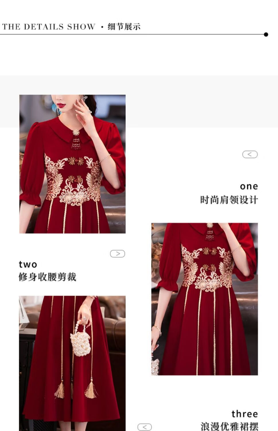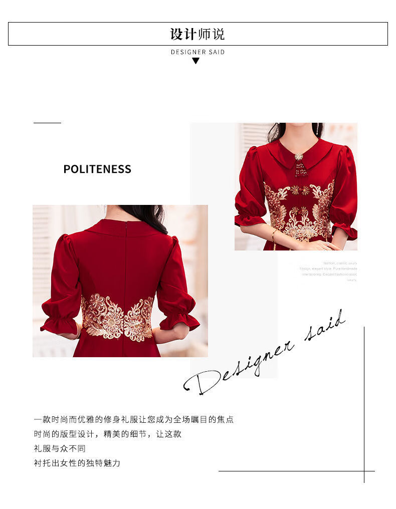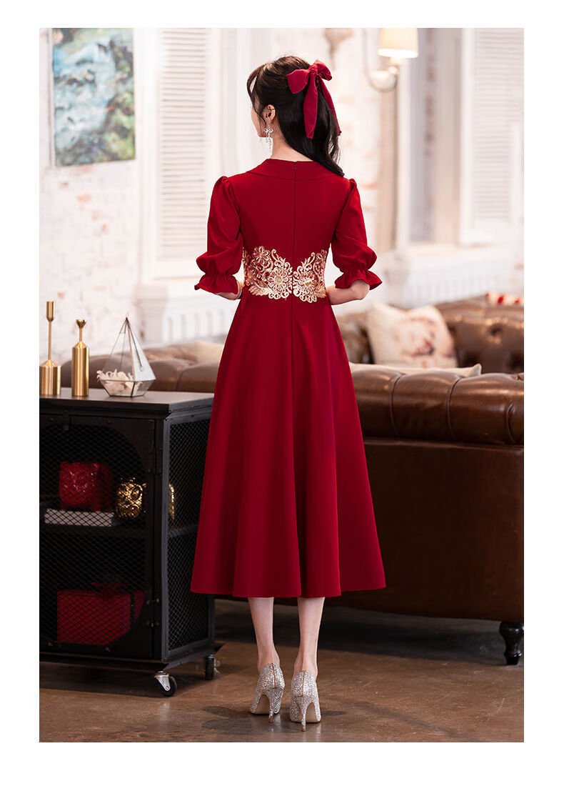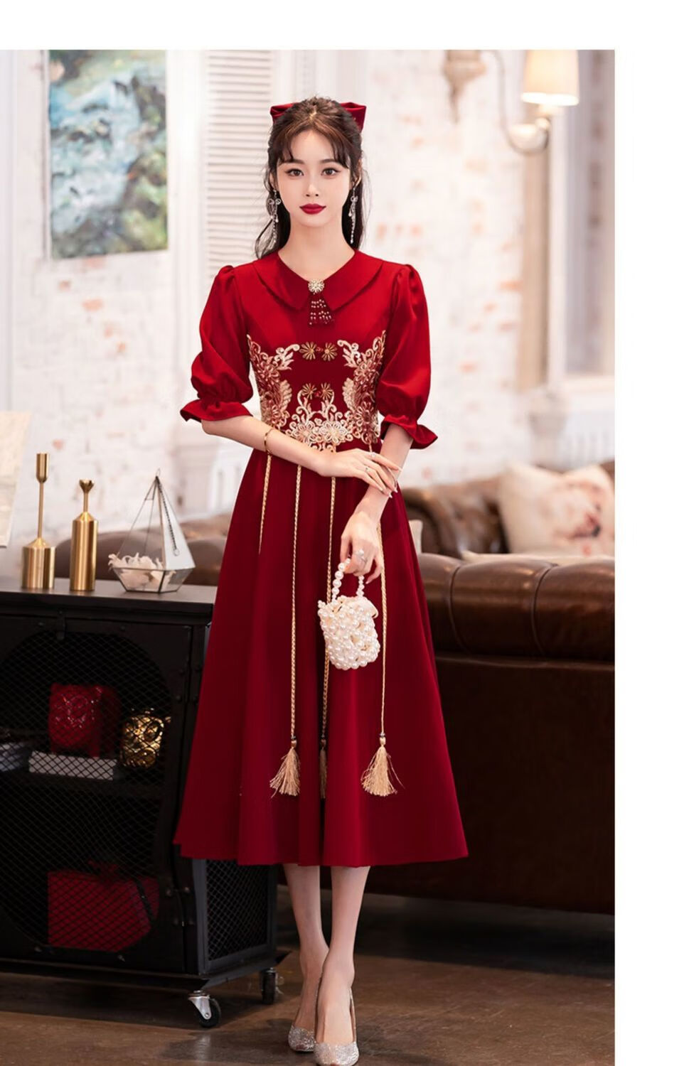 Tea girl's toasting dress bride's burgundy wedding engagement dress dress can be worn back to the house casual wear lapel spring and summer red M