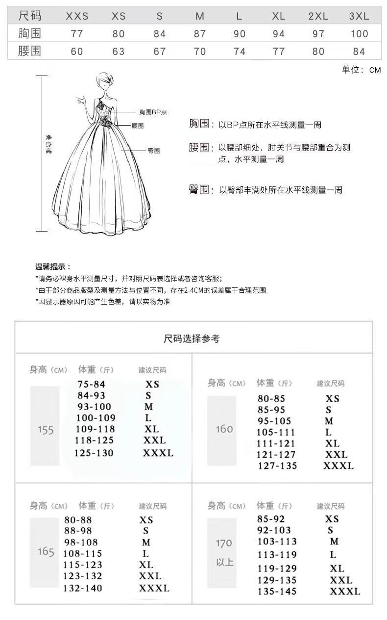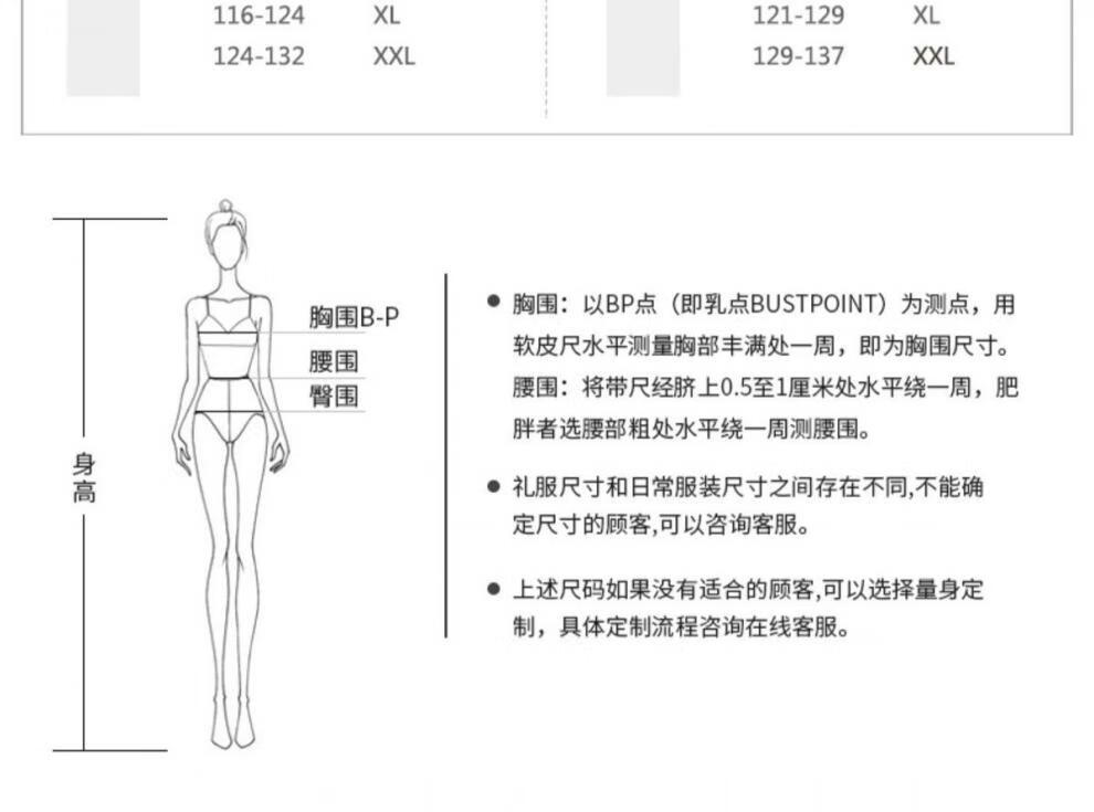 China (cm) 160-165/84-86 165-170 / 88-90 167-172 / 92-96 168-173 / 98-102 170-176 / 106-110