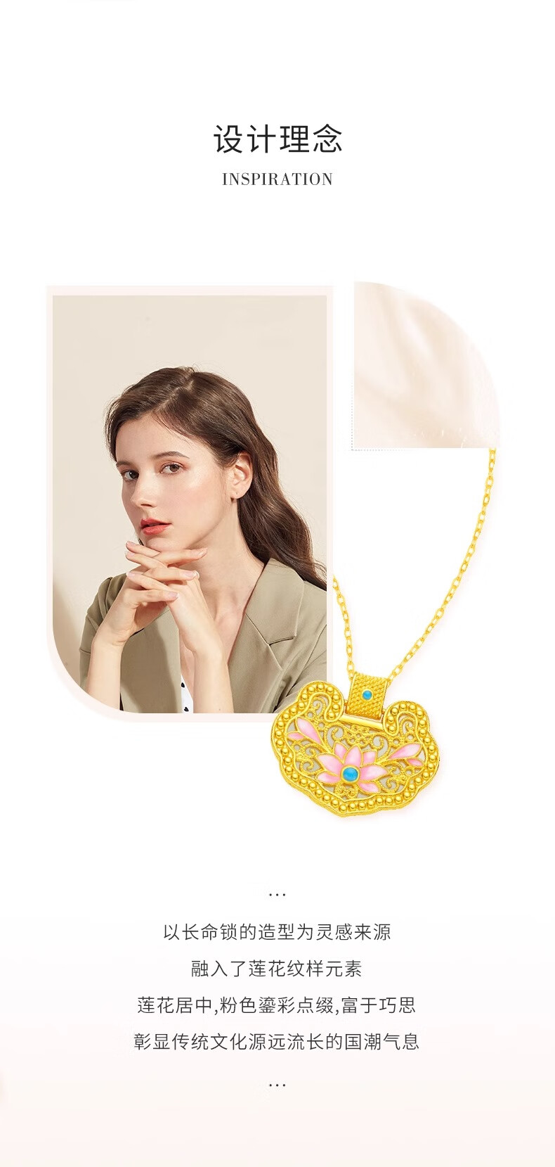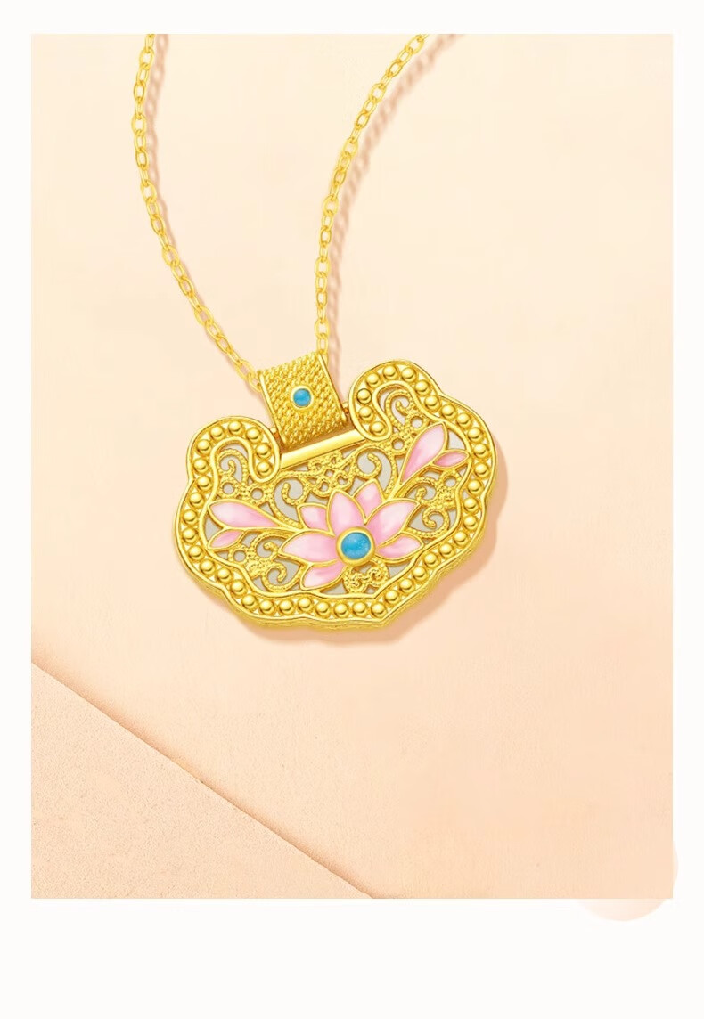 CHINA GOLD 18K Gold Lotus Longevity Lock Pendant Women's Exquisite K Gold Necklace Practical Valentine's Day Birthday Gift for Girlfriend 18K Gold Lotus Longevity Lock Pendant Free Pure Silver Chain Approximately 1.7g Gram weight is the total weight of the product K gold weight + topaz/others