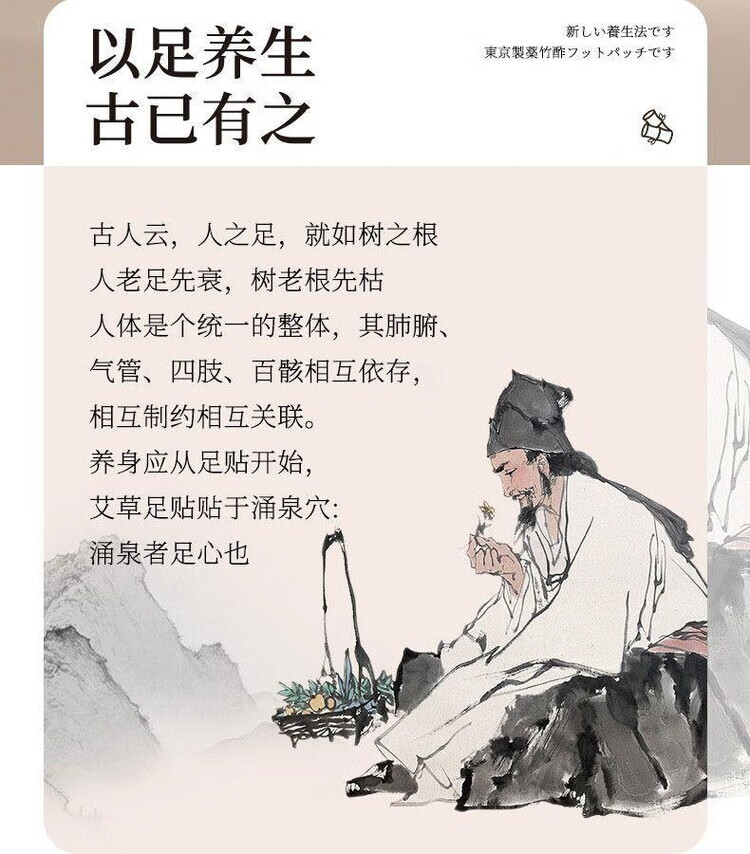 Qinfangtang Tokyo Pharmaceutical Bamboo Vinegar Foot Patch Healthy Patch Mugwort Herbal Foot Patch Sleep Moisture Herbal Removing Dampness and Repelling Cold 4 bags 40 tablets