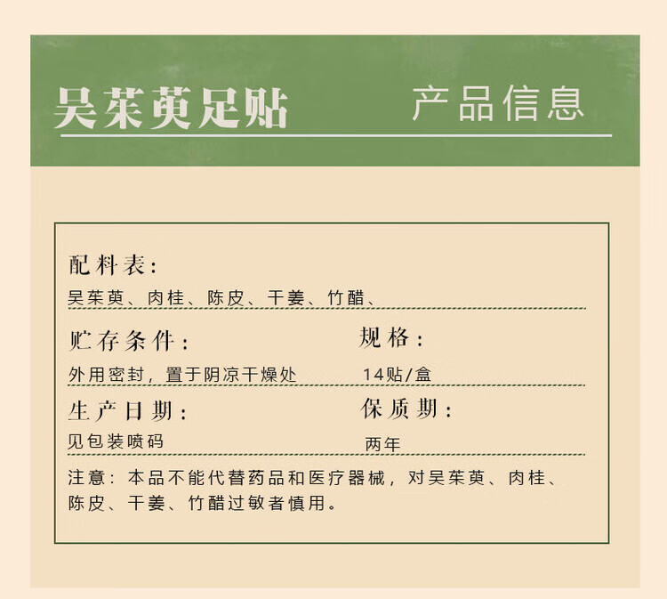 Evodia and Cinnamon Foot Patch Herbal Evodia and Cinnamon Dried Ginger and Tangerine Peel Breathable Internal Adjustment Foot Patch Soothing Care Evodia and Cinnamon Foot Patch 1 small box 7 packs of 14 patches