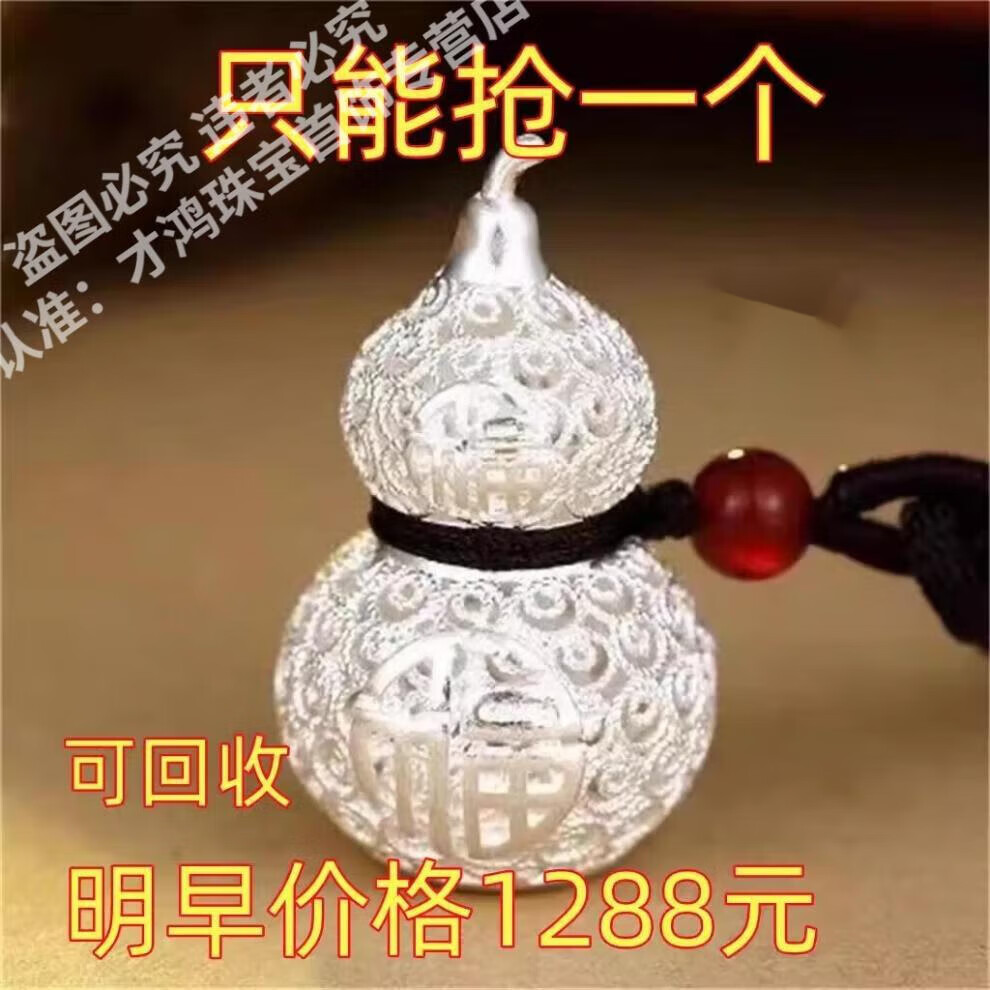 KZD999 sterling silver men's and women's pendant with Ruyifu character hollow out full silver gourd pendant gift 7.88g sold out and 10 pieces left