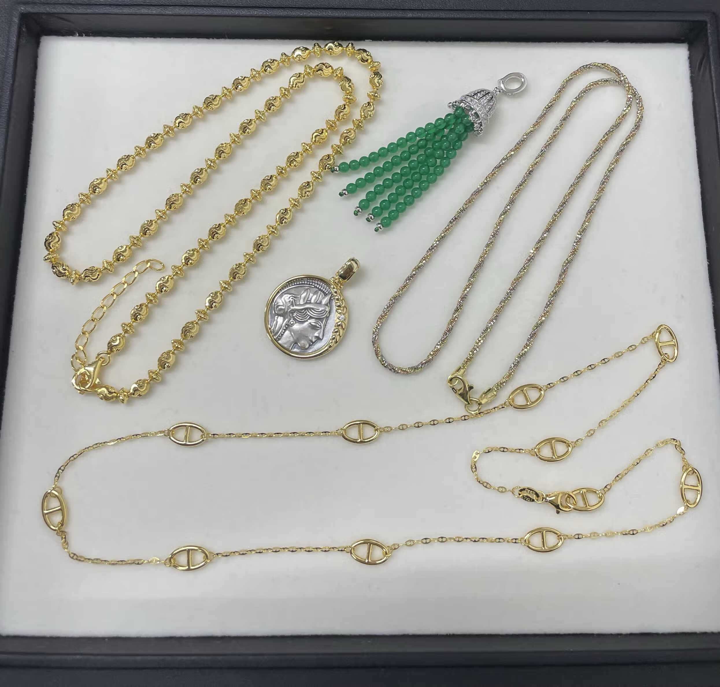 Libiao S925 silver Seiko version k gold craft pendant necklace three-color gold twist chain gold pineapple bead necklace collection gold pig nose chain 50cm long