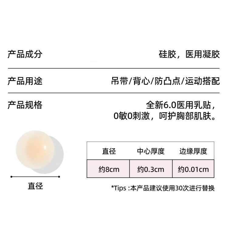 Jingyouyu Japanese breast patch for women in summer, anti-bump, breathable breast patch, silicone invisible thin, anti-exposed breast cover, suspender strap, pajama breast, 8CM*2 pairs, breathable, fair skin