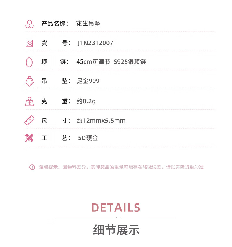 Li Biao is rich and rich, peanut gold pendant, pure gold 999 pendant, transfer bead necklace, gift for girlfriend, peanut pendant, about 0.2g, free S925 silver chain