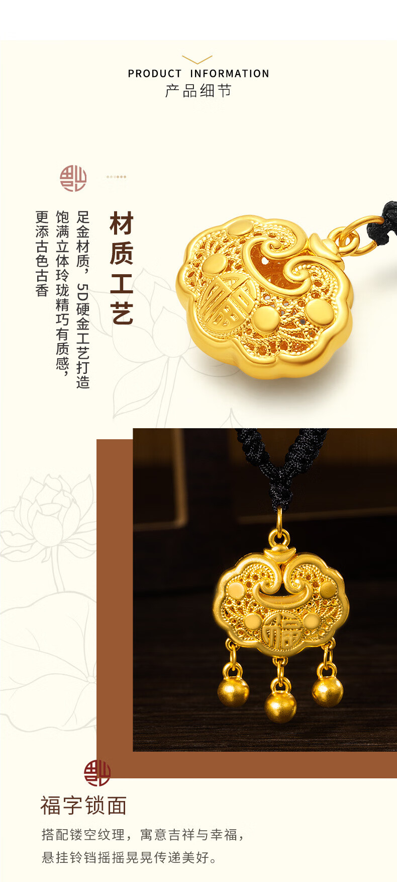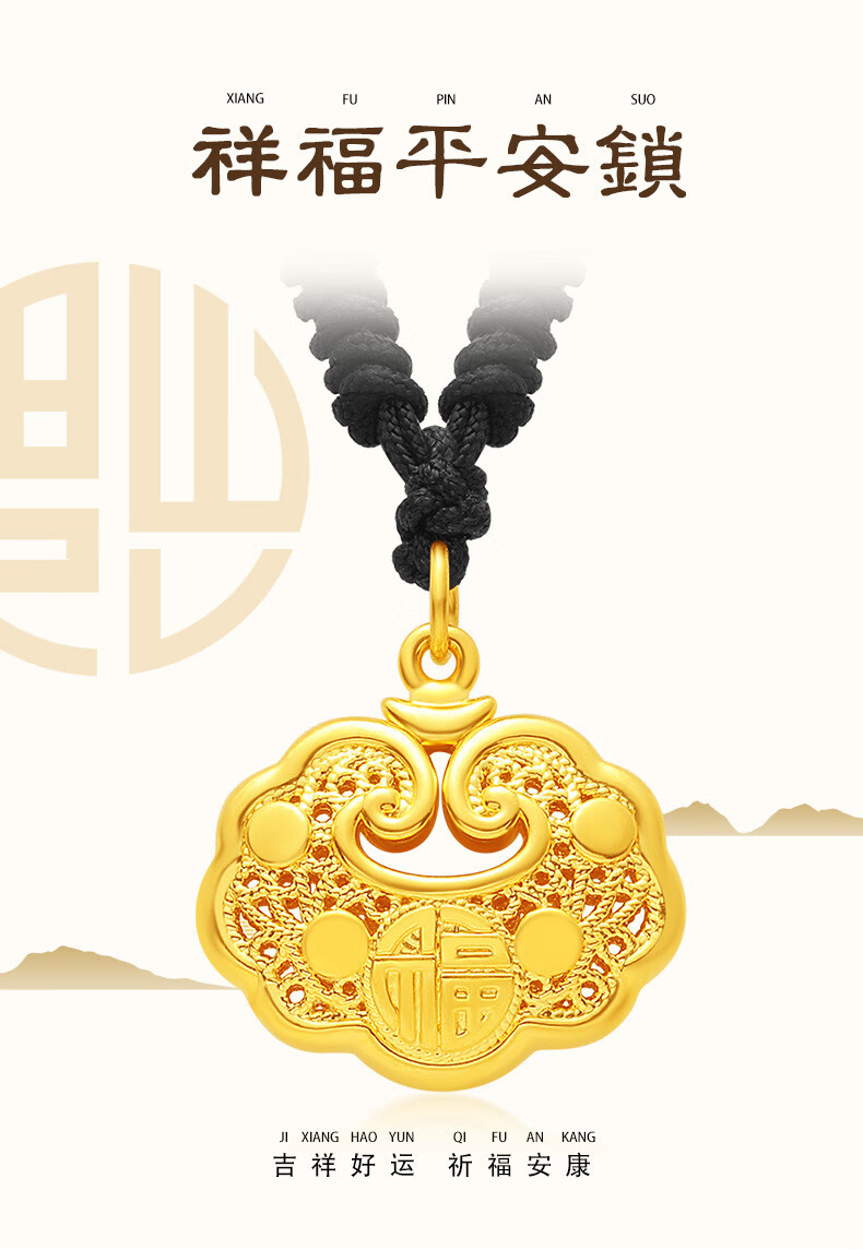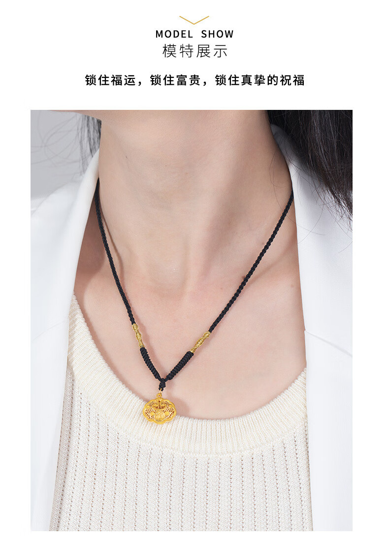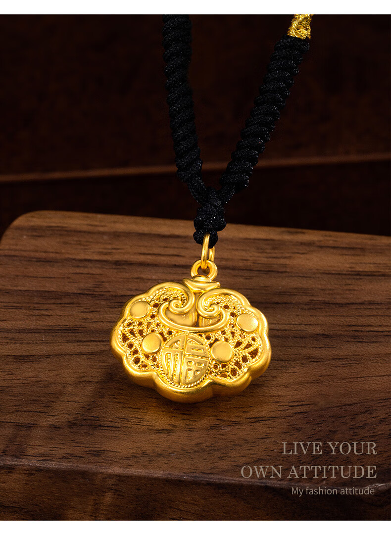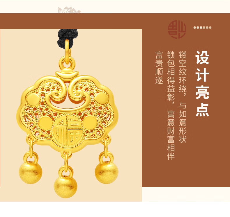 Libiao Jewelry 5D Hard Gold Ruyi Fu Hollow Lock Bag Pendant Gold Longevity Lock Baby Full Gold Safe Lock for Women with Bell Rope Style Random (Red/Black 1.5g