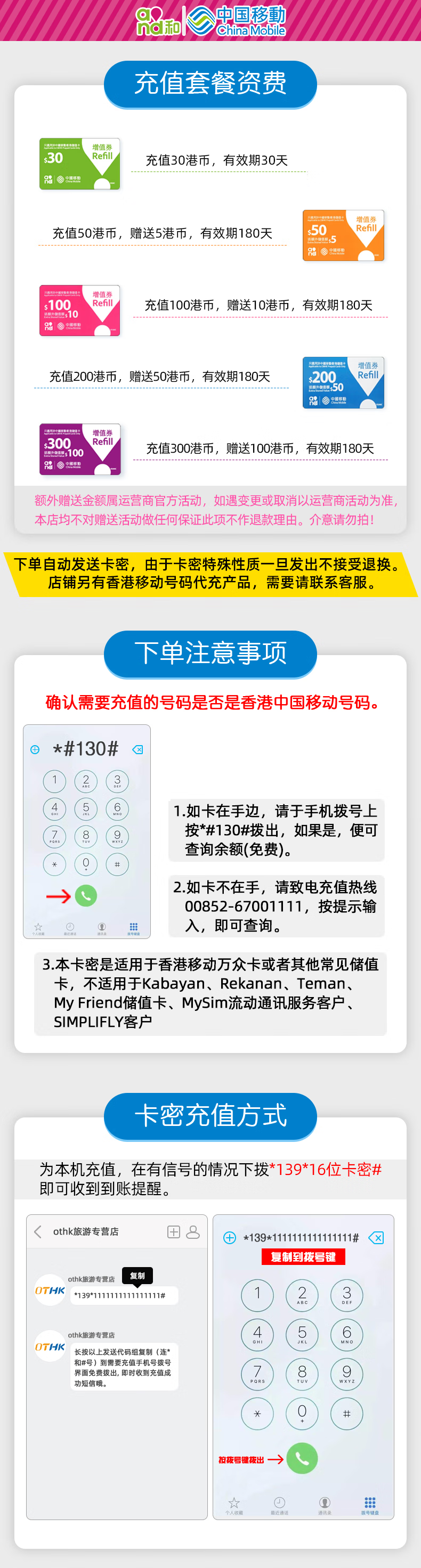 Hong Kong Mobile Phone Card Code Hong Kong Number Recharge Yaliao Card Recharge 50/100/200/300 HKD Value Added China Hong Kong Mobile Card Code 50 HKD
