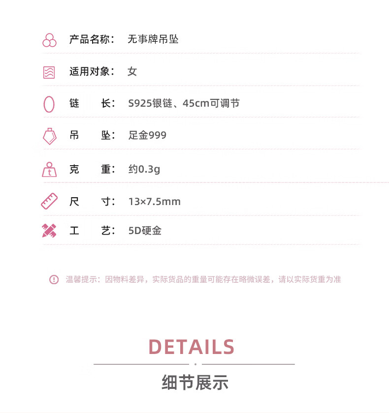 Libiao Wushi brand pendant pure gold 999 gold pendant pure gold necklace 5D hard gold gift for girlfriend Wushi brand pendant about 0.3g - free silver necklace (gold 0.3g